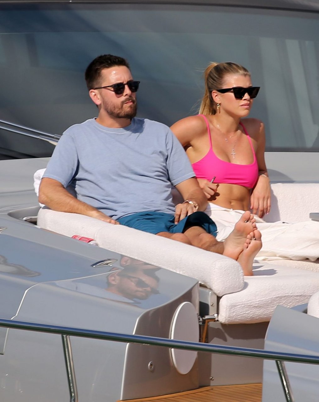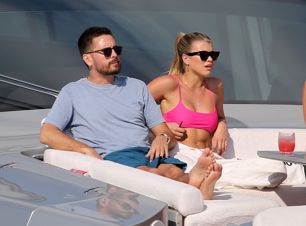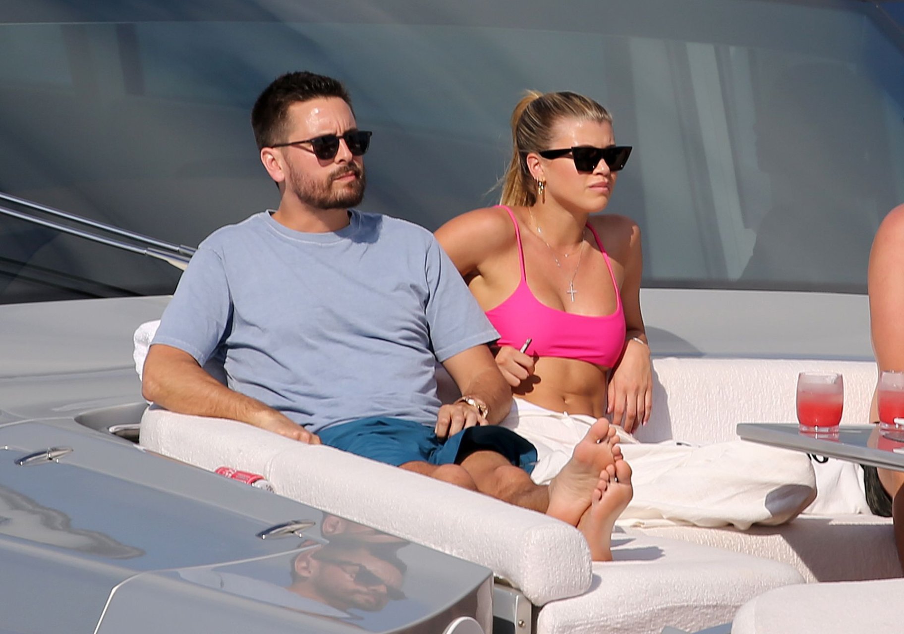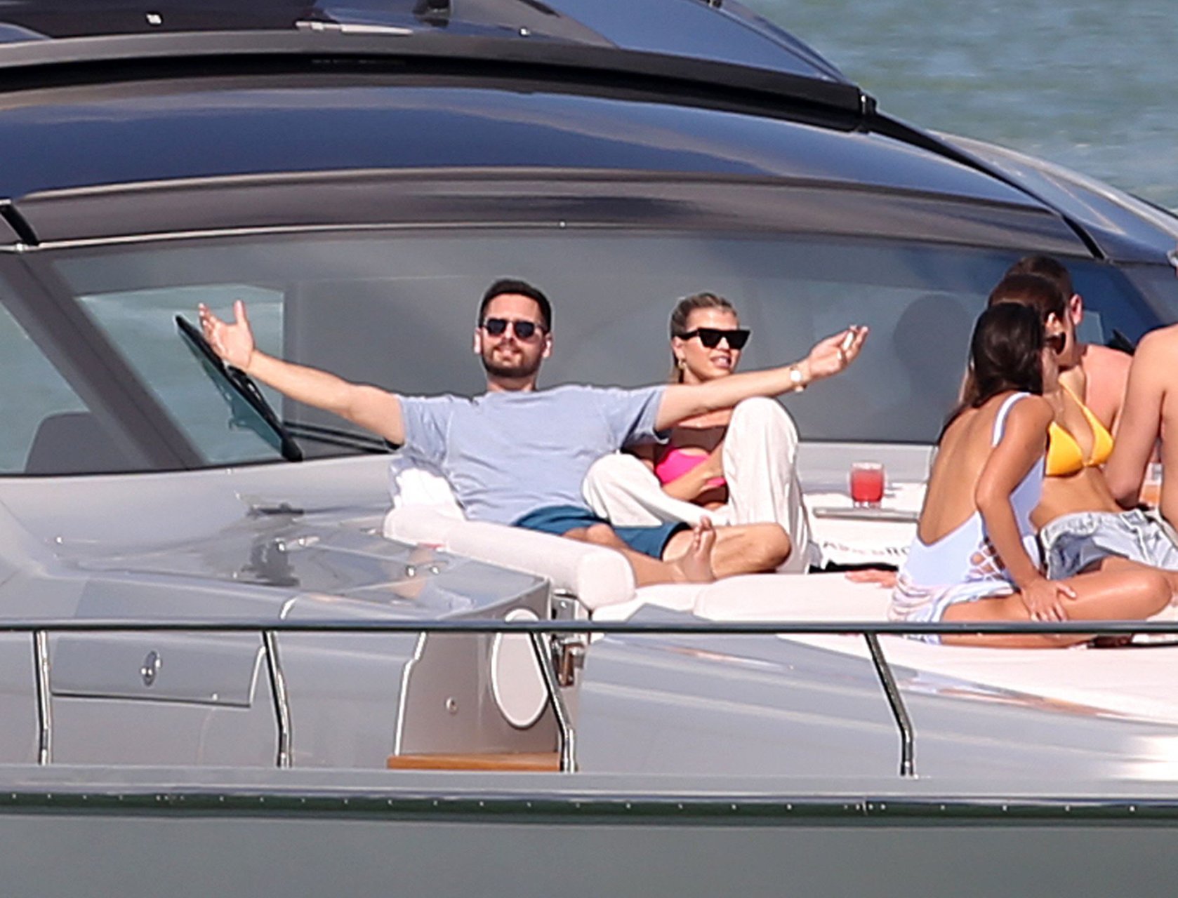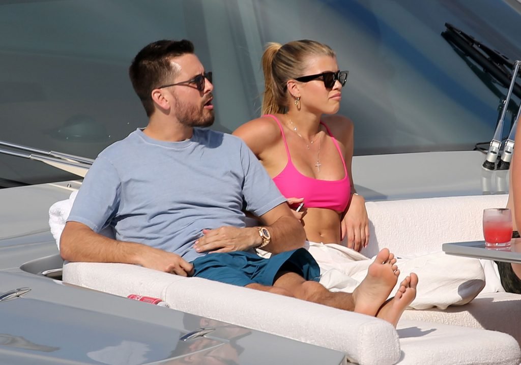 Model Sofia Richie lleva un top de bikini rosa fuerte mientras se relaja en un yate con su novio Scott Disick en Miami, 17/02/2019.