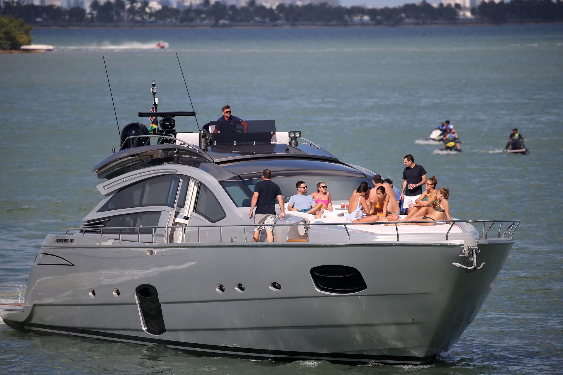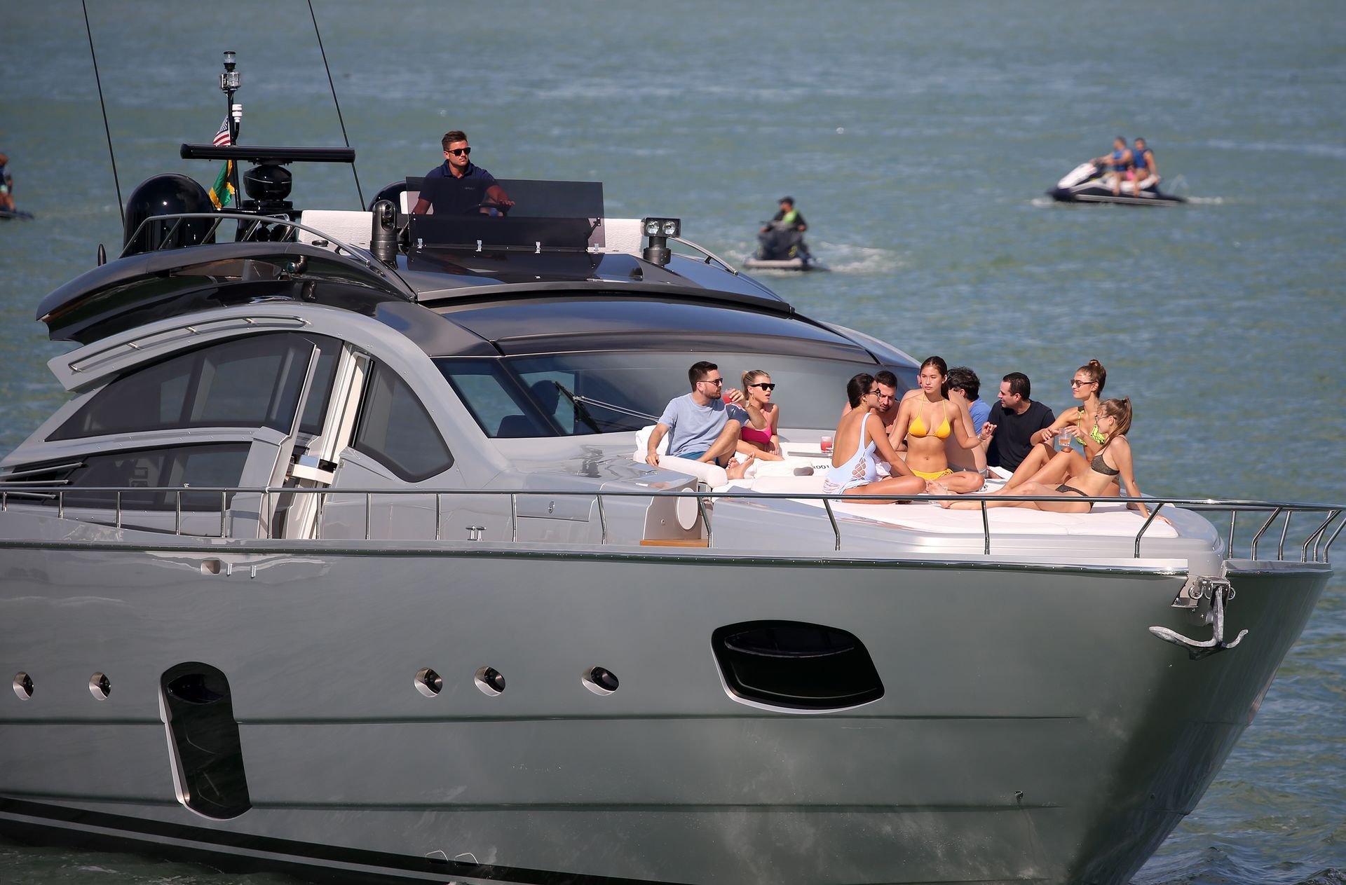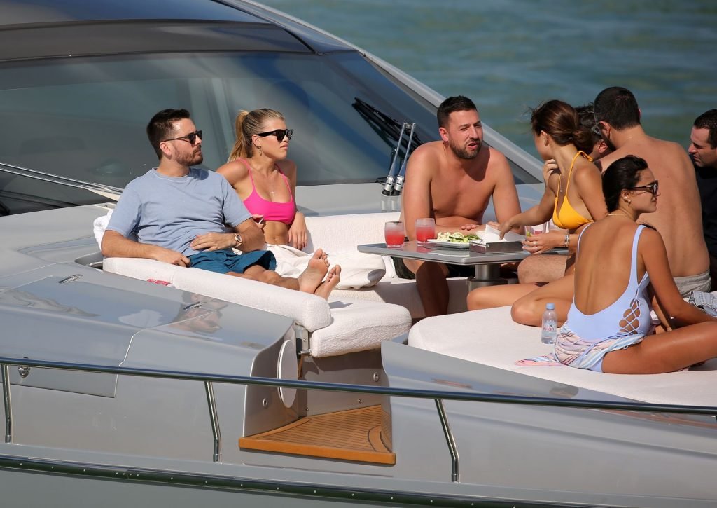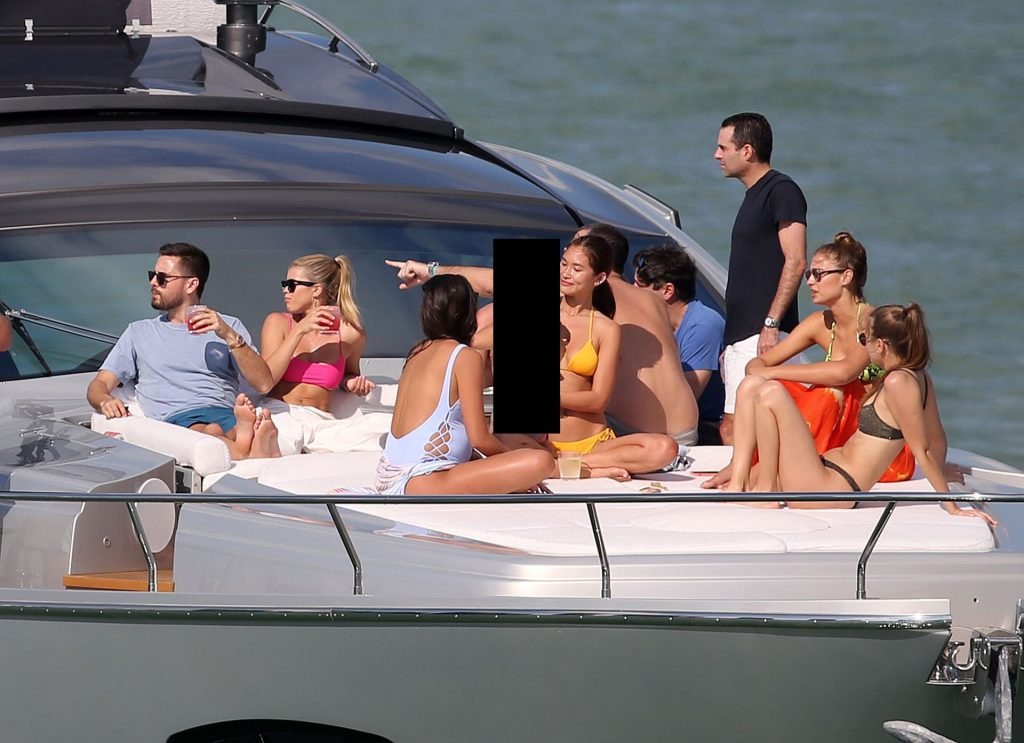 La modelo rara vez se veía sin su cigarrillo electrónico Juul y su novio fue visto más tarde fumando el suyo también. La pareja pasó la mayor parte del tiempo en el yate juntos mientras algunas modelos en bikini descansaban por separado.