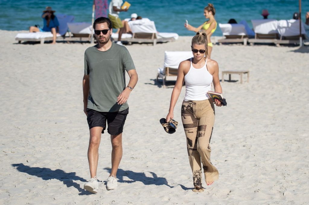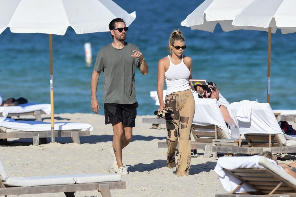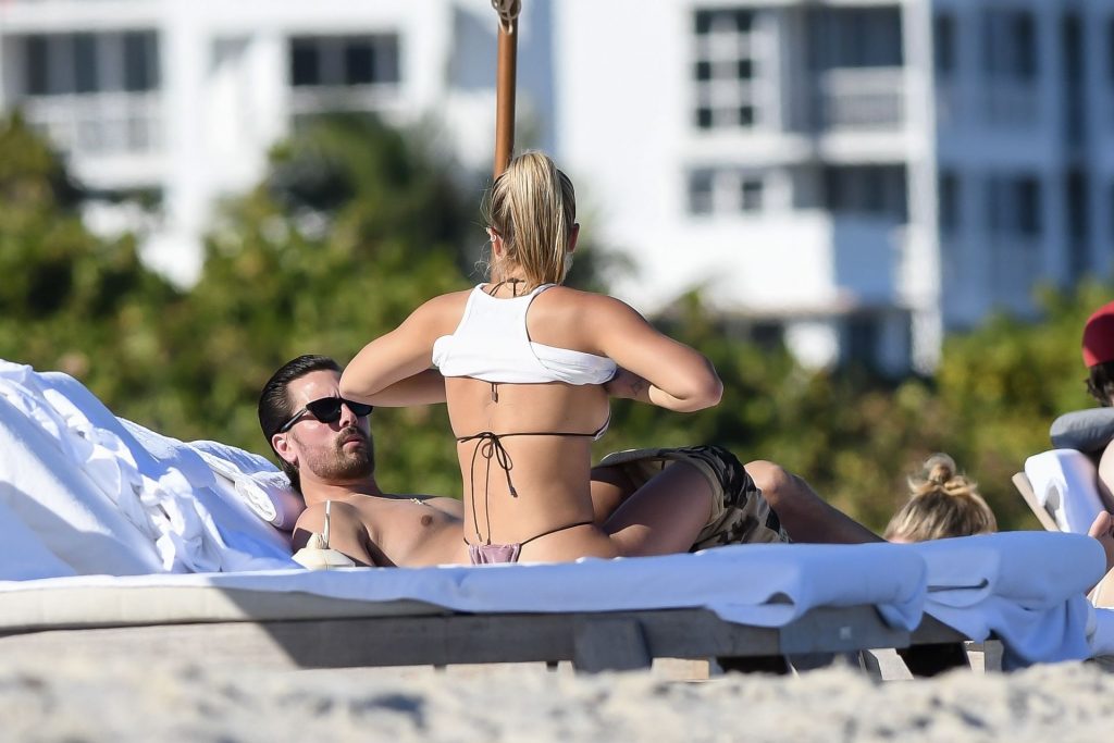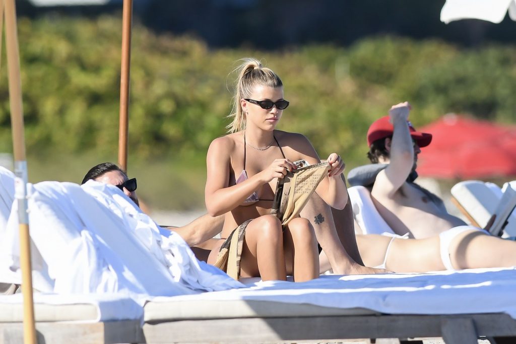 Model Sofia Richie y Scott Disick se ven en la playa en Miami en Acción de Gracias, 28/11/2019. Además de su pequeño bikini, Sofia llevaba gafas de sol Chanel.