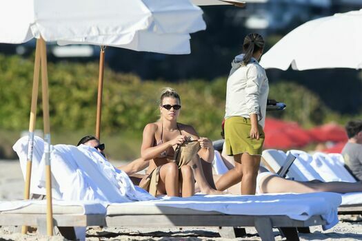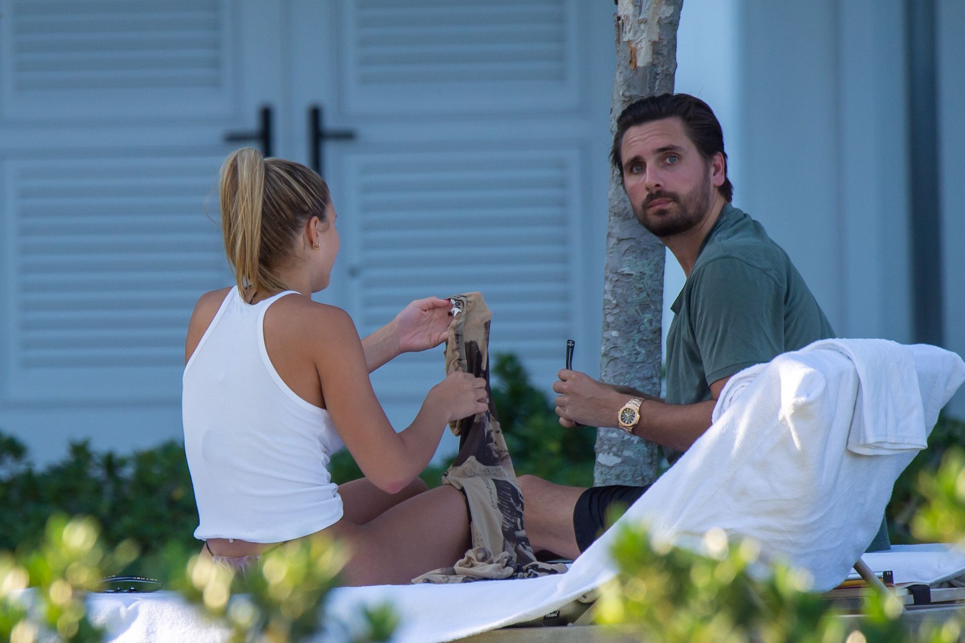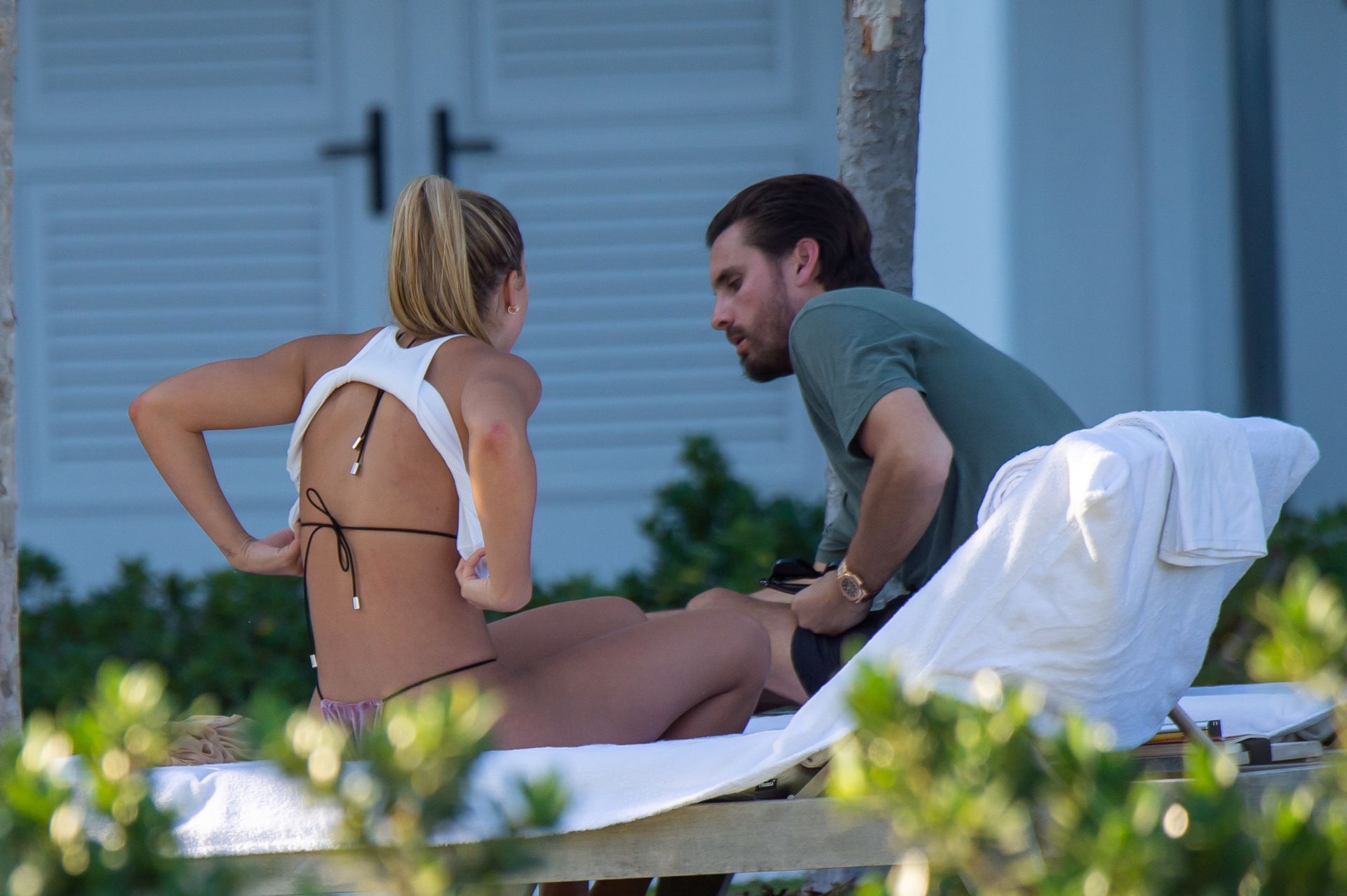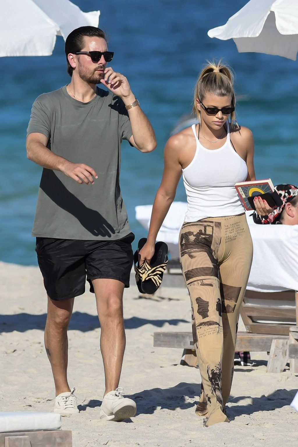 Model Sofia Richie y Scott Disick se ven en la playa en Miami en Acción de Gracias, 28/11/2019. Además de su pequeño bikini, Sofia llevaba gafas de sol Chanel.