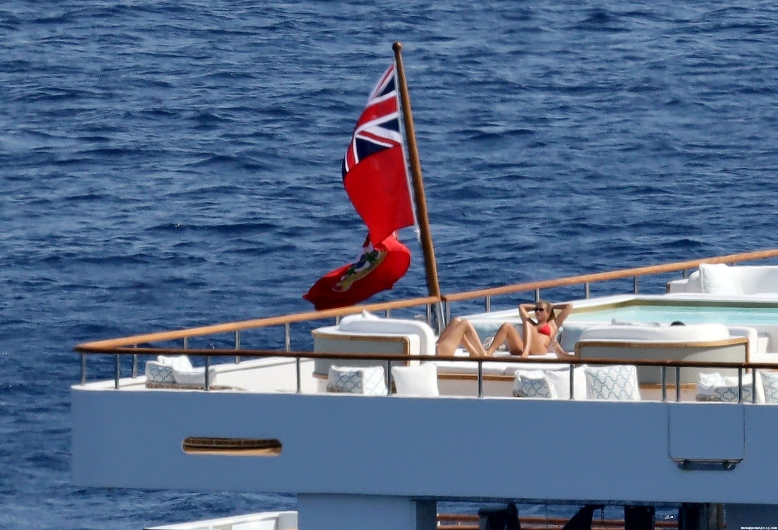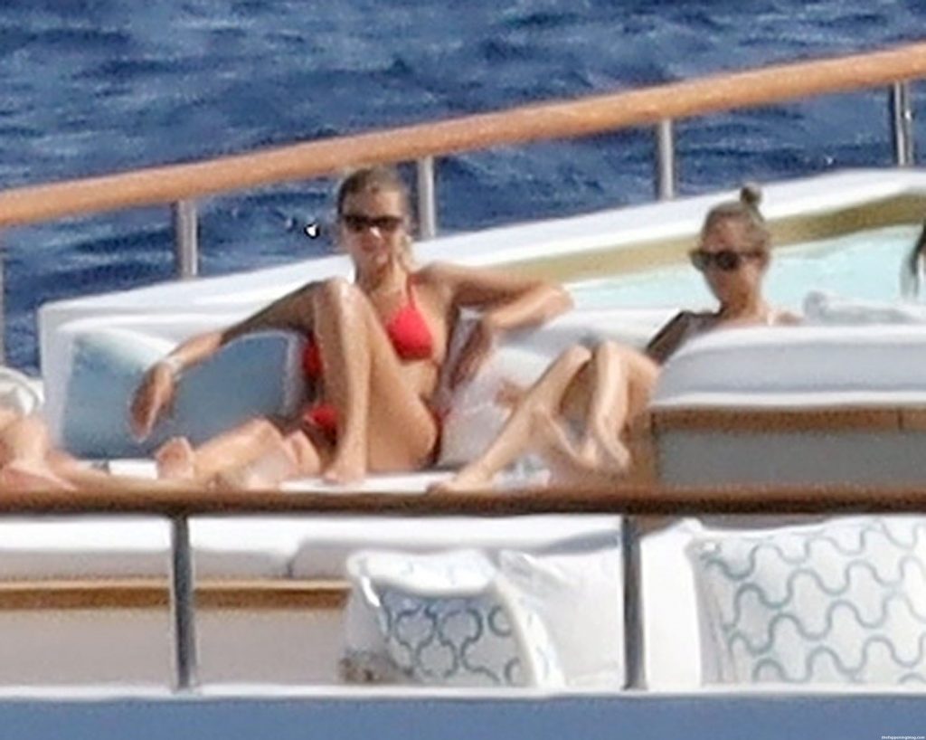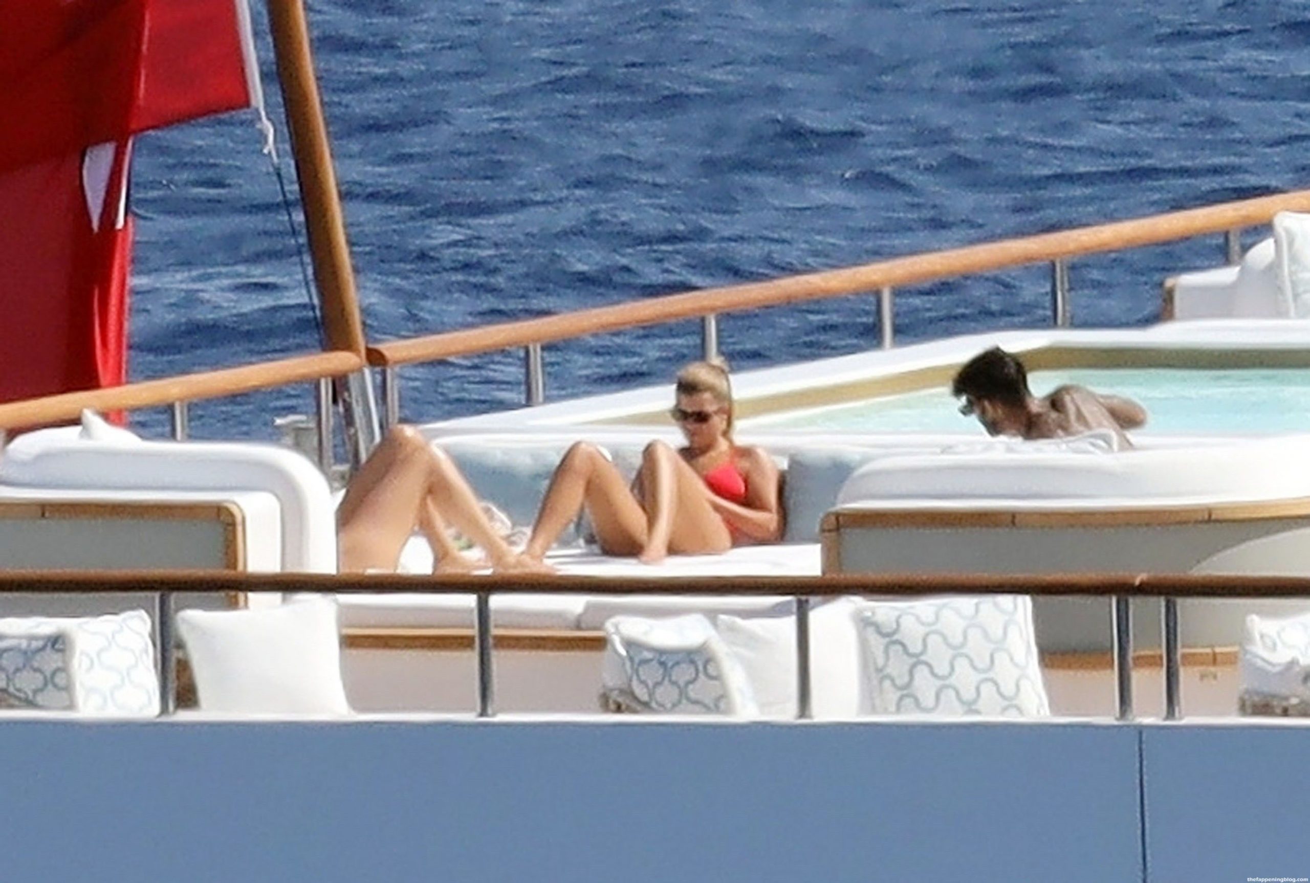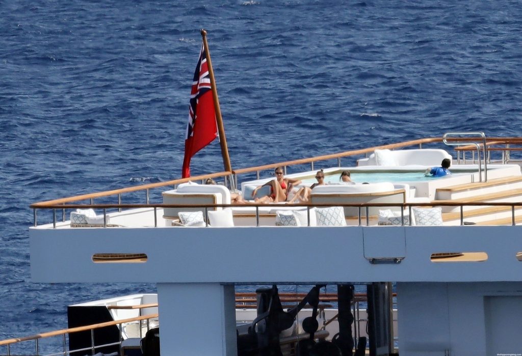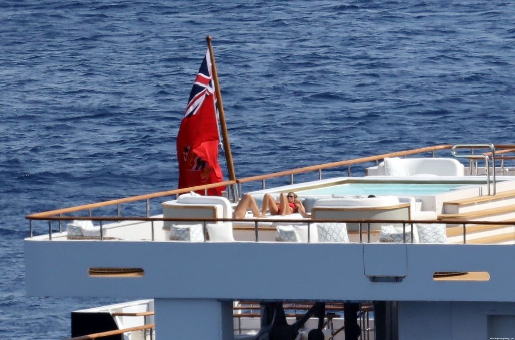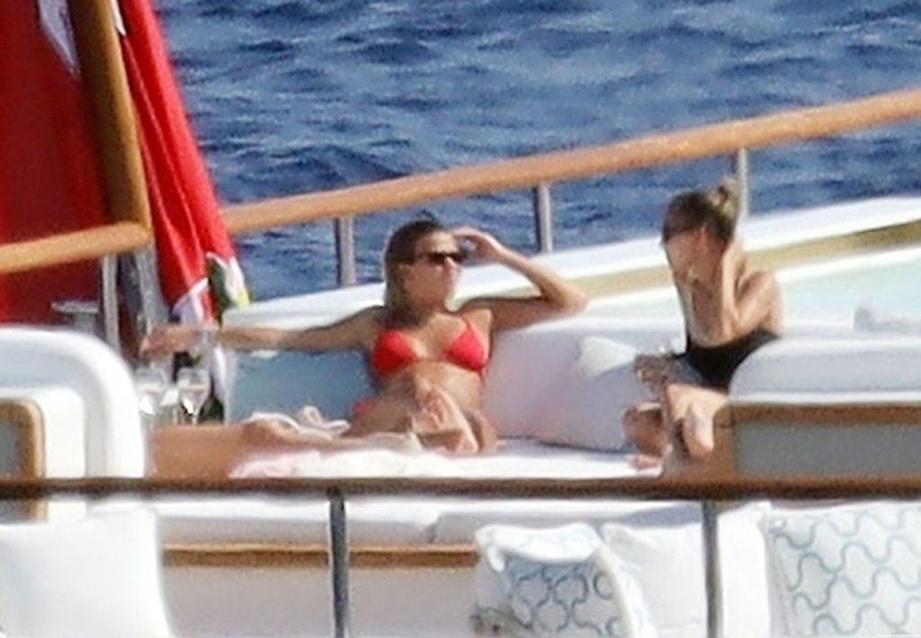 Sofia disfrutó de los rayos del sol luciendo un llamativo y sexy bikini rojo que promete aumentar aún más la temperatura durante las lujosas vacaciones griegas de los Richie.