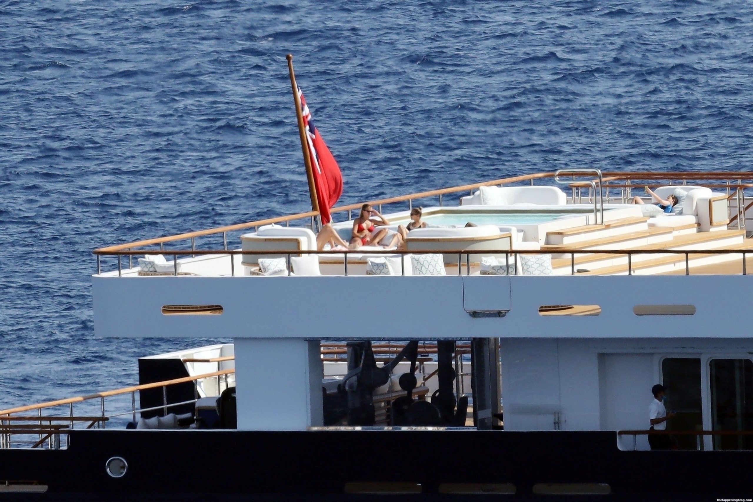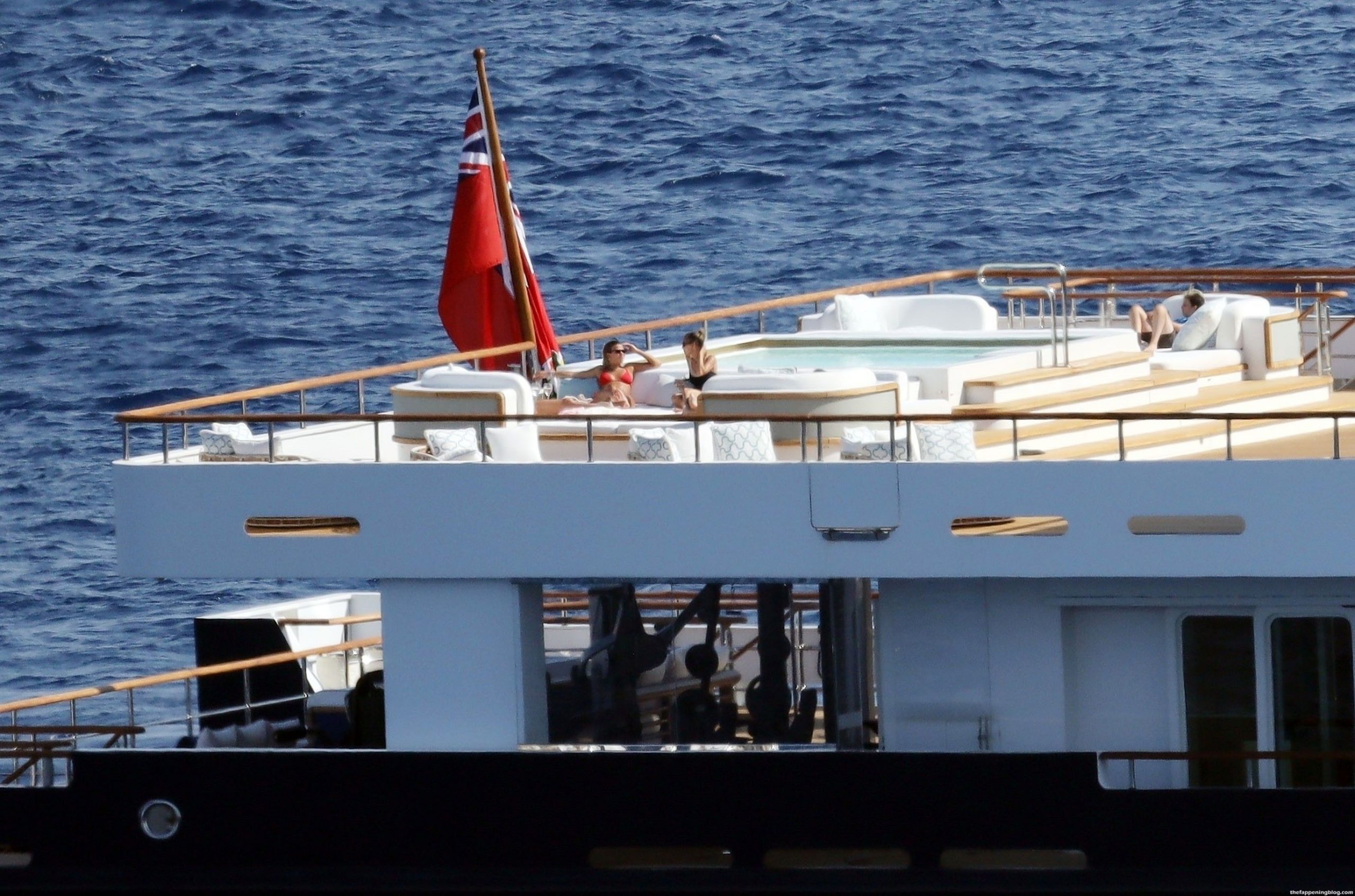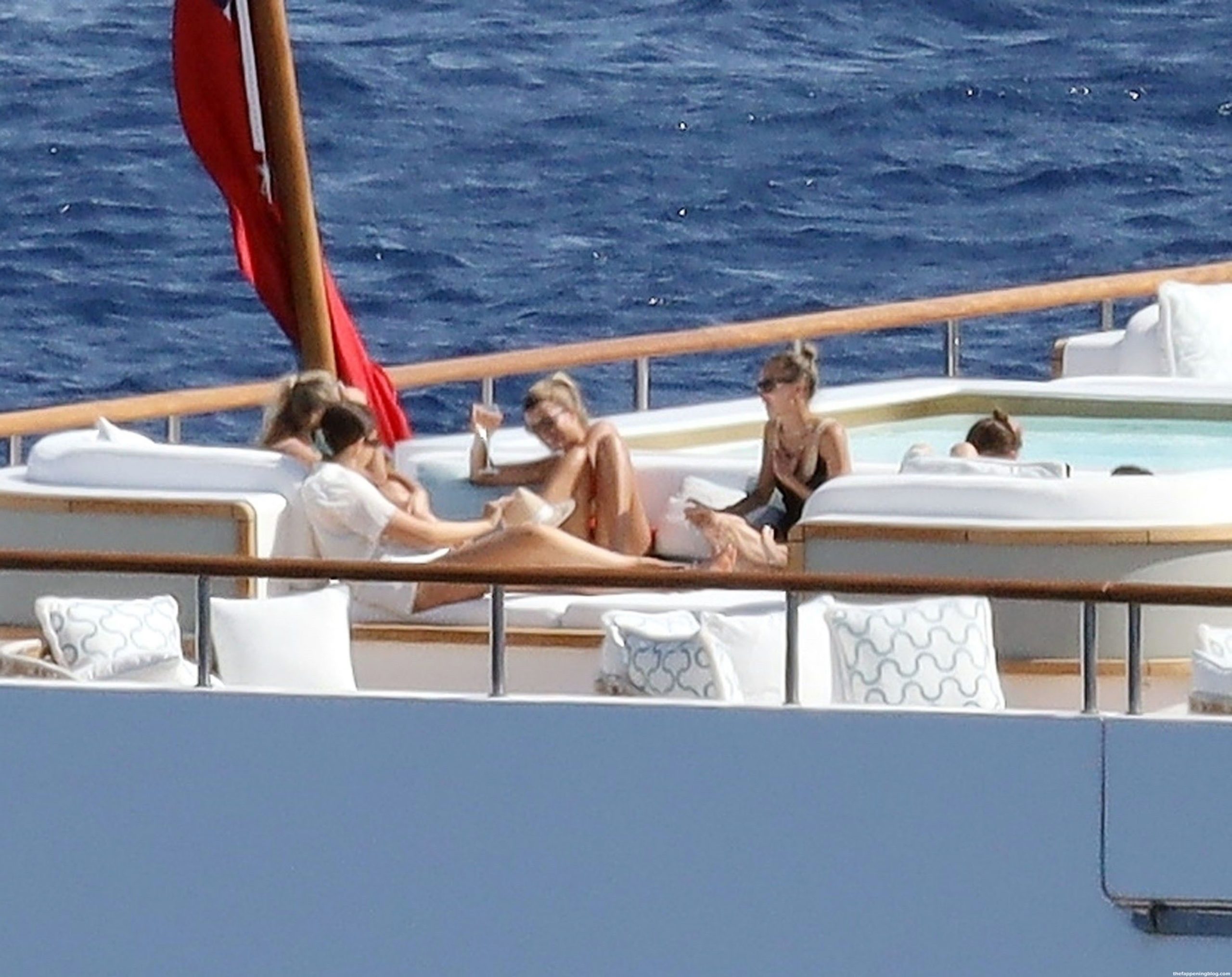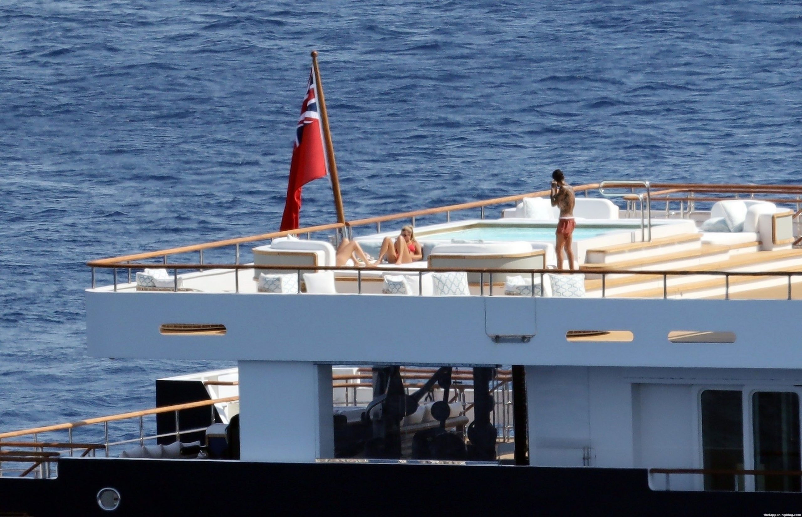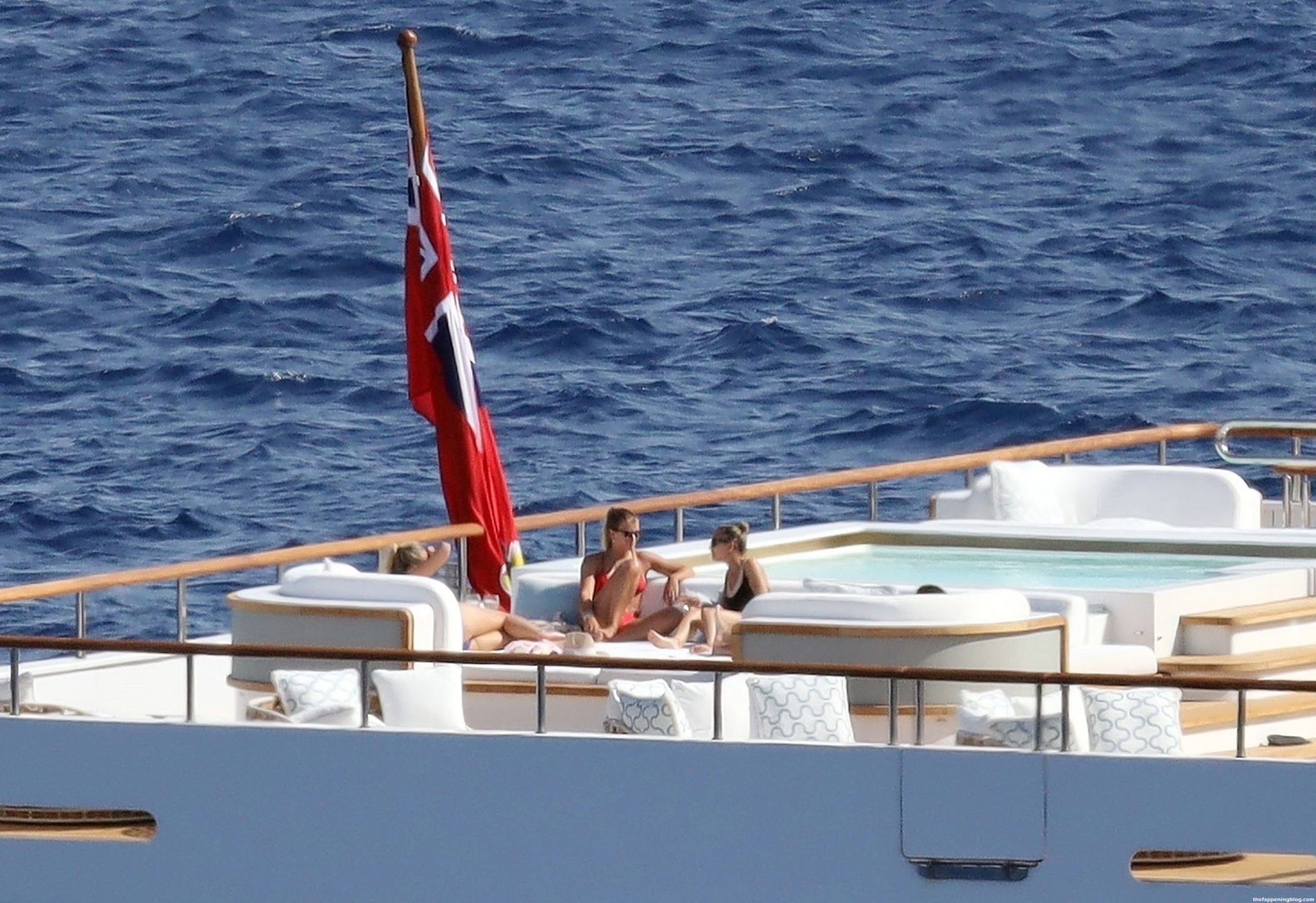 Sofia disfrutó de los rayos del sol luciendo un llamativo y sexy bikini rojo que promete aumentar aún más la temperatura durante las lujosas vacaciones griegas de los Richie.