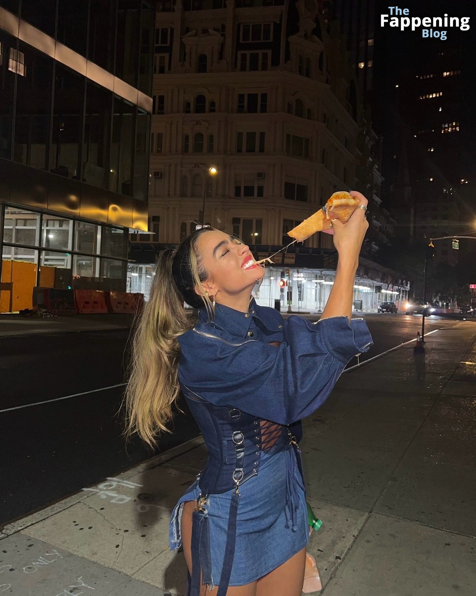 Sommer Ray aparece con un conjunto de mezclilla súper revelador, mostrando sus sensuales pechos y trasero en una audaz sesión de fotos callejera.