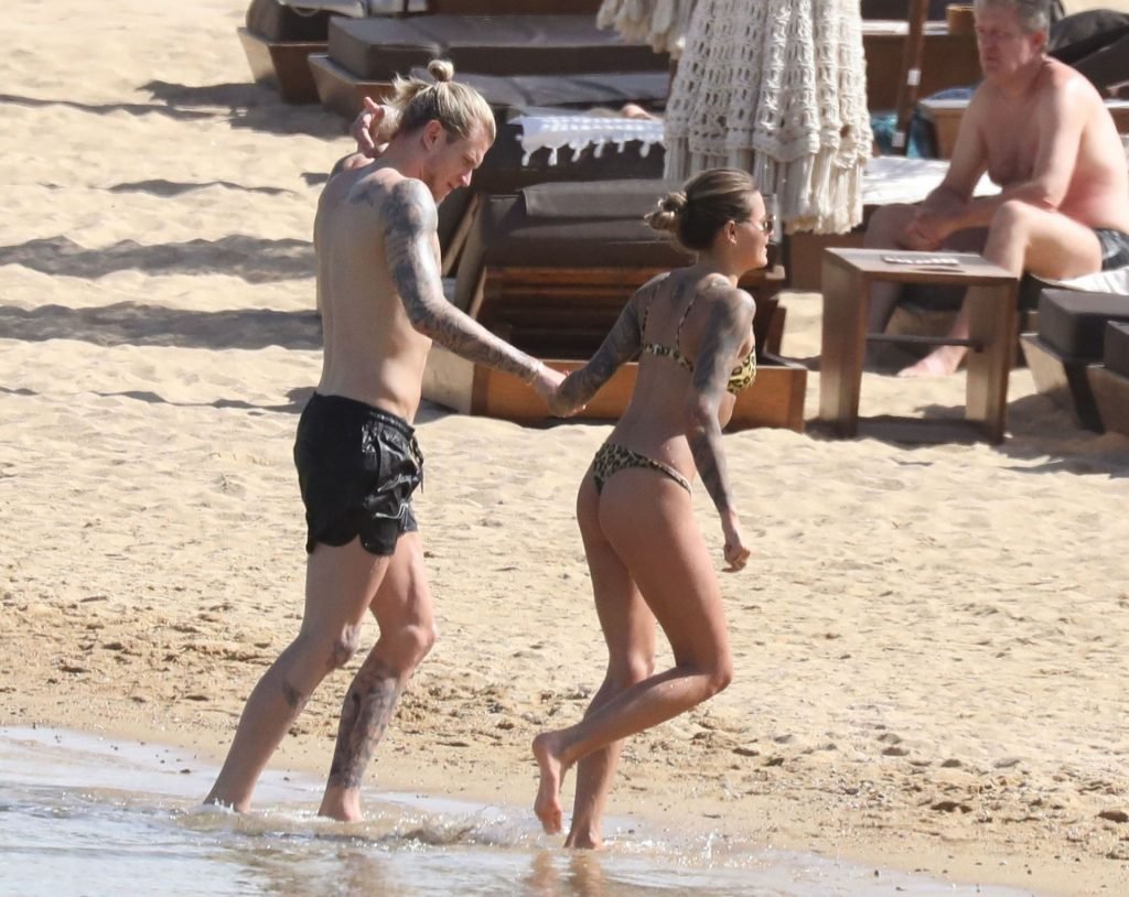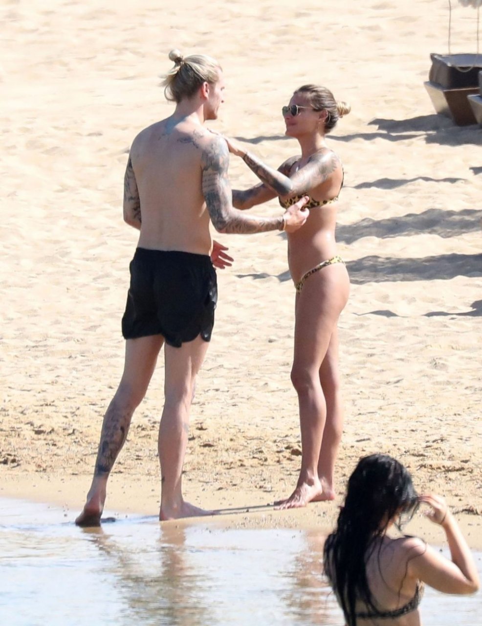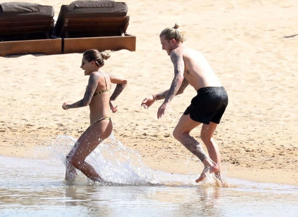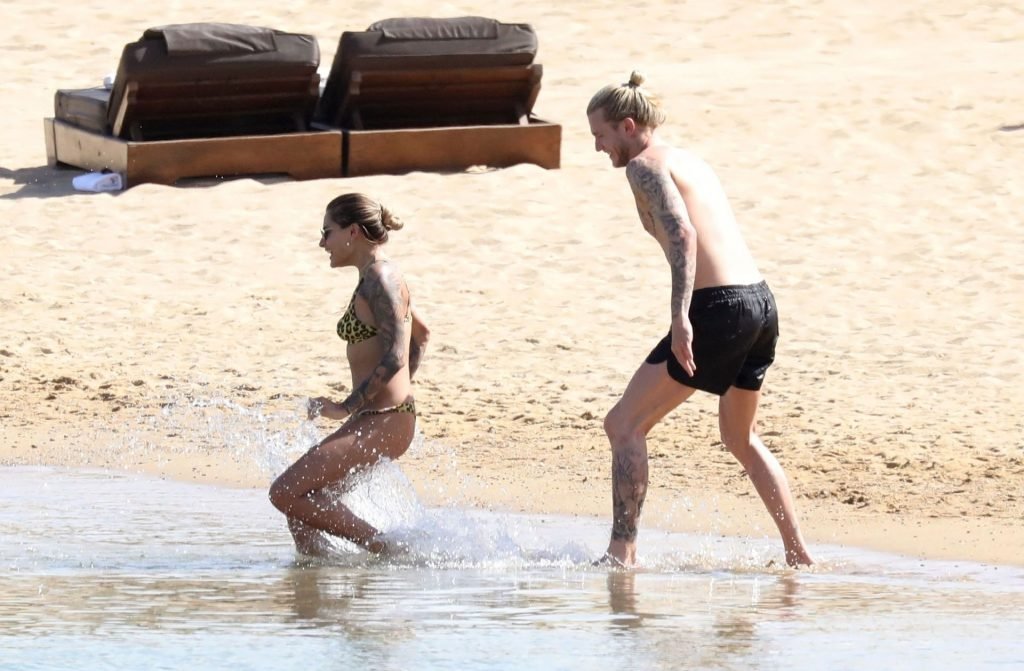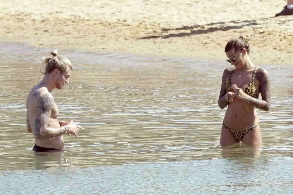 Loris cometió una serie de errores en el evento principal del año pasado y esta vez se le ve bajo una luz diferente, tomando las cosas con un poco más de calma y disfrutando sus vacaciones en la playa con Sophia Thomalla, quien llevaba un sexy bikini de estampado animal mientras Karius estaba sin camiseta mostrando su colección de tatuajes. La pareja mostró su amor mientras se divertían en la playa besándose y abrazándose en su escapada griega bañada por el sol, 29/05/2019.