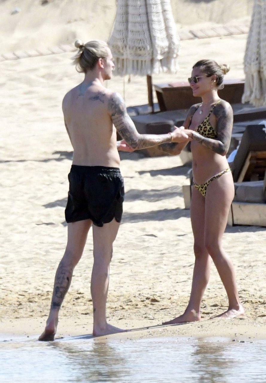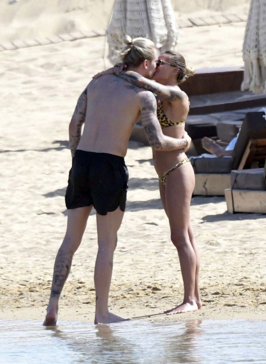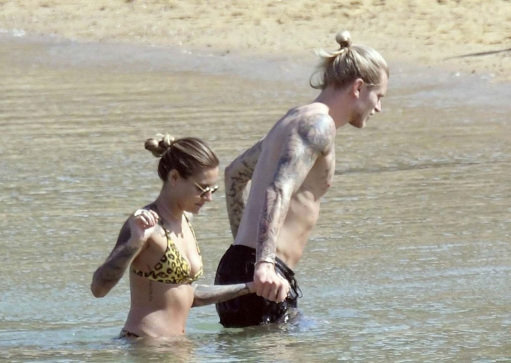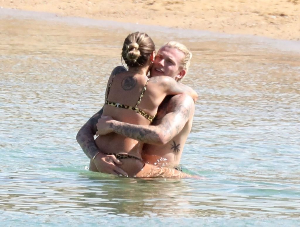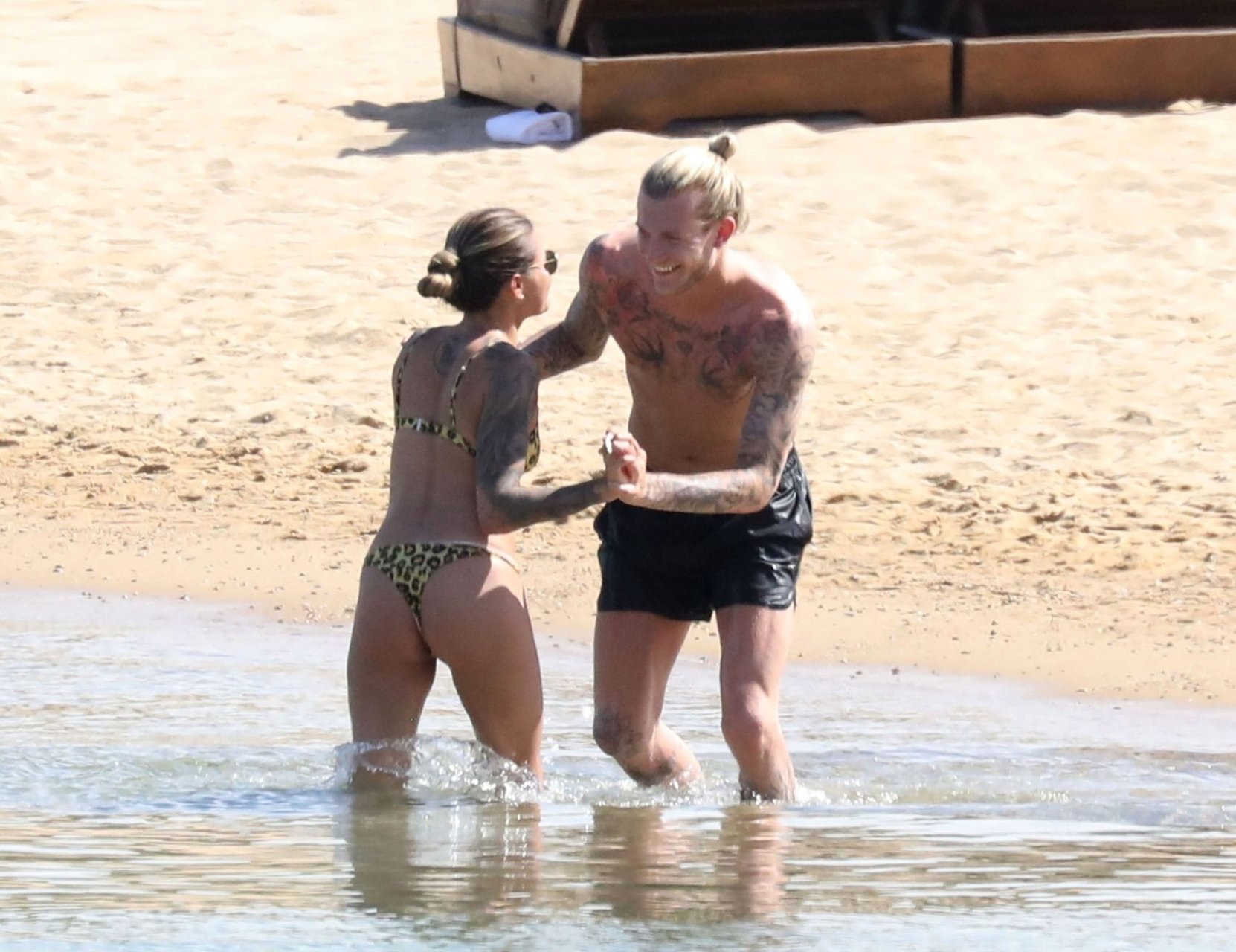Loris cometió una serie de errores en el evento principal del año pasado y esta vez se le ve bajo una luz diferente, tomando las cosas con un poco más de calma y disfrutando sus vacaciones en la playa con Sophia Thomalla, quien llevaba un sexy bikini de estampado animal mientras Karius estaba sin camiseta mostrando su colección de tatuajes. La pareja mostró su amor mientras se divertían en la playa besándose y abrazándose en su escapada griega bañada por el sol, 29/05/2019.