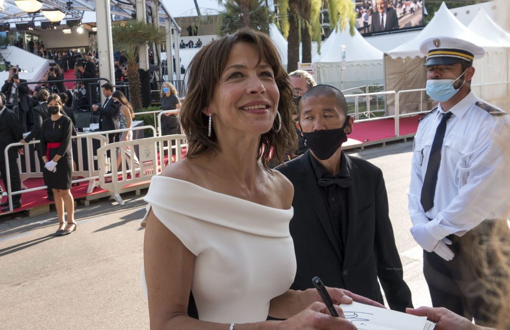 Actriz Sophie Marceau posa en la alfombra roja, asistiendo a la proyección de la película Tout s’est bien passe’ (Todo salió bien) celebrada en el Palais Des Festivals en Cannes, Francia, 07/07/2021.