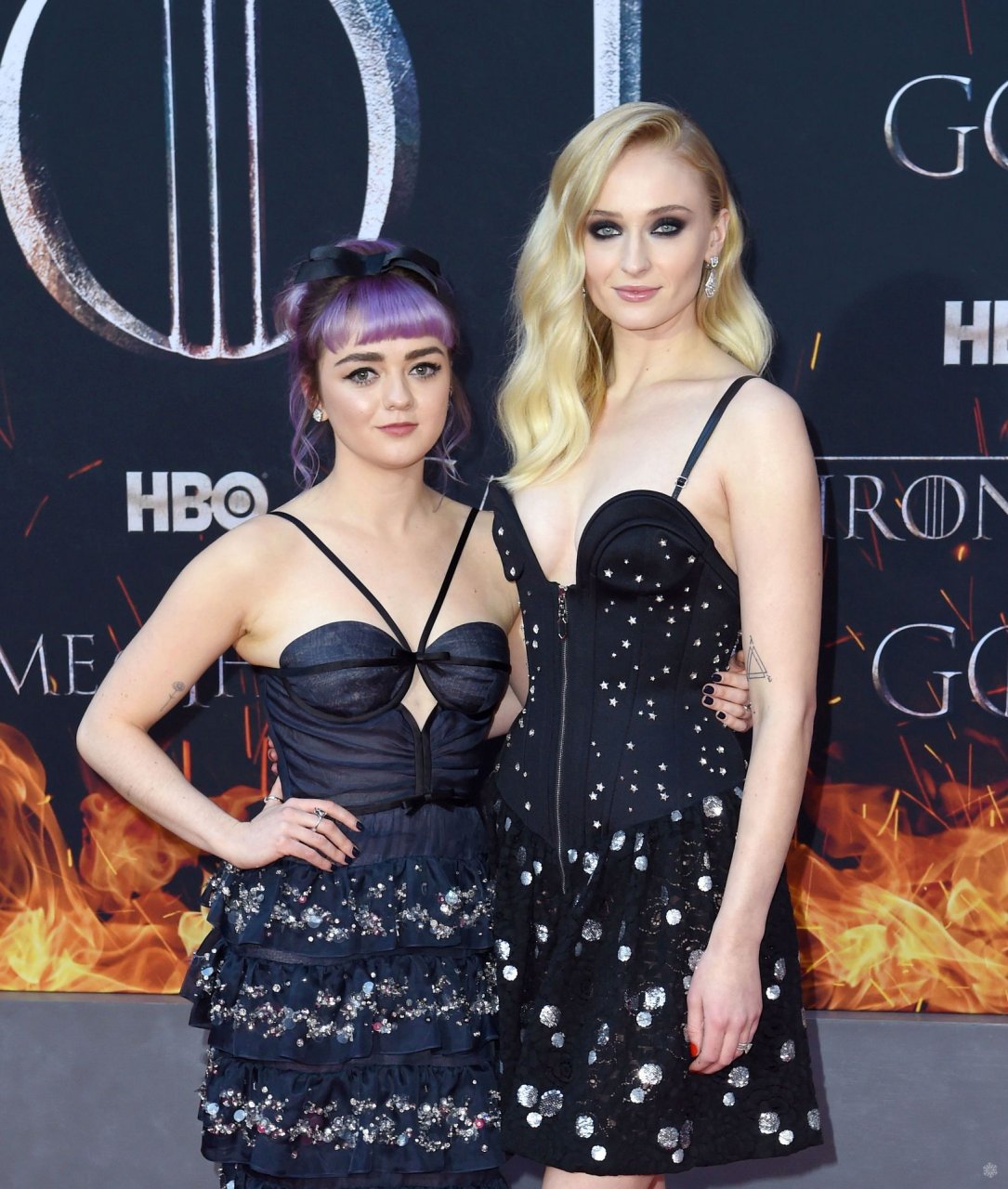 La actriz rubia Sophie Turner muestra sus piernas sexys en el estreno de la temporada 8 de “Game Of Thrones” en la ciudad de Nueva York, 03/04/2019. Su amiga, Maisie Williams, fue vista allí.