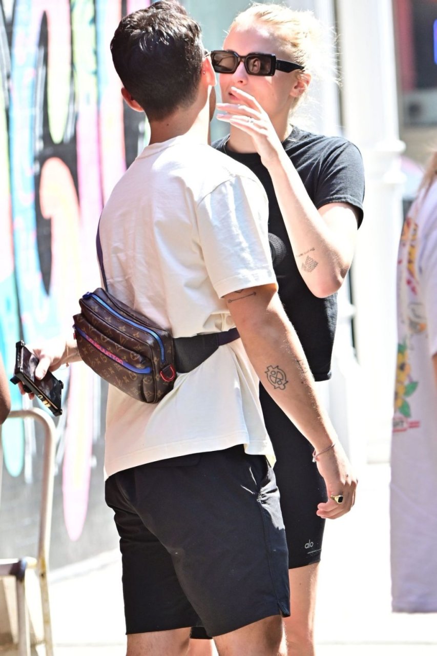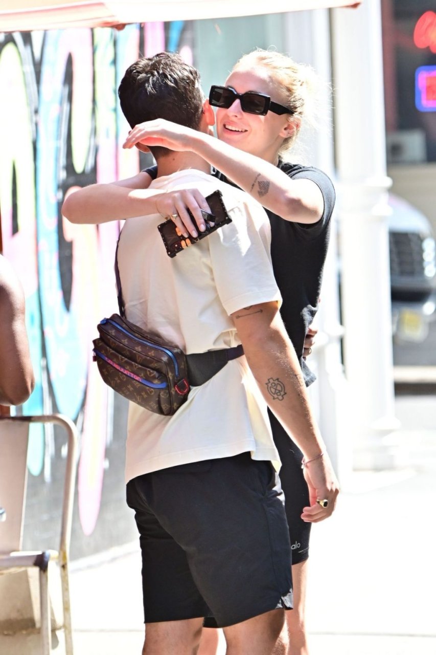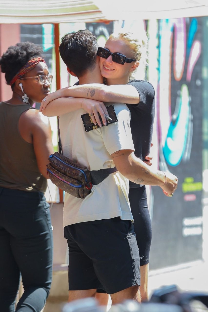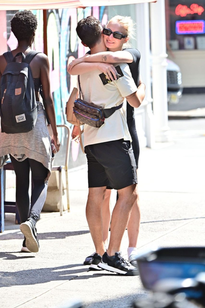 Sophie Turner está besando y abrazando a su esposo Joe Jonas antes de que él vaya a un concierto en un momento lleno de muestras públicas de afecto después de su almuerzo con amigos en Nueva York, 19/08/2019.