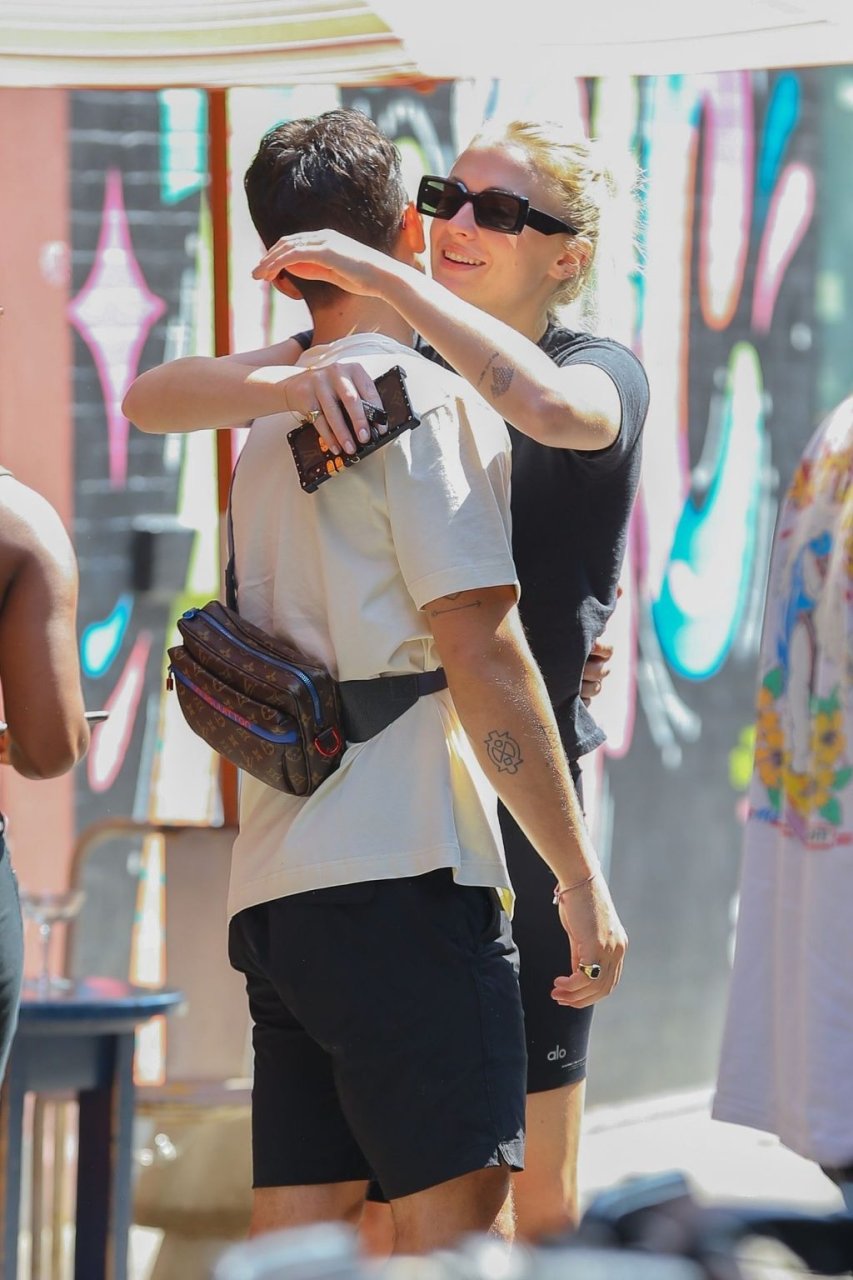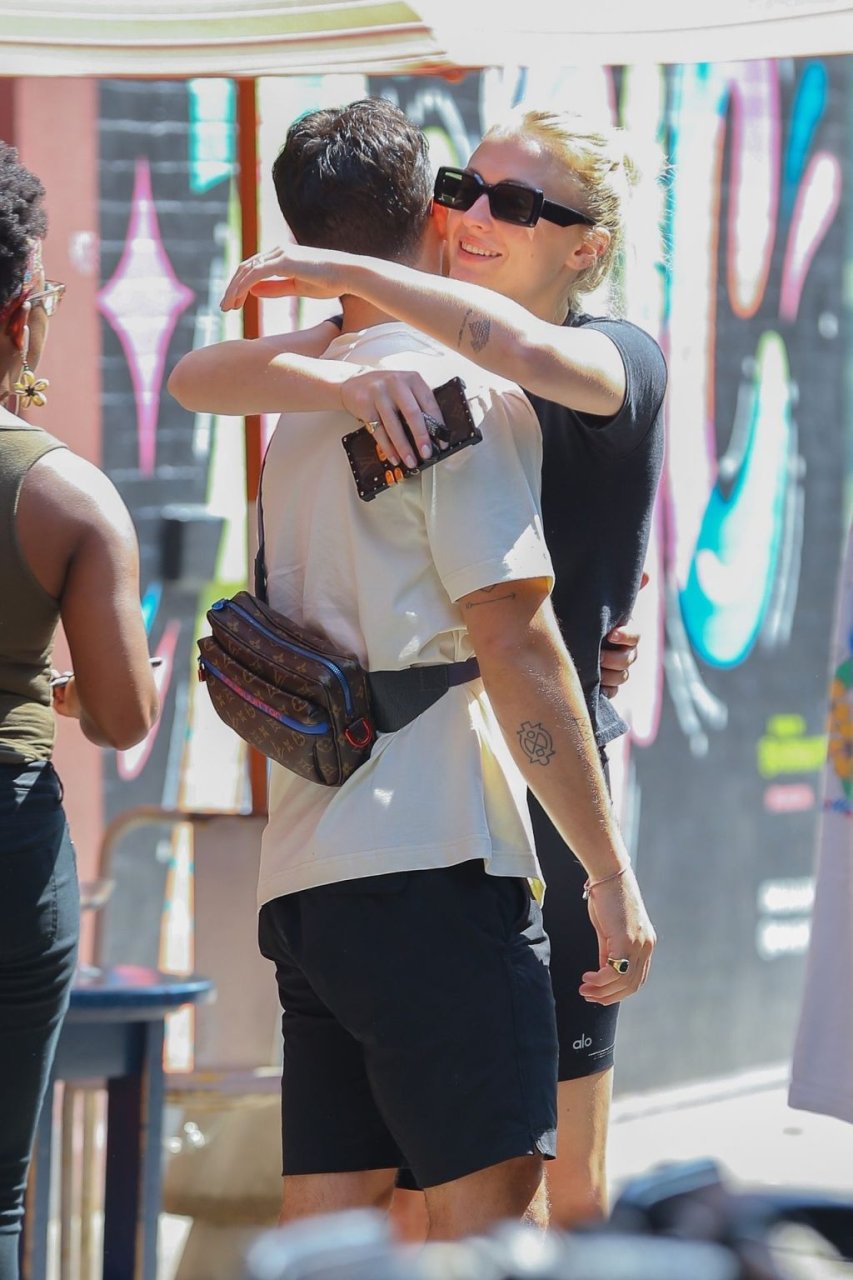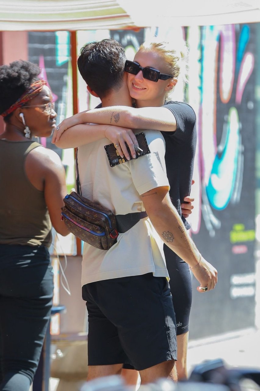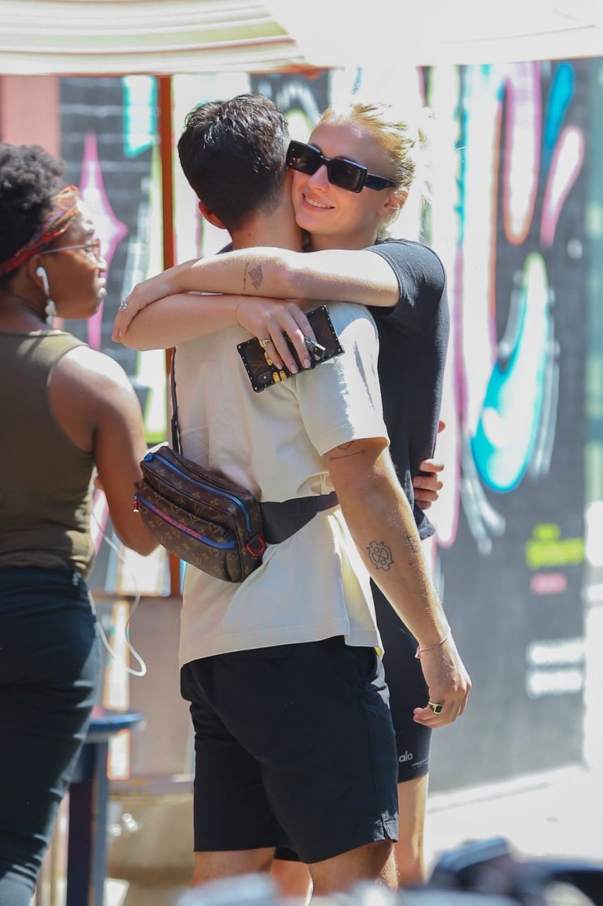 Sophie Turner está besando y abrazando a su esposo Joe Jonas antes de que él vaya a un concierto en un momento lleno de muestras públicas de afecto después de su almuerzo con amigos en Nueva York, 19/08/2019.