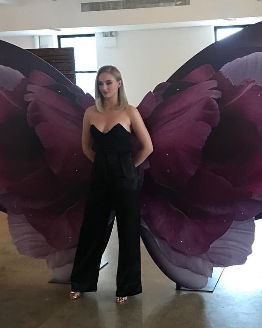 La actriz Sophie Turner mostró su super escote en el evento de Wella en Nueva York – Instagram, 20/10/2018. Su cabello se ve genial, pero a todos los fans les interesa ver su vello púbico.