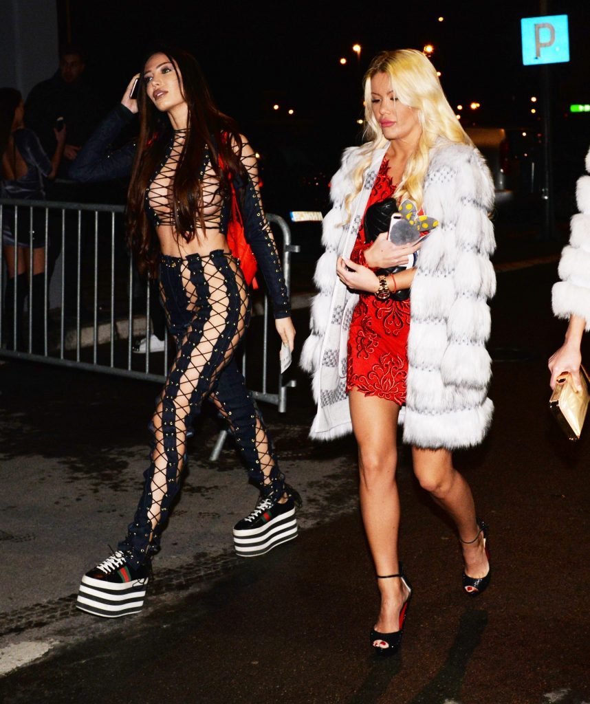 Soraja Vucelic sin sostén muestra sus grandes pechos falsos mientras visita una fiesta en Belgrado, 12/05/2017. Soraja Vucelic es una modelo de Knin, Croacia. Edad – 30.