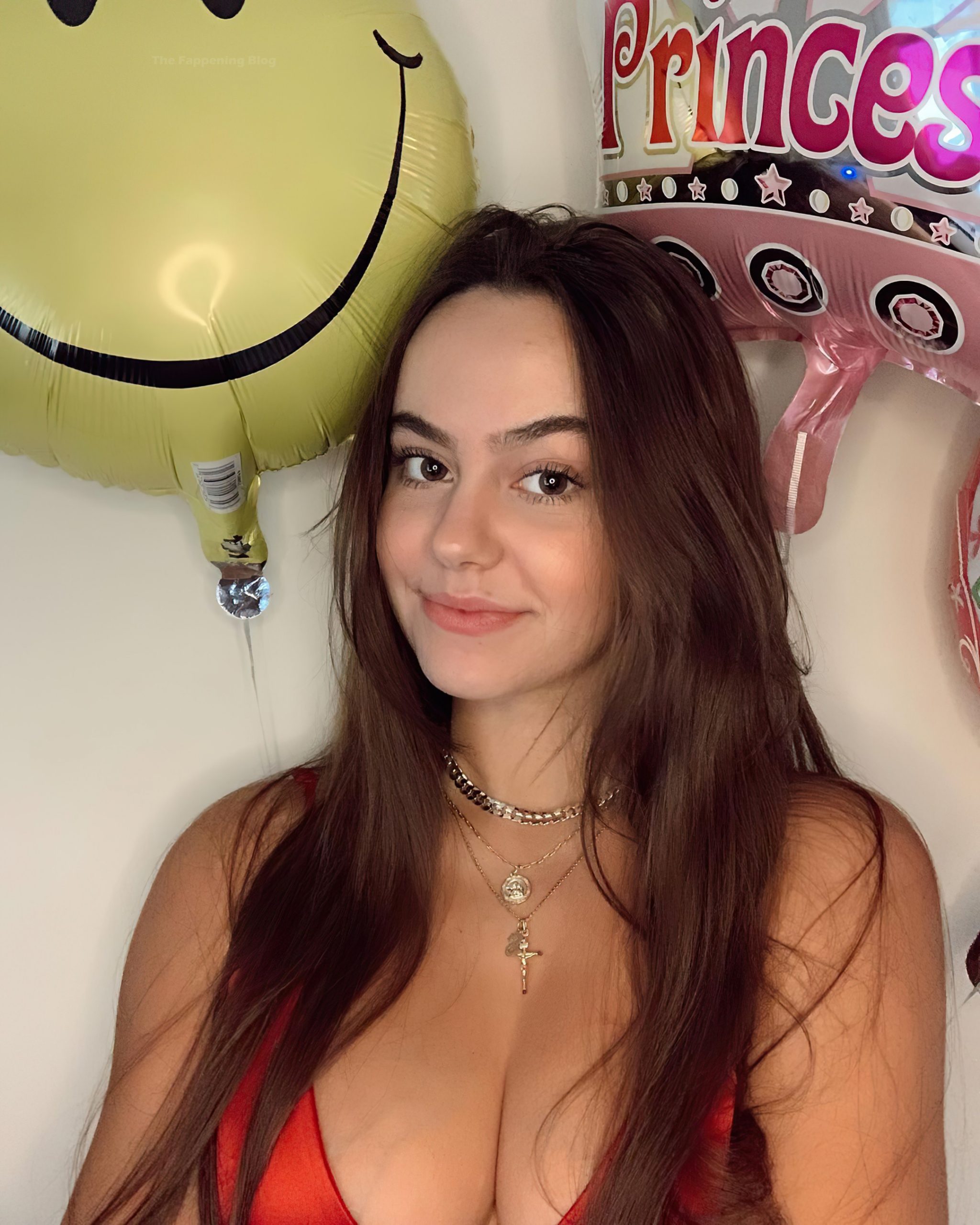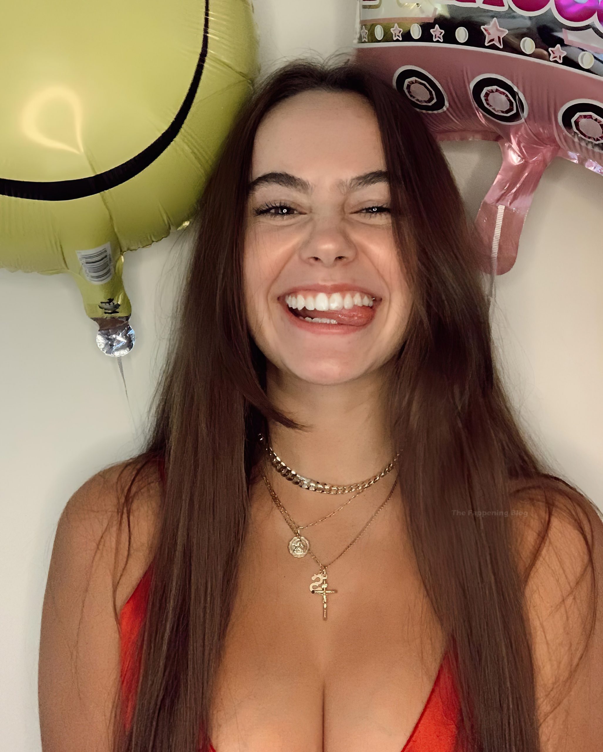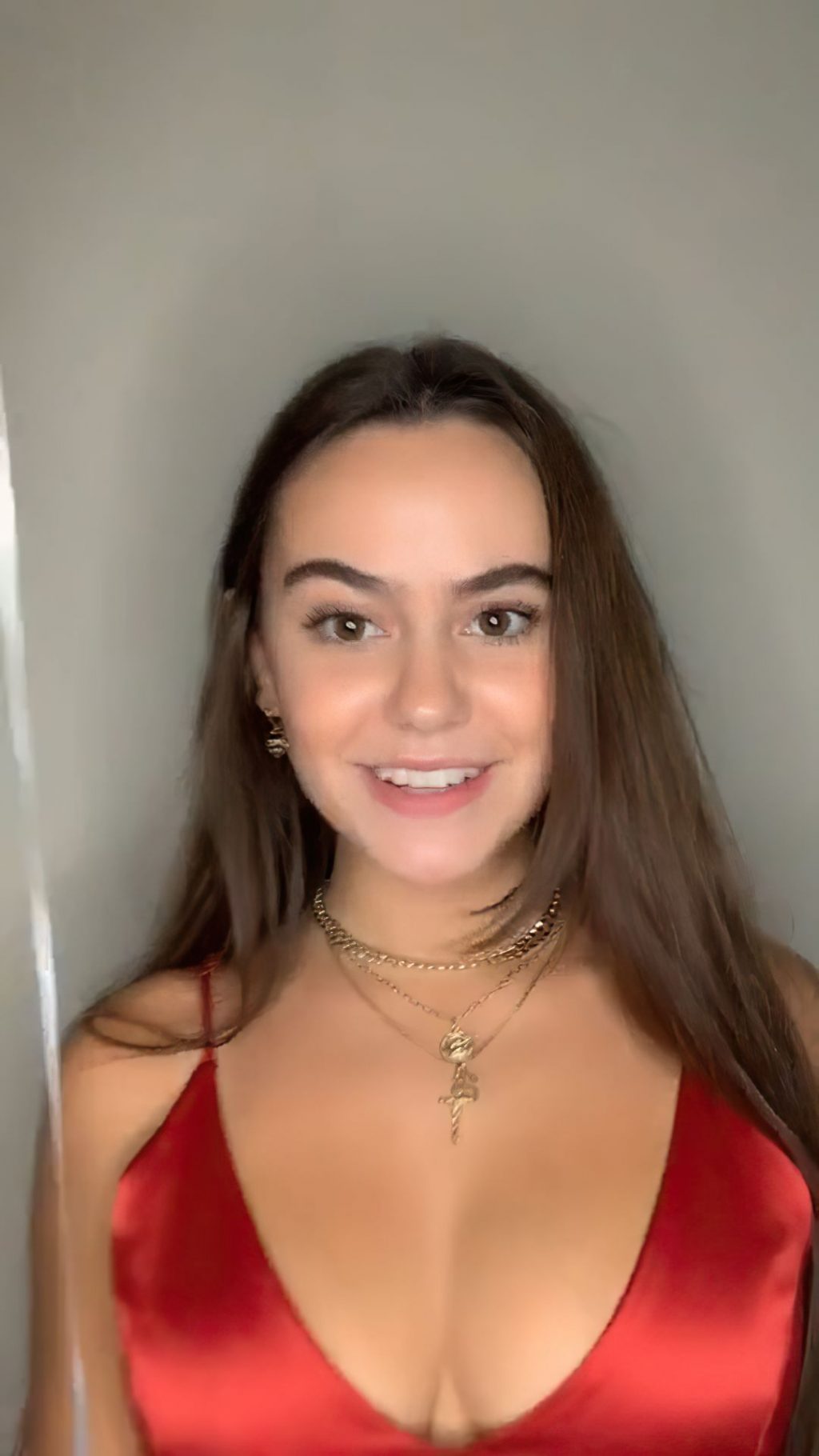 La estrella canadiense de TikTok Spencer Barbosa muestra su escote mientras posa con un sexy vestido rojo celebrando su 18 cumpleaños en Instagram, 29/10/2020.