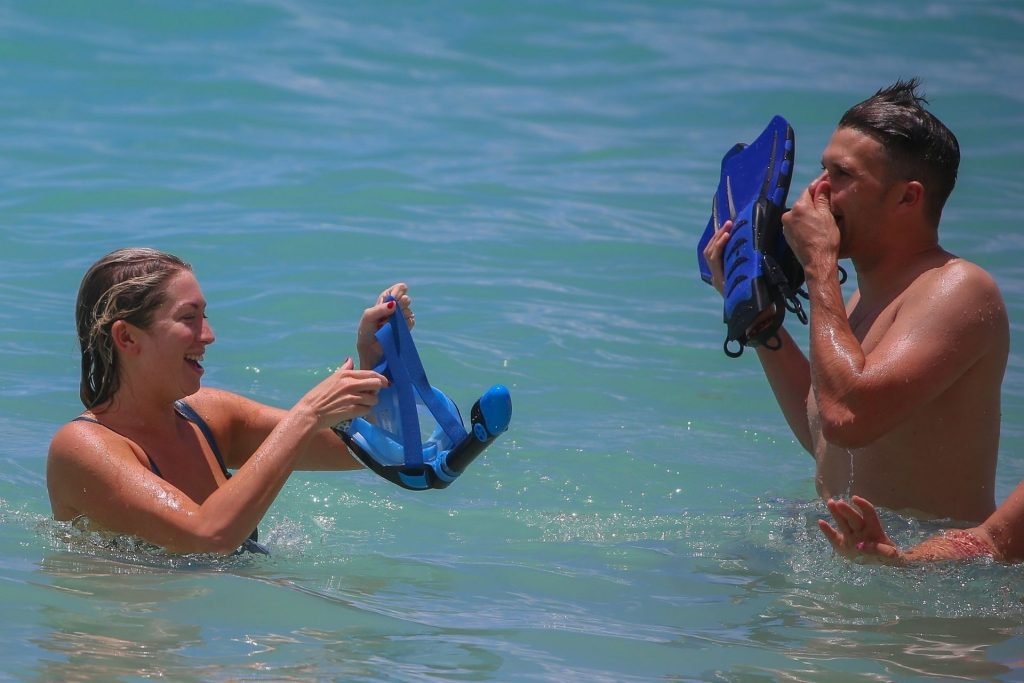 Nastassia Bianca “Stassi” Schroeder lució un sexy traje de una pieza mientras se unía a sus compañeros del elenco de “Vanderpump Rules”, Katie Maloney-Schwartz y su esposo Tom Schwartz, para hacer esnórquel frente a su hotel en Waikiki, 24/08/2019. Se vio a Katie con un bikini diminuto mientras jugaba con su esposo en la orilla.
