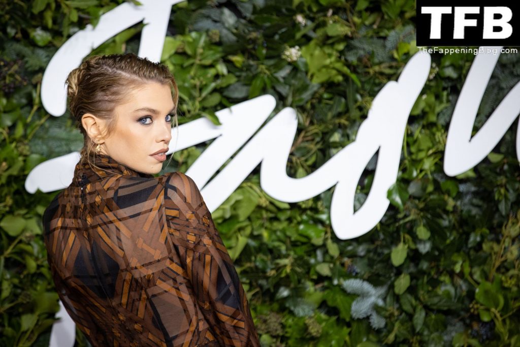 Modelo y estrella de The Fappening Stella Maxwell es vista sin sostén llegando a Los Fashion Awards en Londres, 29/11/2021.