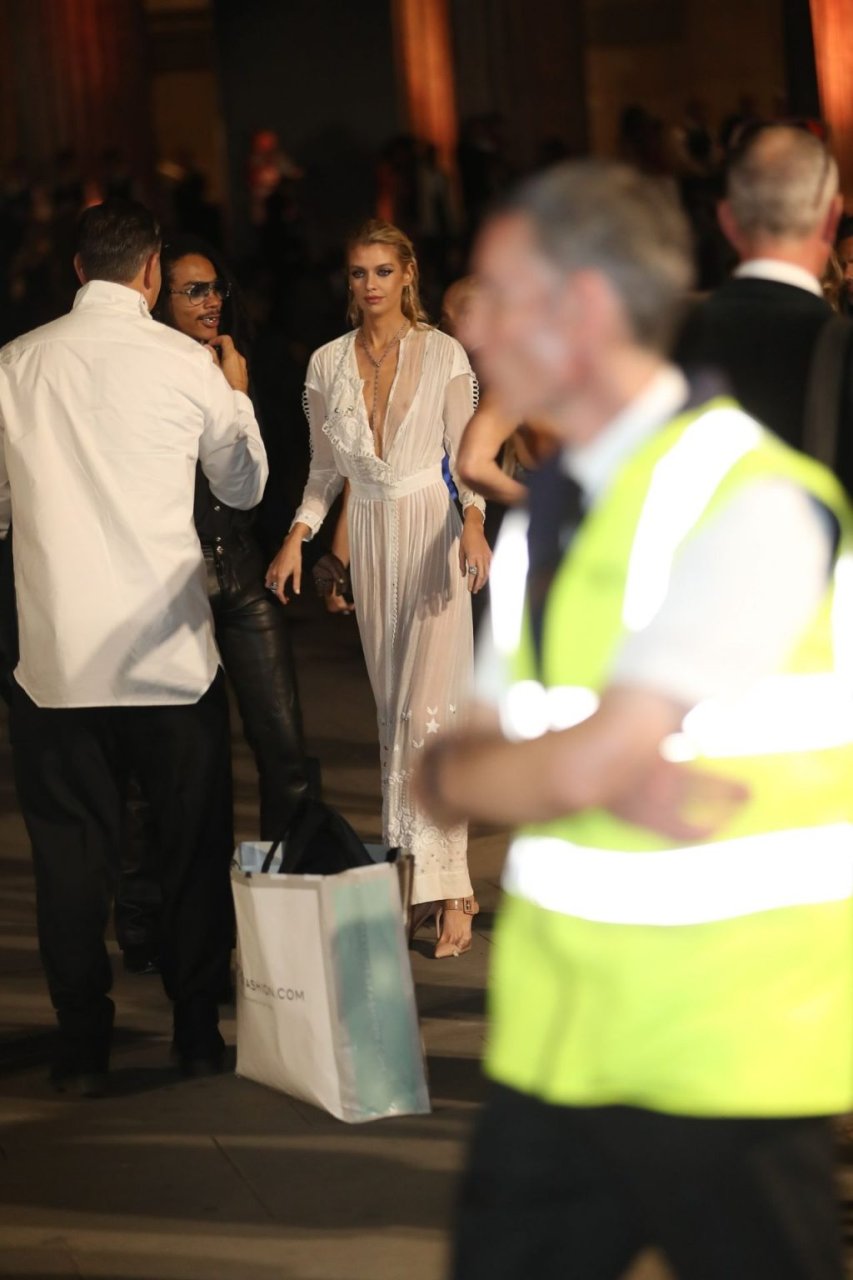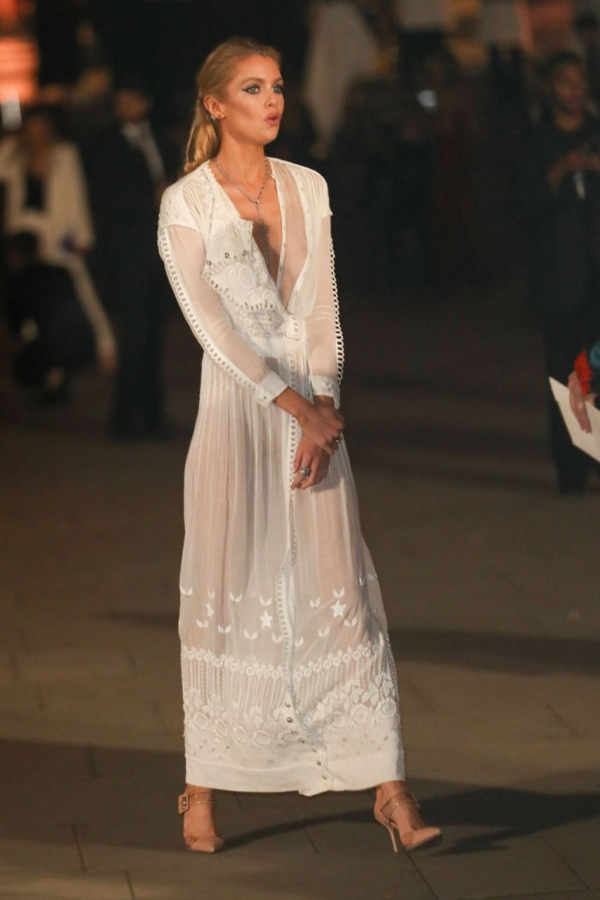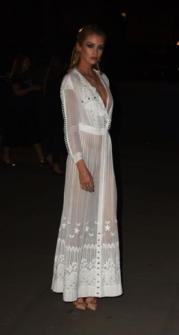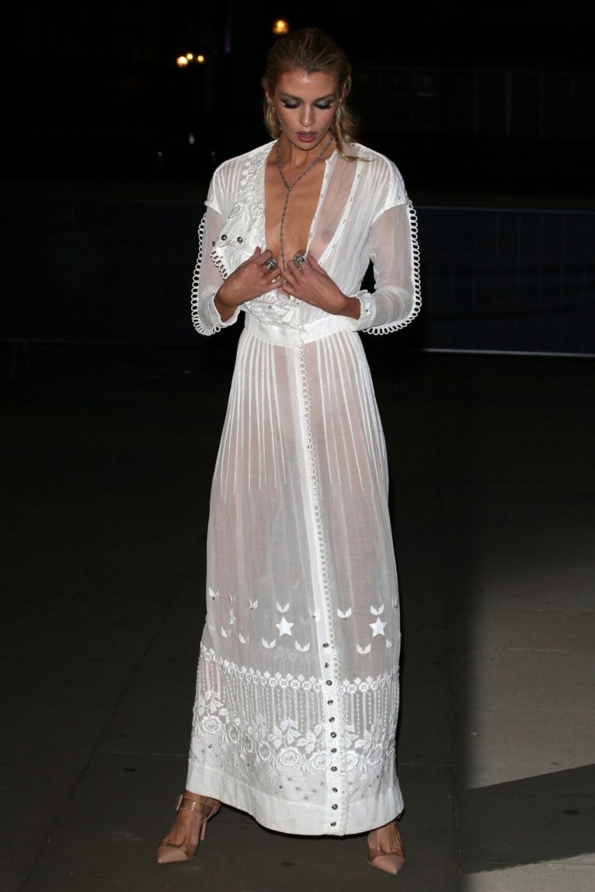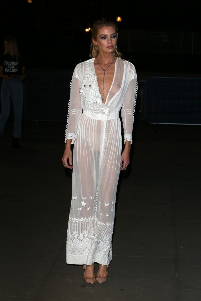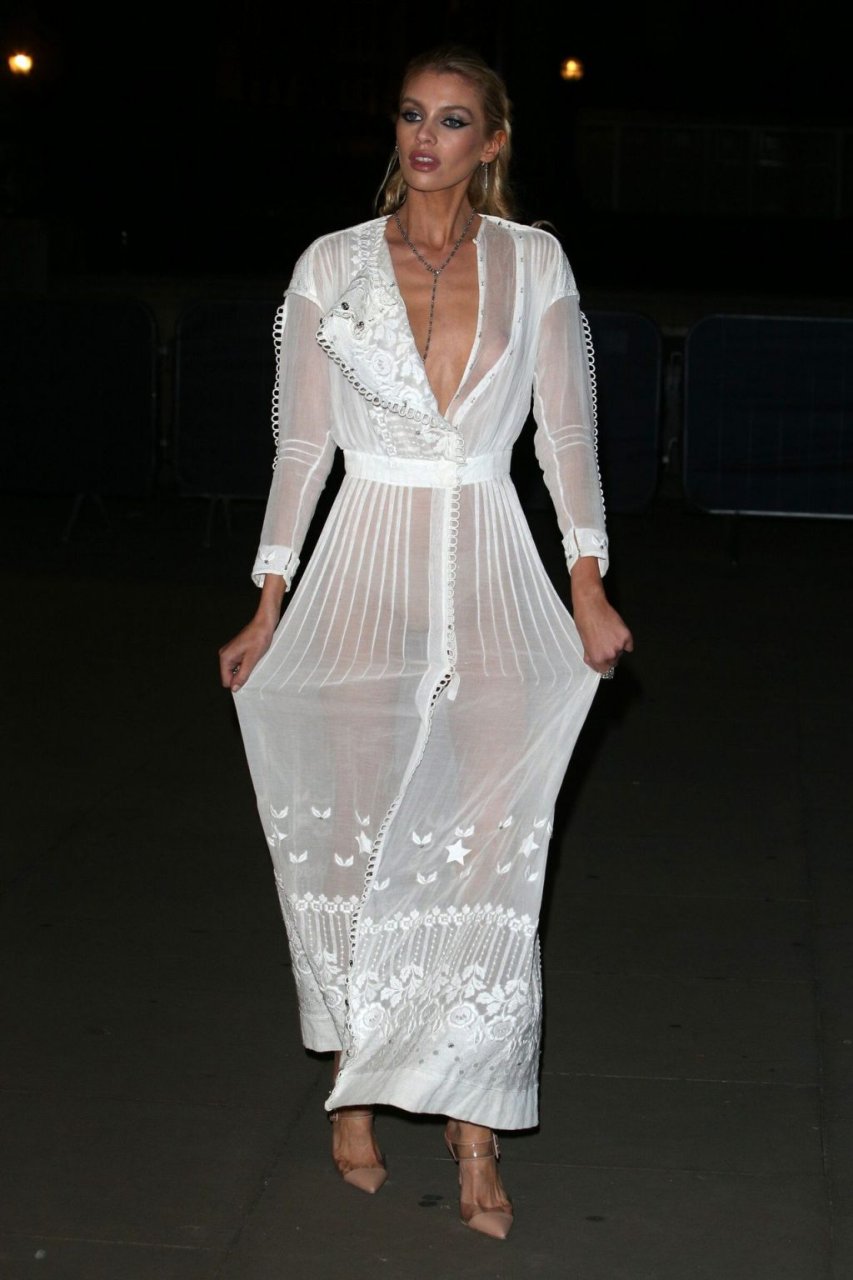 La modelo norirlandesa-neozelandesa Stella Maxwell asiste al evento Fashion For Relief durante la Semana de la Moda de Londres en el Museo Británico en Londres, 14/09/2019. La estrella de The Fappening sufre un desliz de pezón mientras ella y otras celebridades asisten al evento.