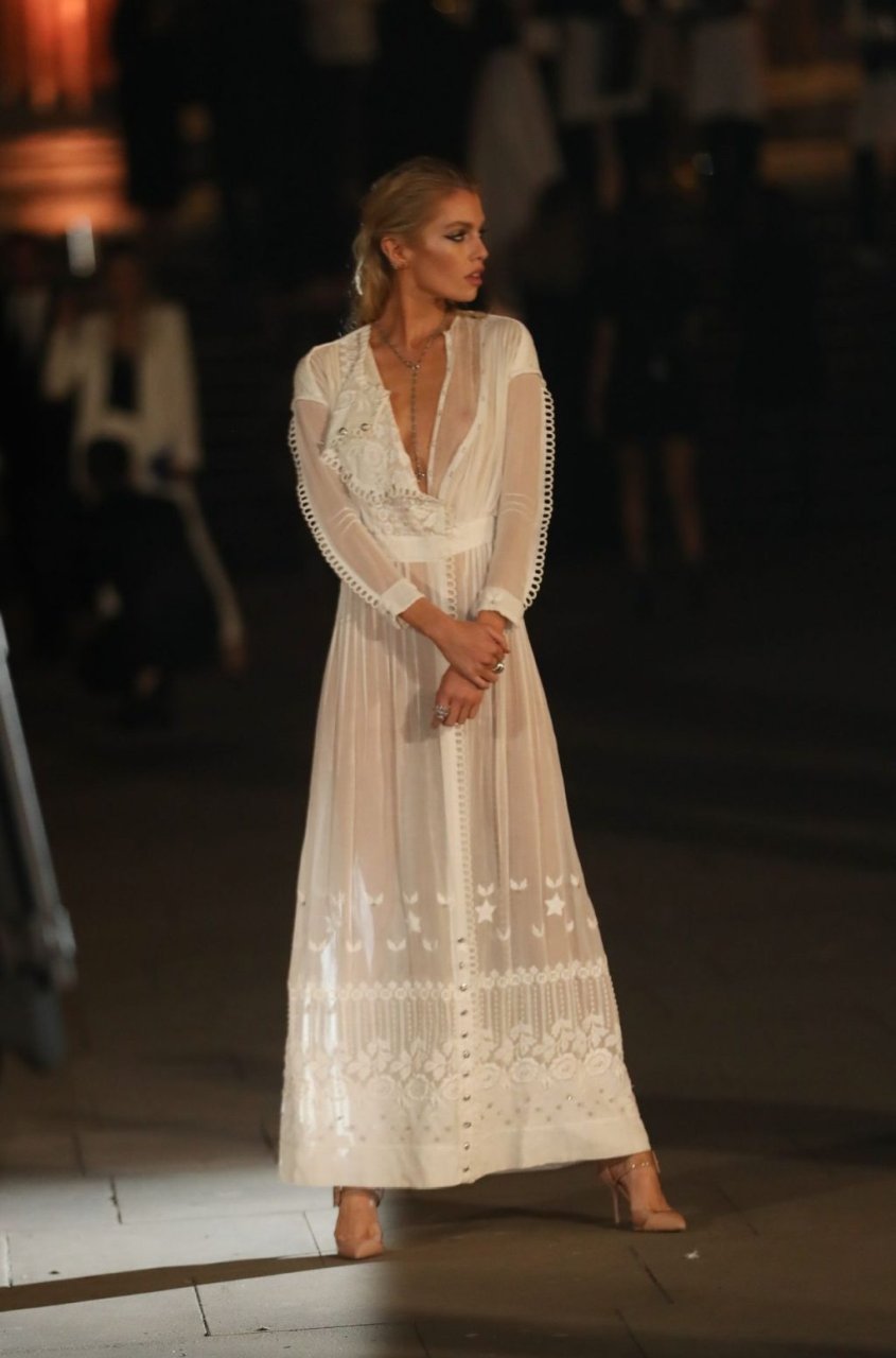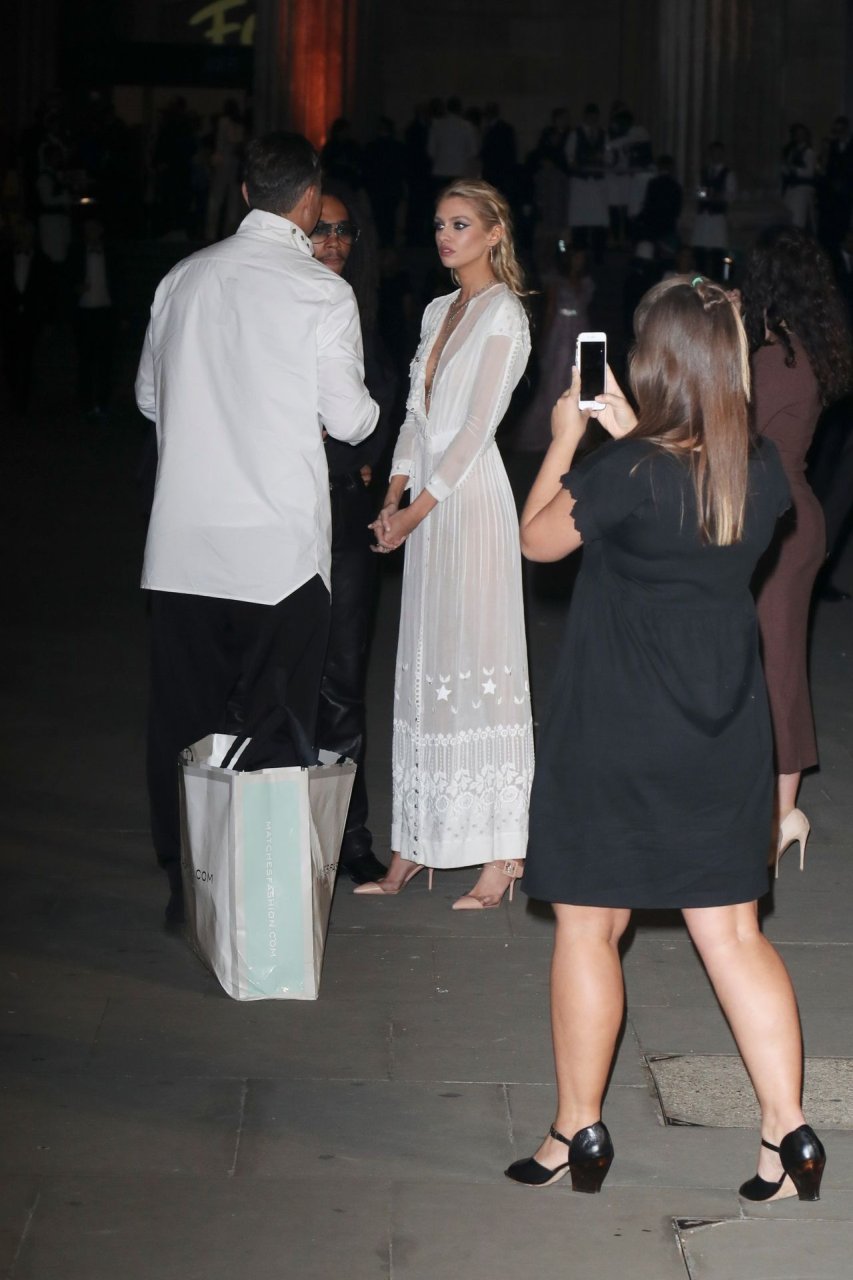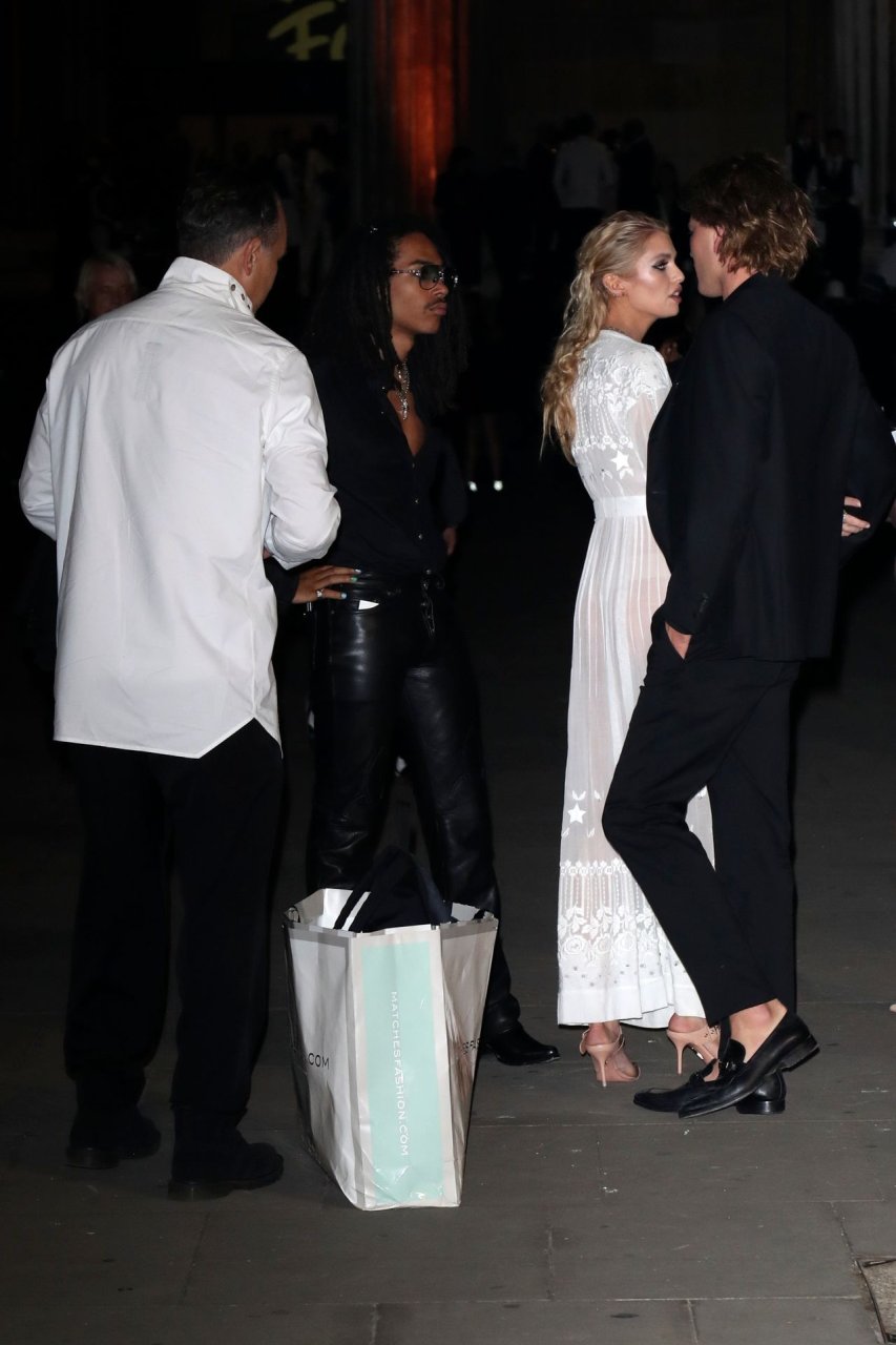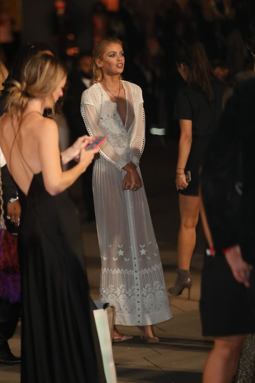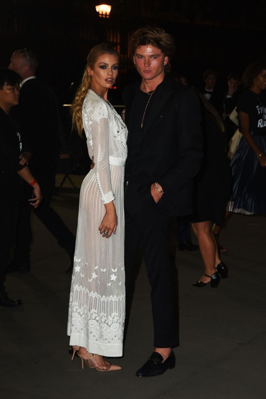 La modelo norirlandesa-neozelandesa Stella Maxwell asiste al evento Fashion For Relief durante la Semana de la Moda de Londres en el Museo Británico en Londres, 14/09/2019. La estrella de The Fappening sufre un desliz de pezón mientras ella y otras celebridades asisten al evento.