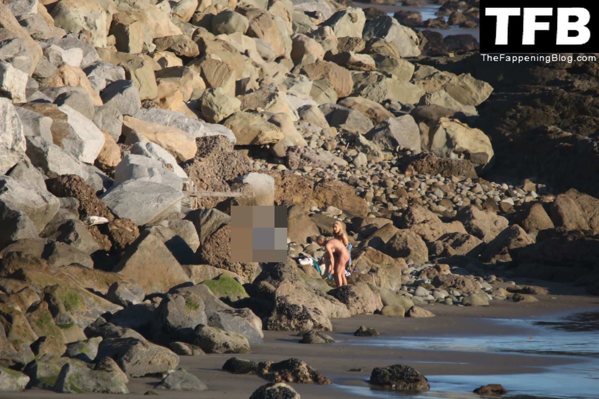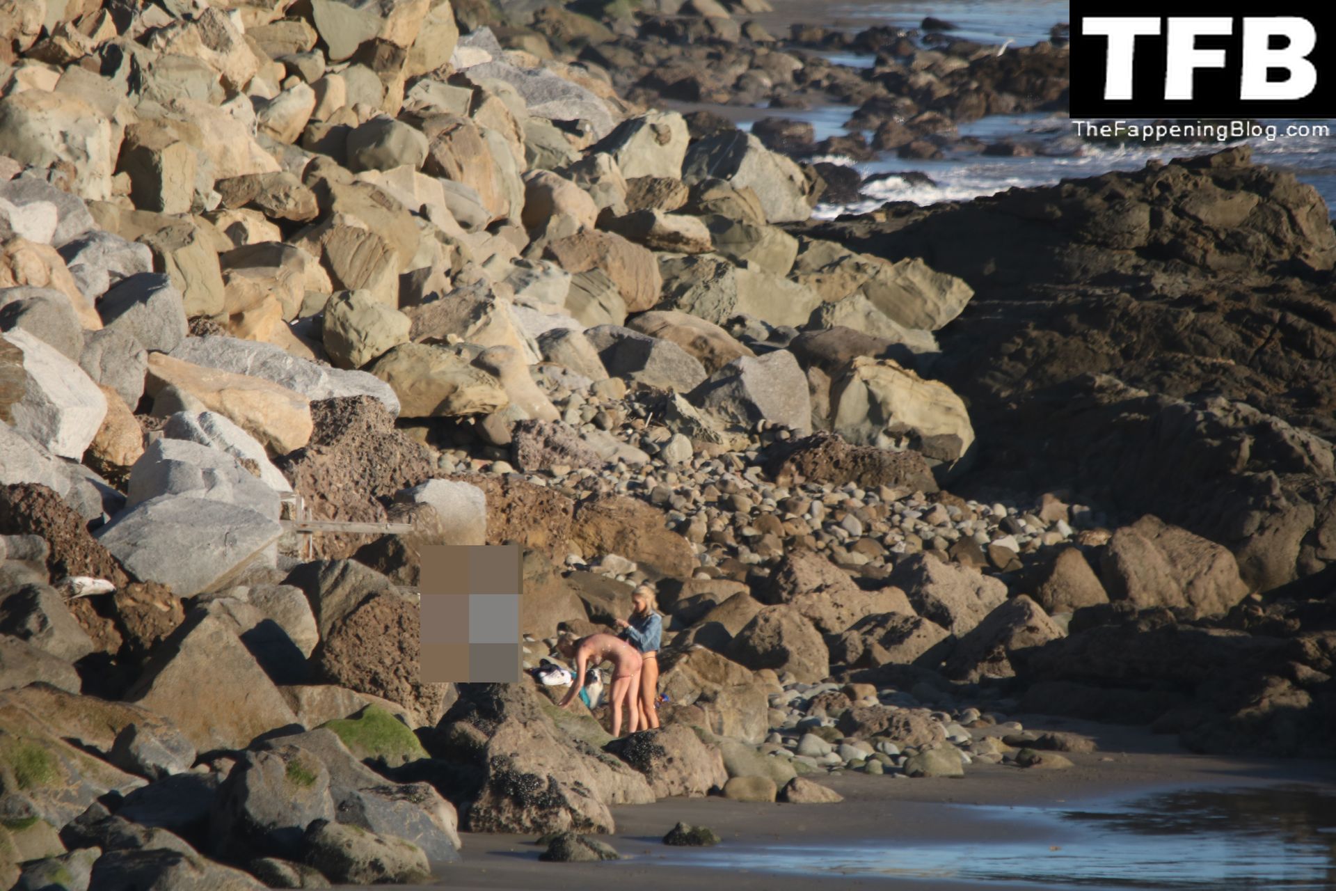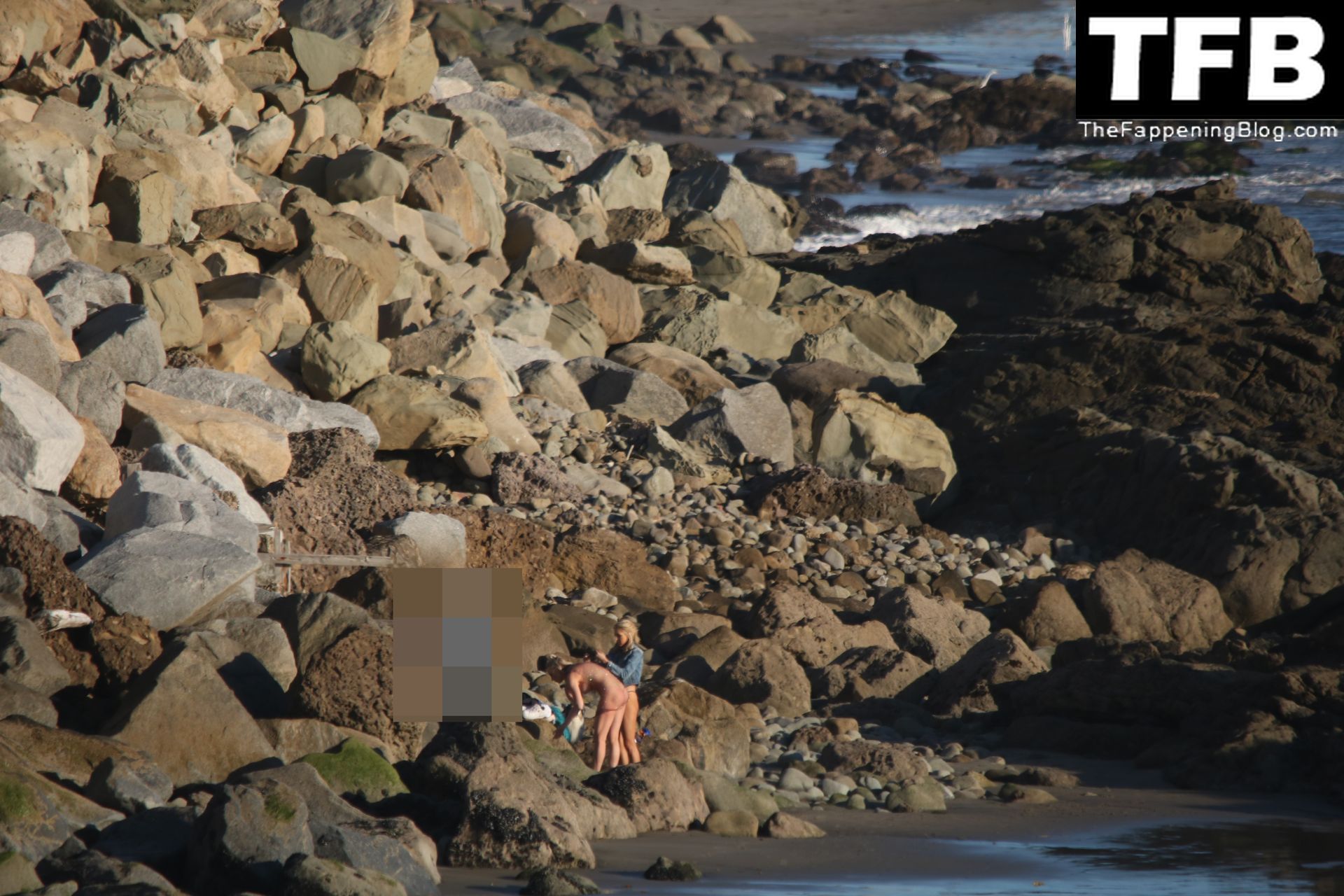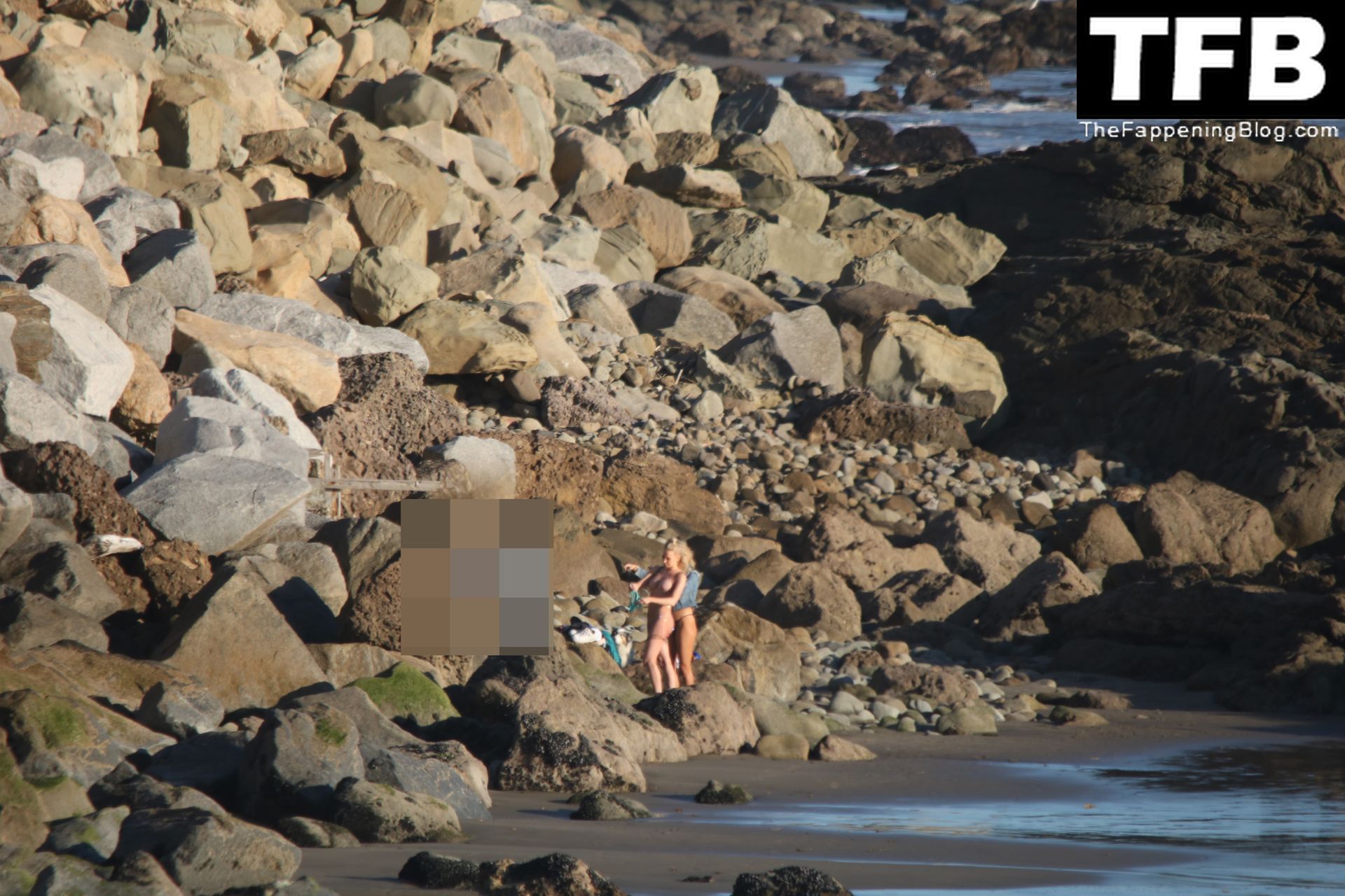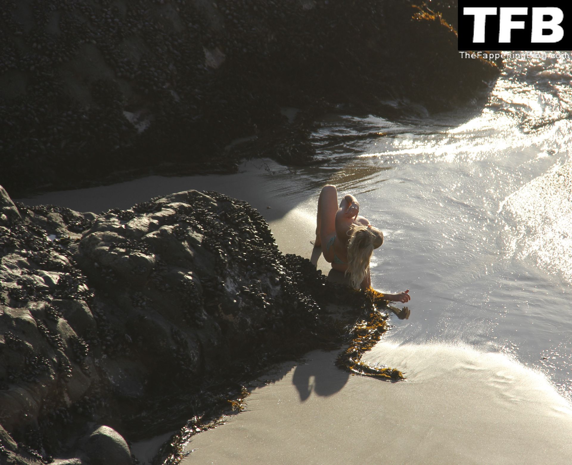 Maxim Australia modelo de portada Stephanie Marie muestra sus tetas desnudas posando sin camiseta en la playa con otras chicas.