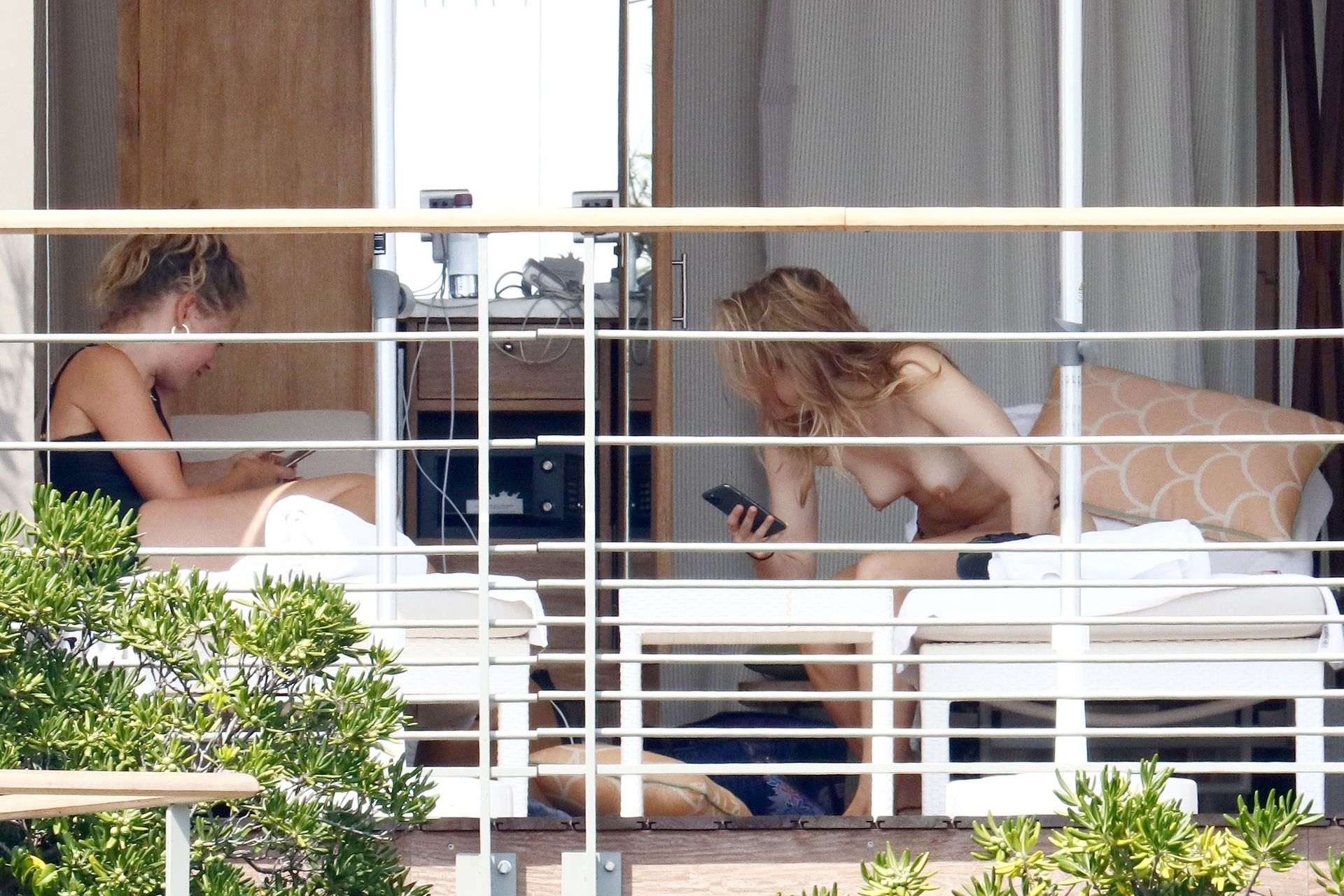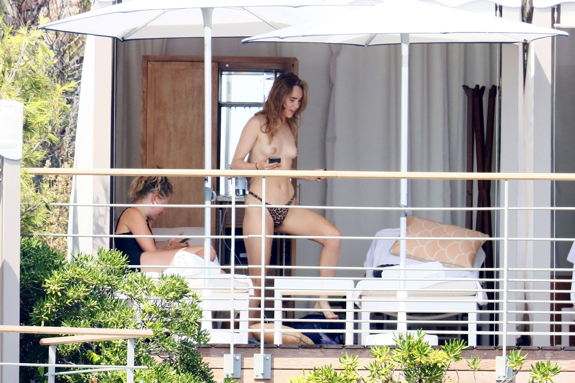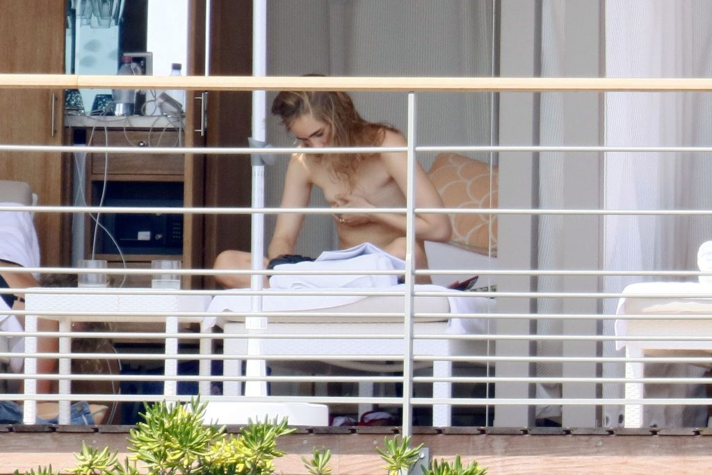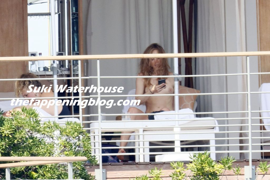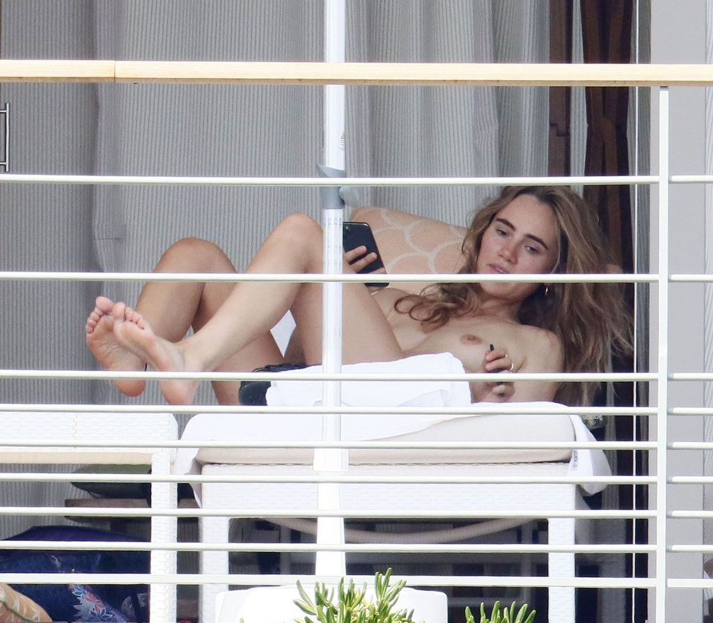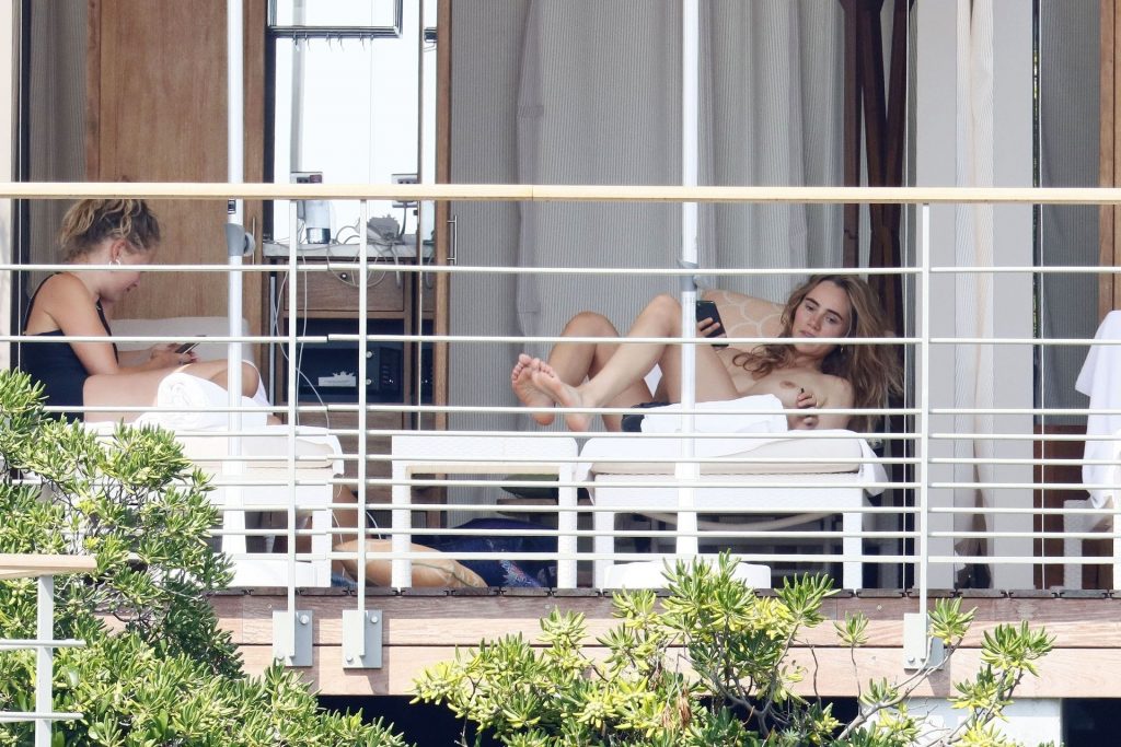 La modelo británica Suki Waterhouse fue fotografiada tomando el sol sin parte superior durante sus vacaciones en el sur de Francia, 31/07/2020.
