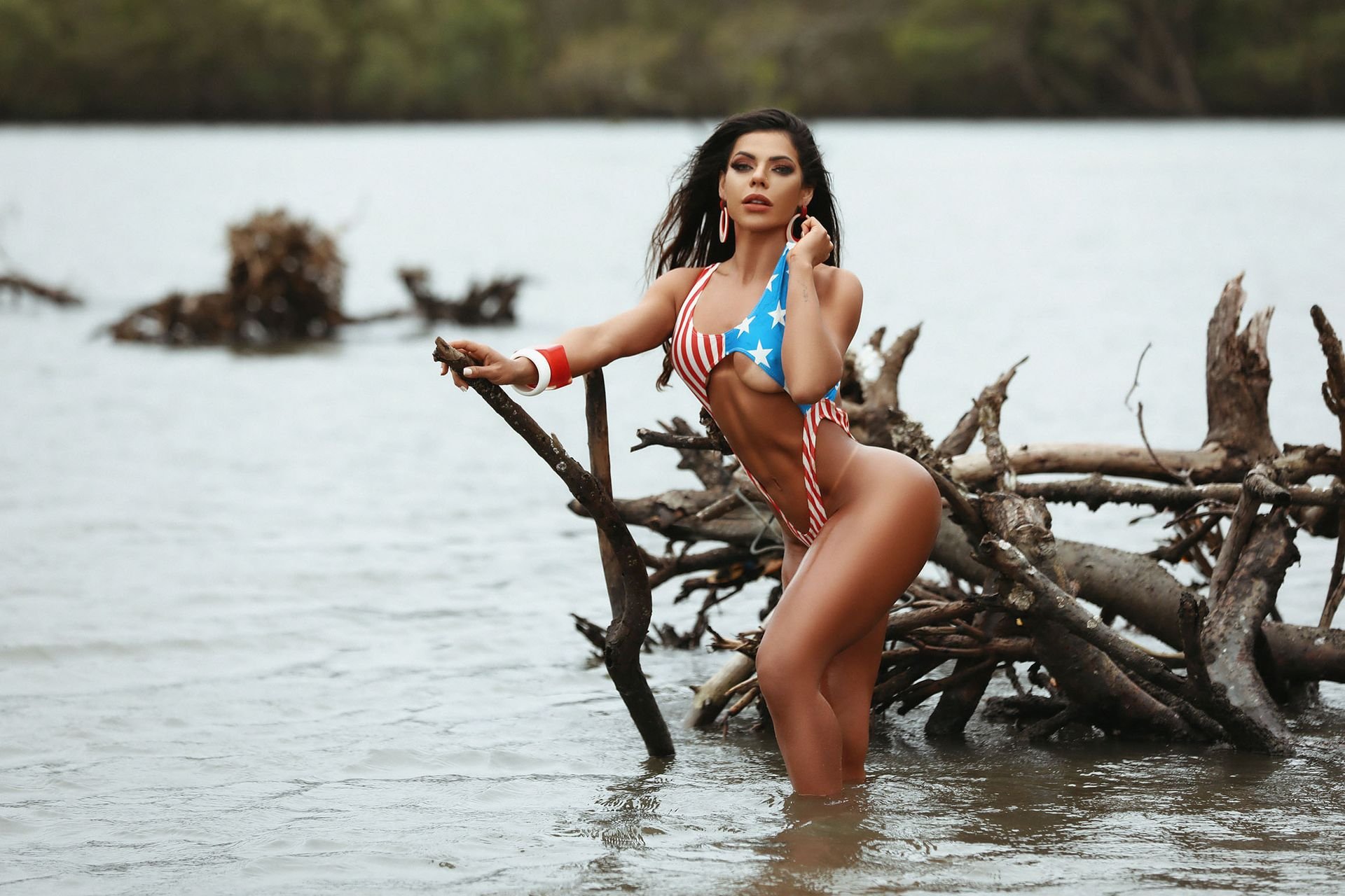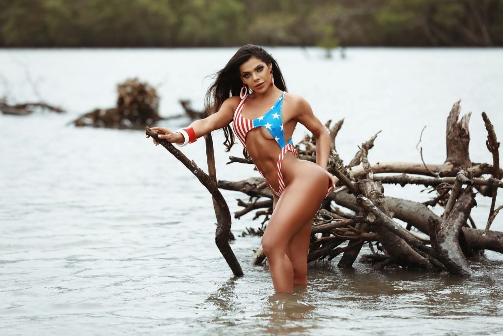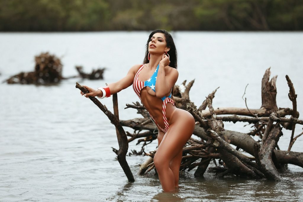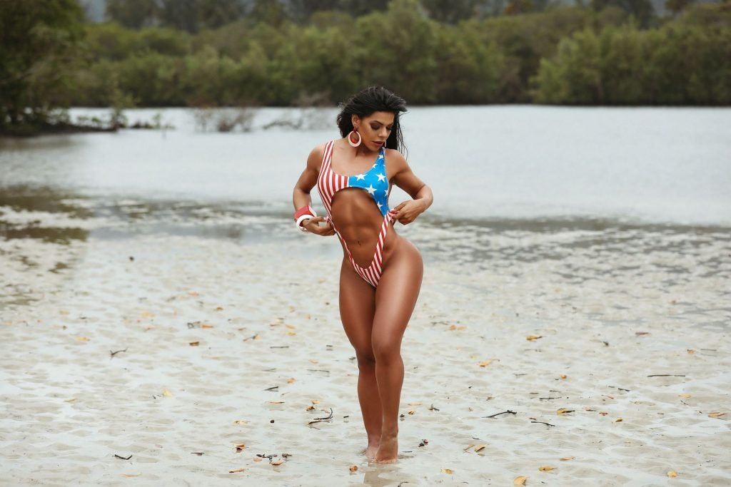 La recién coronada Miss BumBum World Suzy Cortez muestra su amor por los EE.UU. en esta ardiente sesión de fotos en la playa (2019).