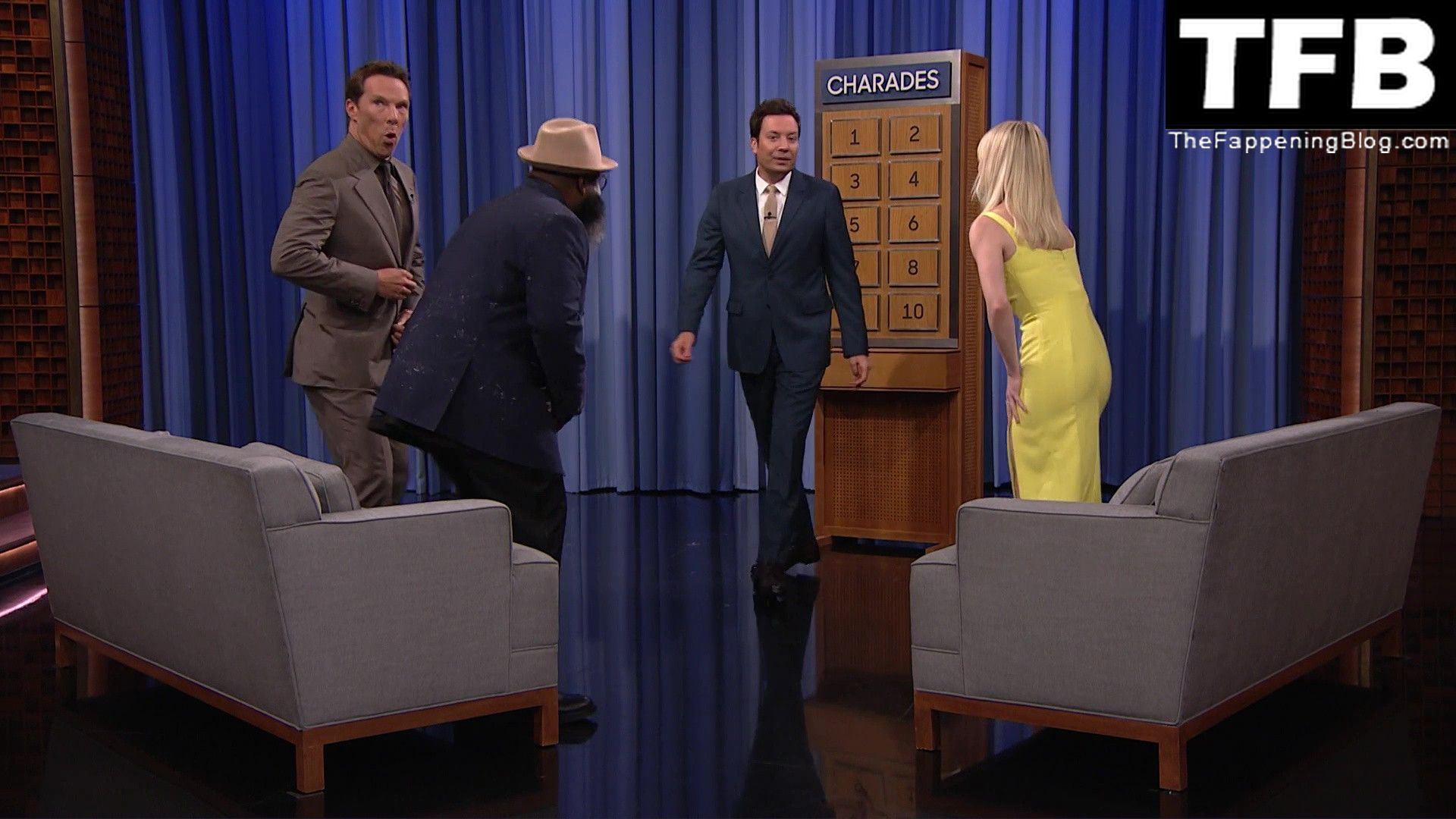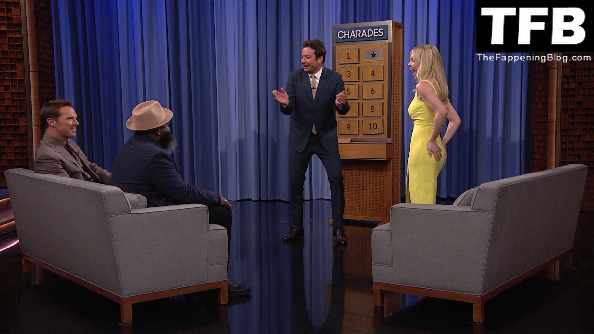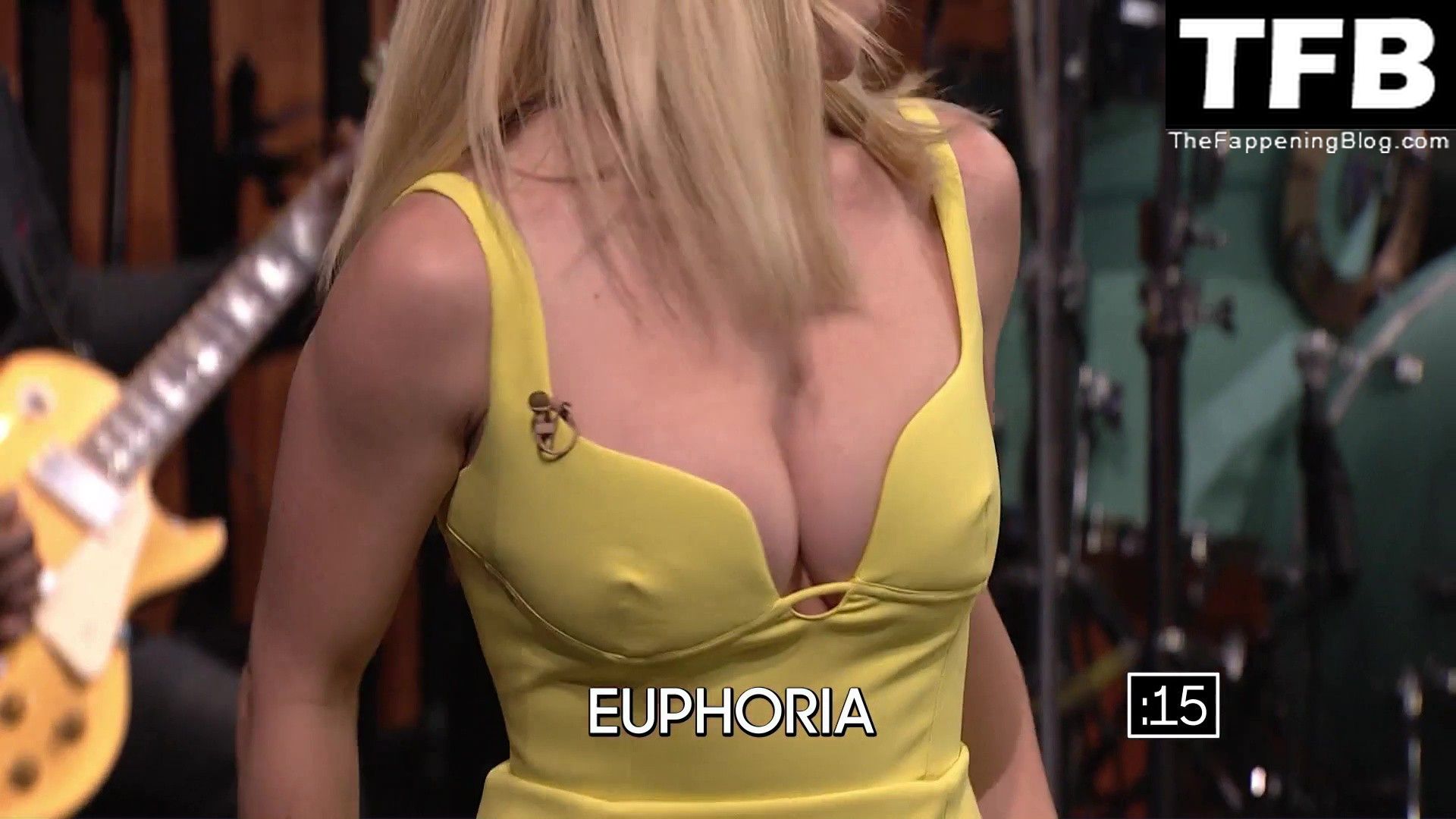 Sydney Sweeney muestra su sexy escote y enseña su pezón en el programa “The Tonight Show with Jimmy Fallon” (mayo 2022).