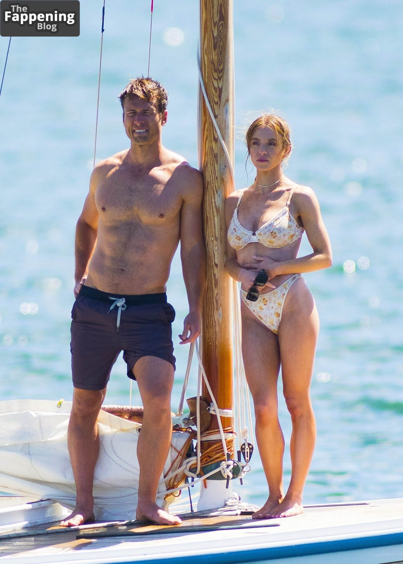Sydney Sweeney y Glen Powell muestran sus físicos en forma mientras filman más escenas en el antiguo yate de madera para la comedia romántica, posiblemente titulada “Anyone But You”, dirigida por Will Gluck, 03/09/2023.