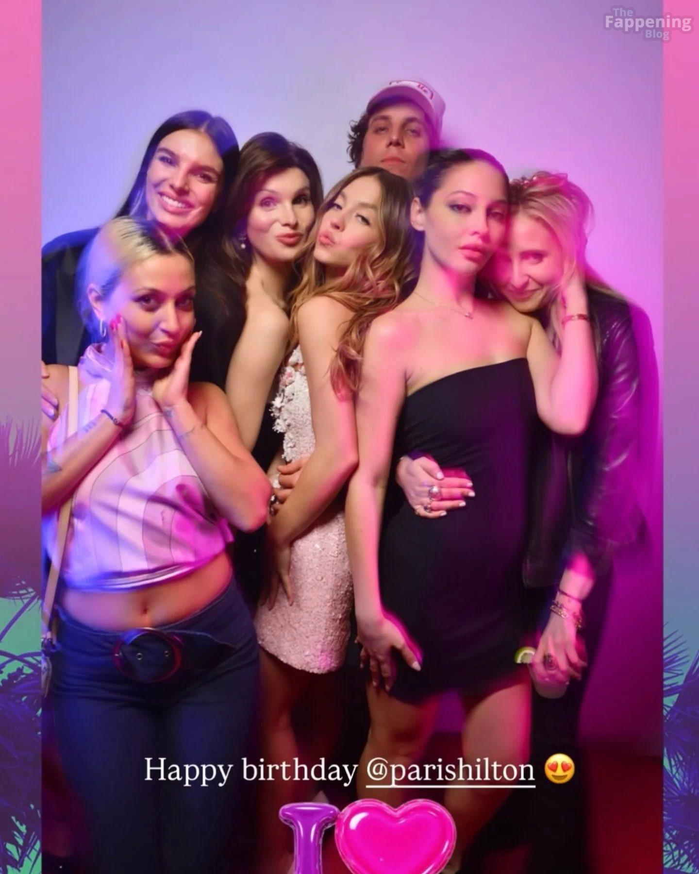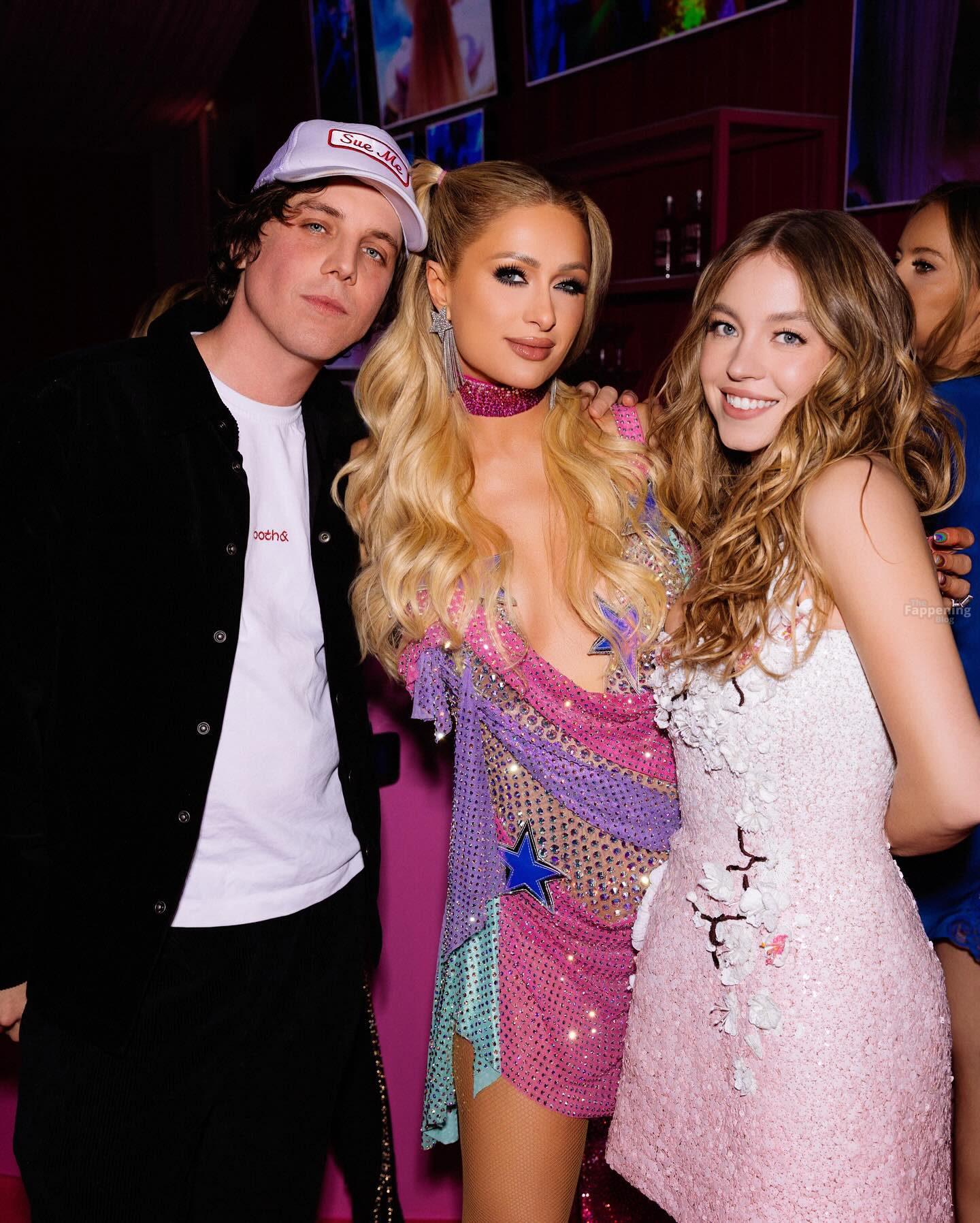 La estrella de The Fappening, Sydney Sweeney, lució espectacular en la fiesta de Paris Hilton, mostrando su increíble figura con un diminuto vestido rosa que resaltaba su escote y sus piernas tonificadas.