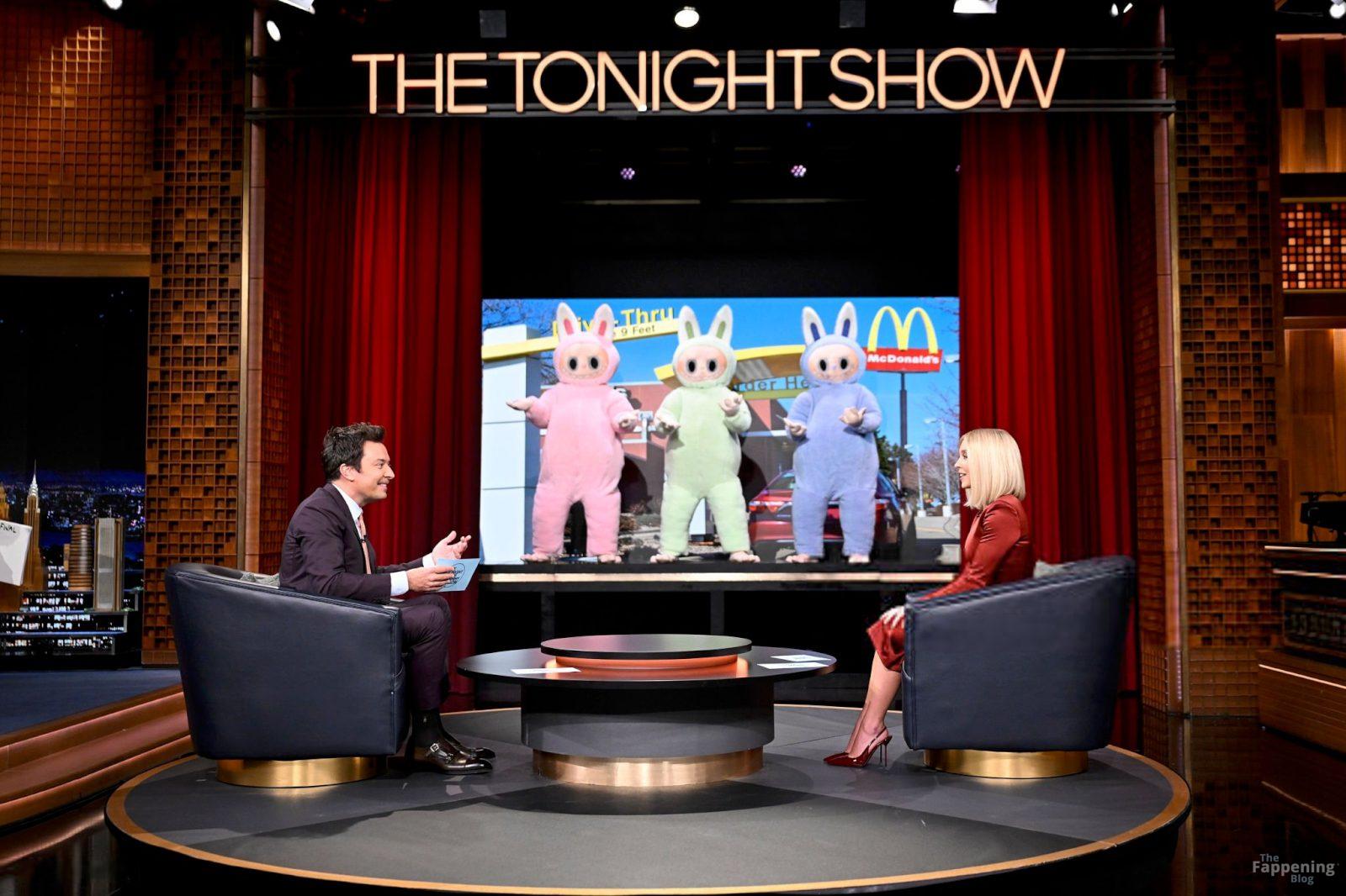 La estrella de The Fappening, Sydney Sweeney, muestra su figura sexy con un vestido rojo ajustado en The Tonight Show.