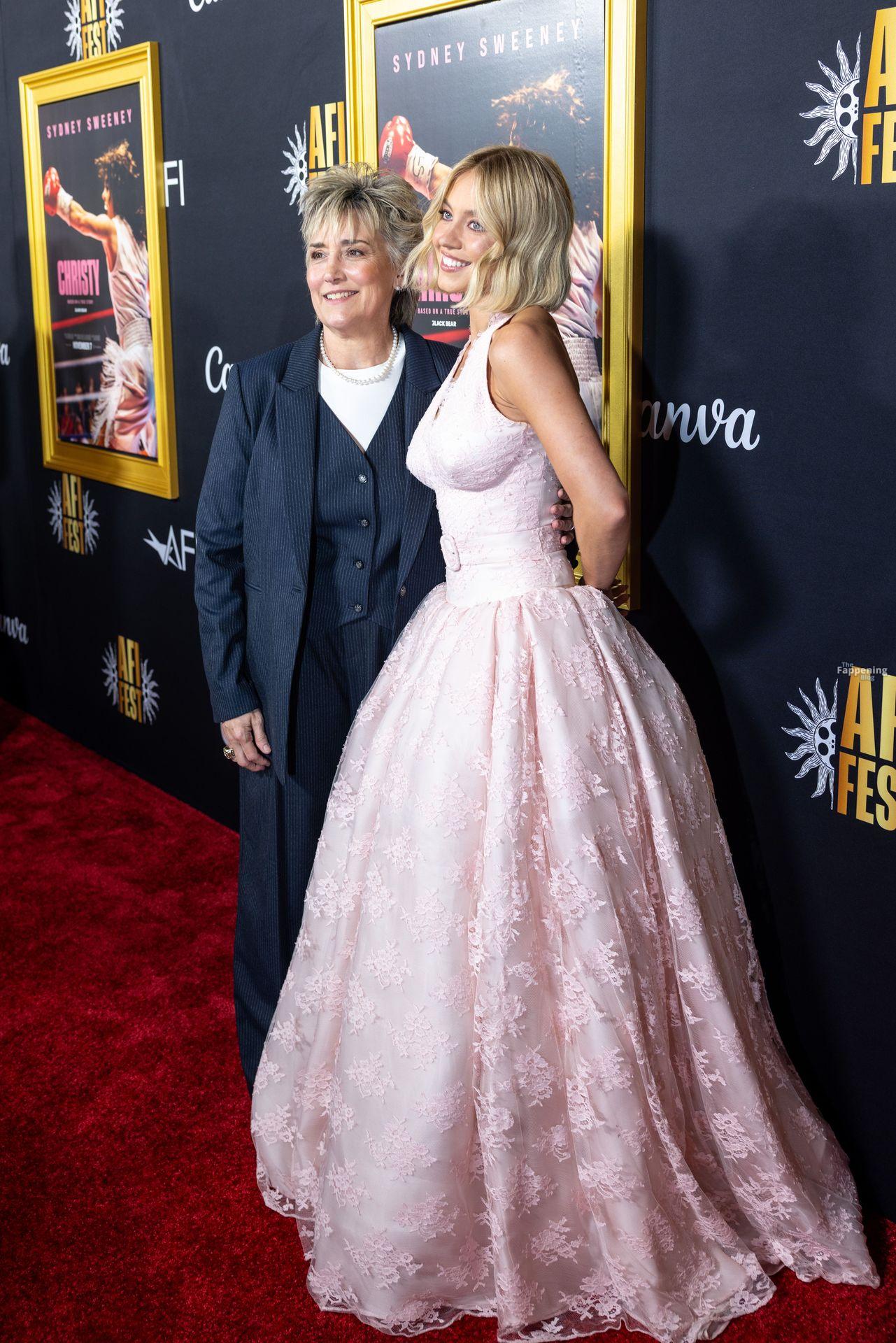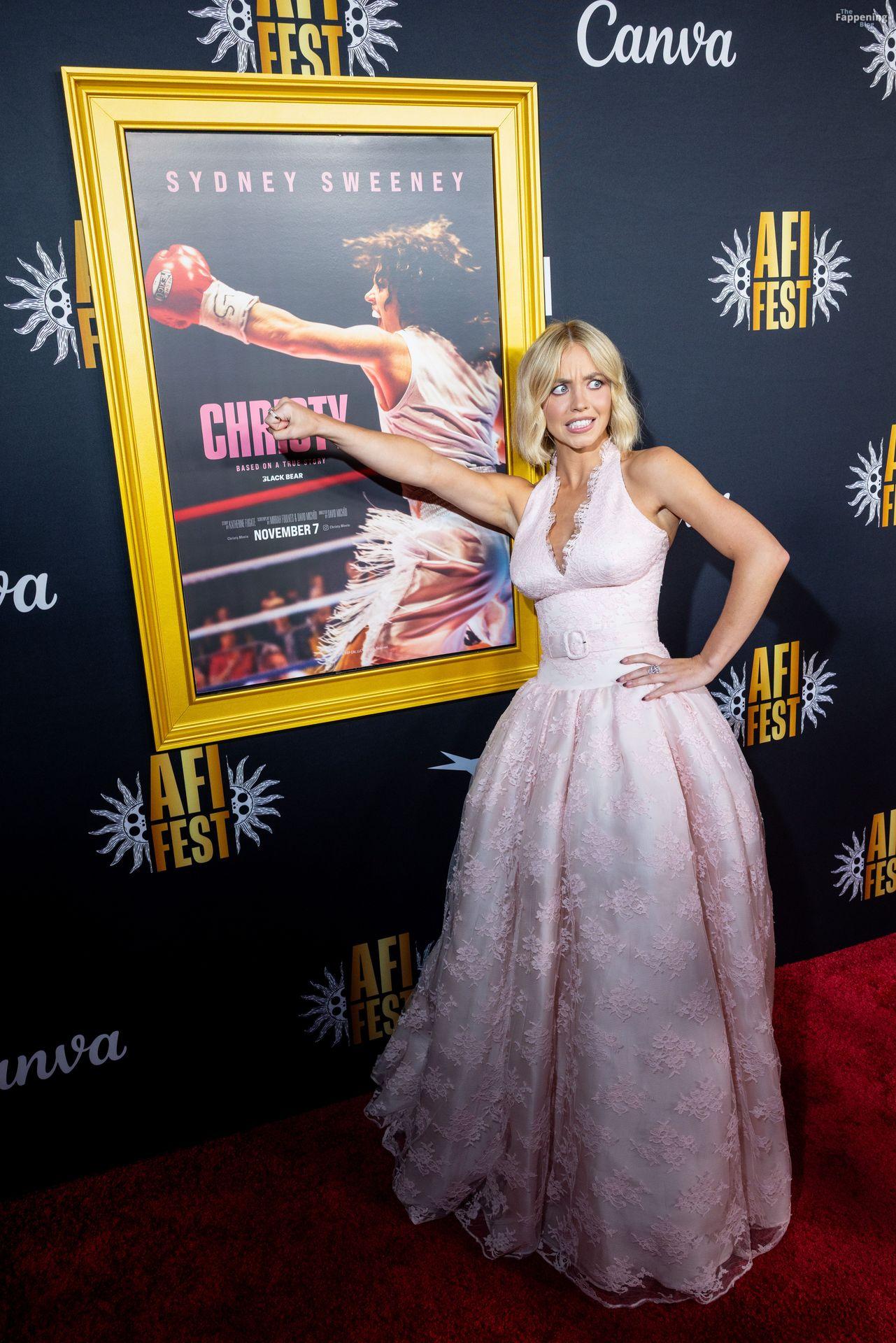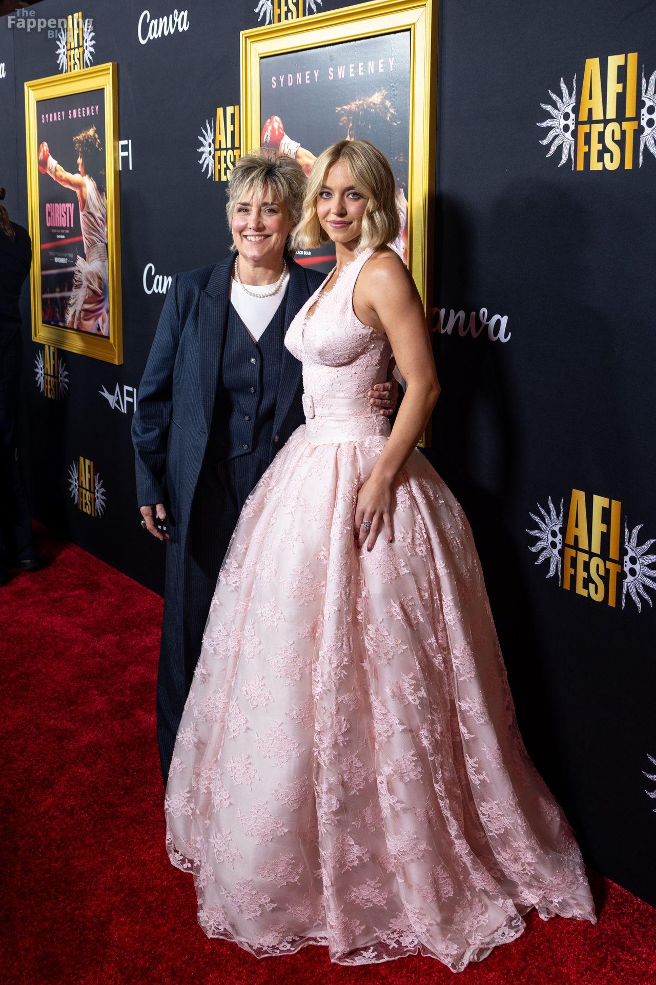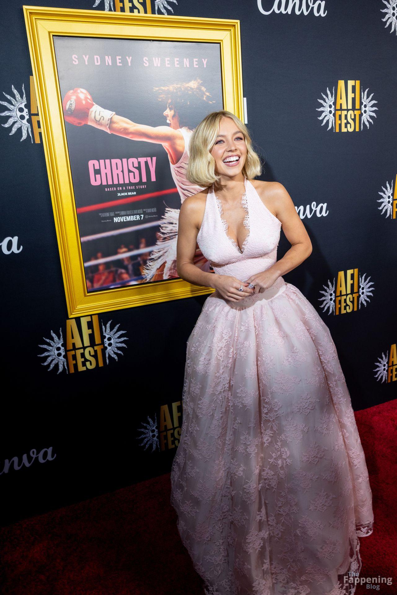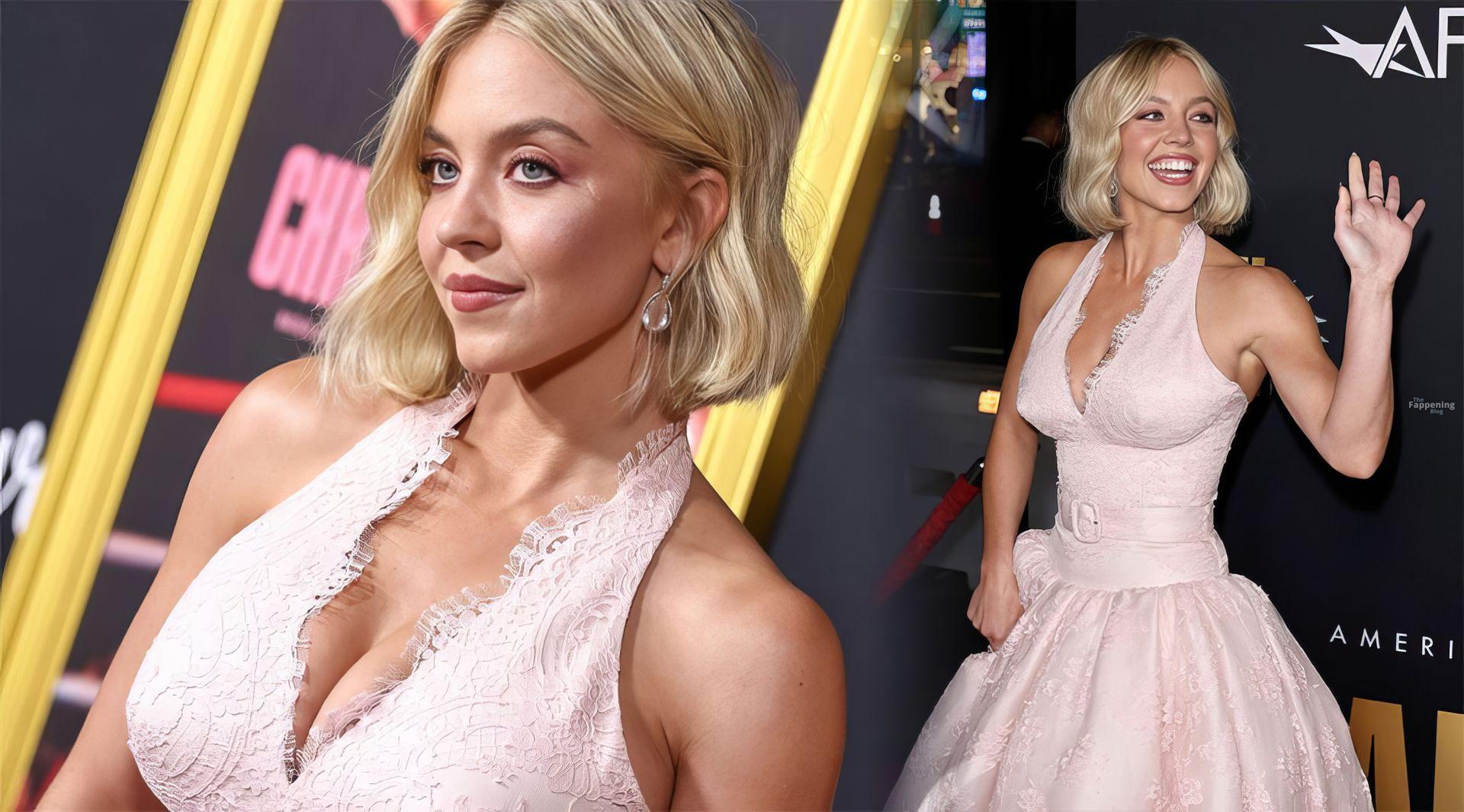 La actriz y productora estadounidense Sydney Sweeney estuvo en el estreno de “Christy” durante el AFI FEST. Lució un vestido de encaje rosa que mostraba sus grandes pechos.