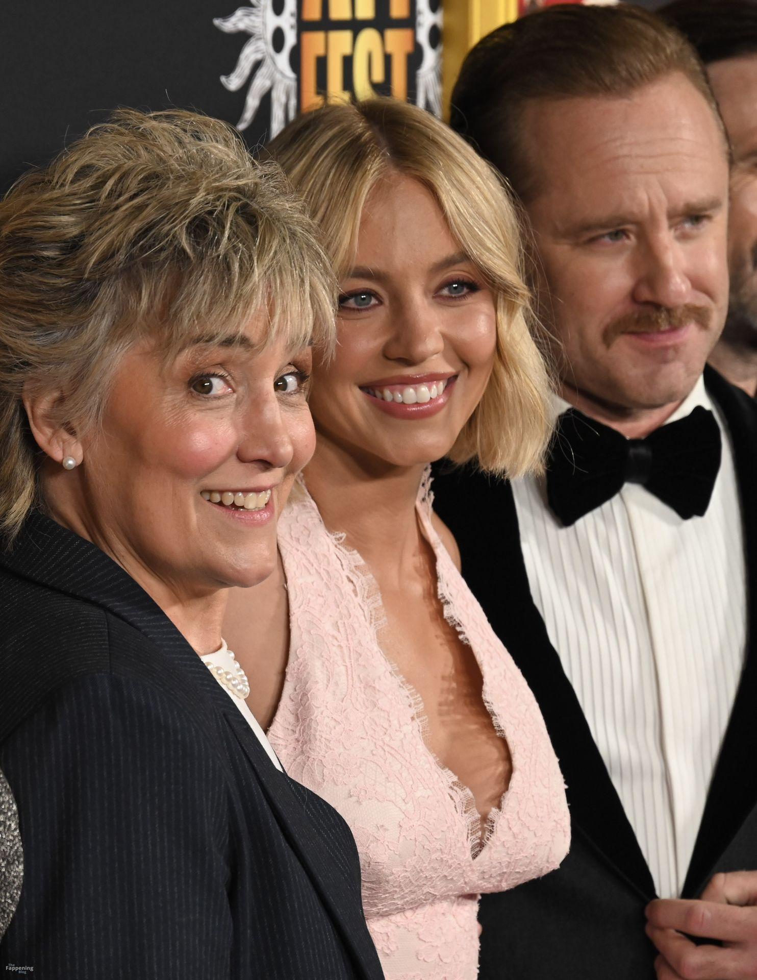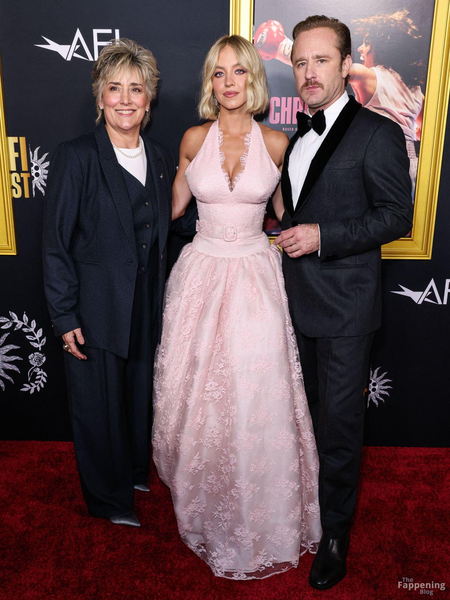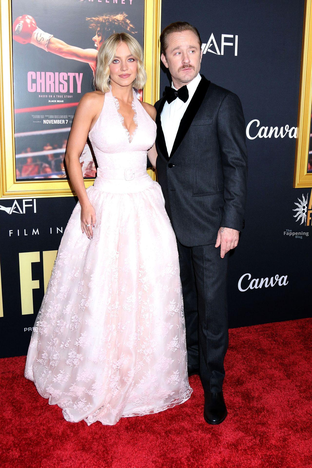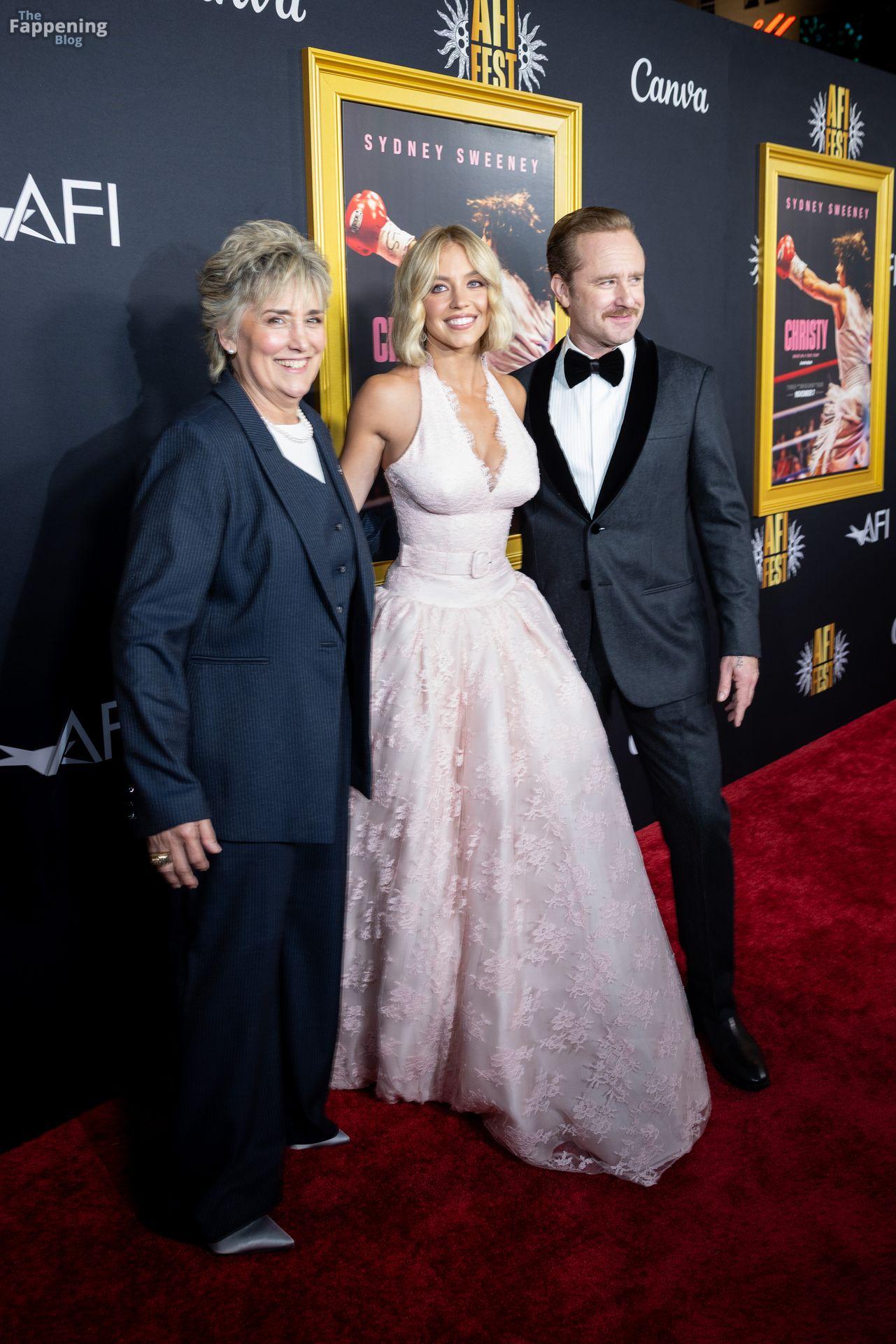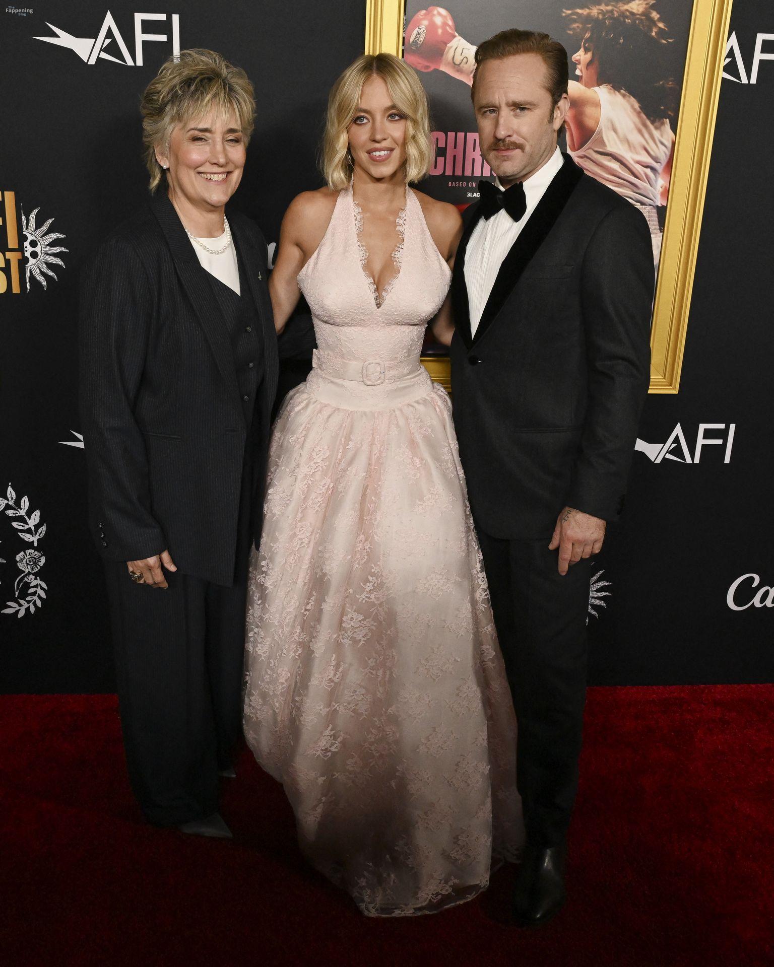 La actriz y productora estadounidense Sydney Sweeney estuvo en el estreno de “Christy” durante el AFI FEST. Lució un vestido de encaje rosa que mostraba sus grandes pechos.