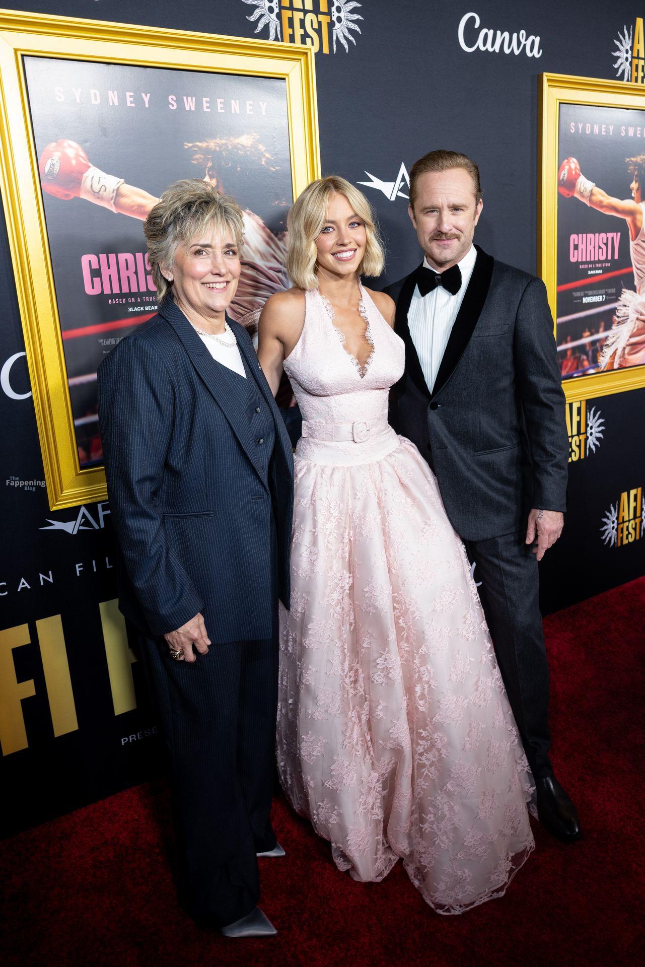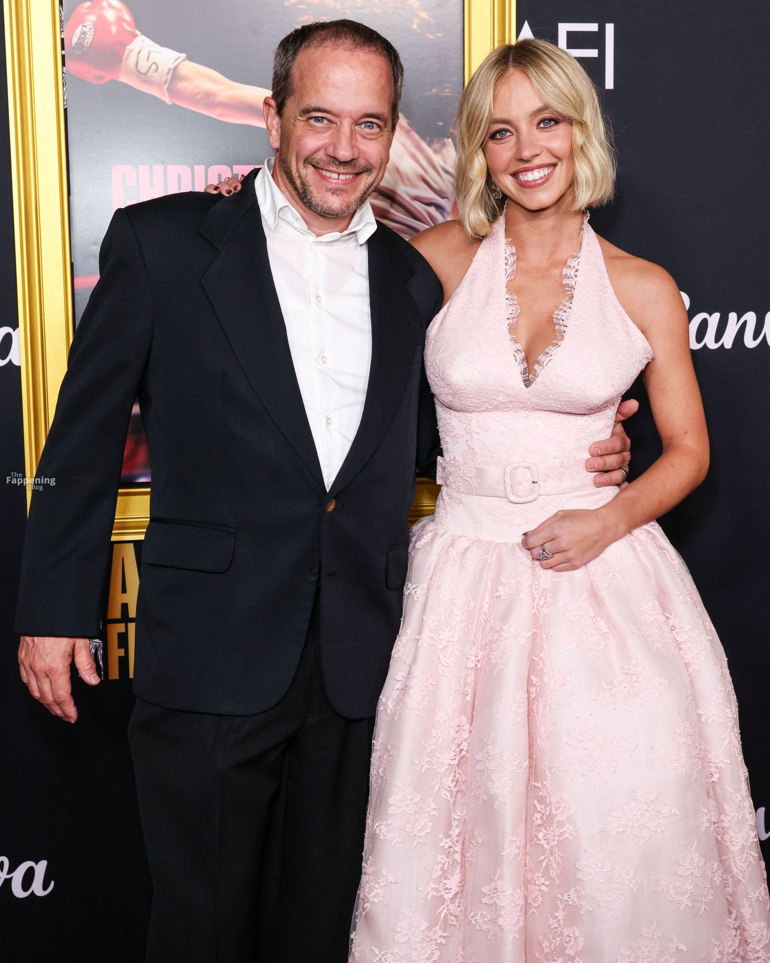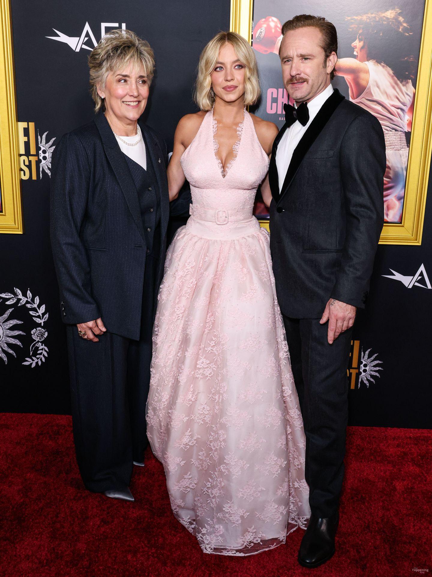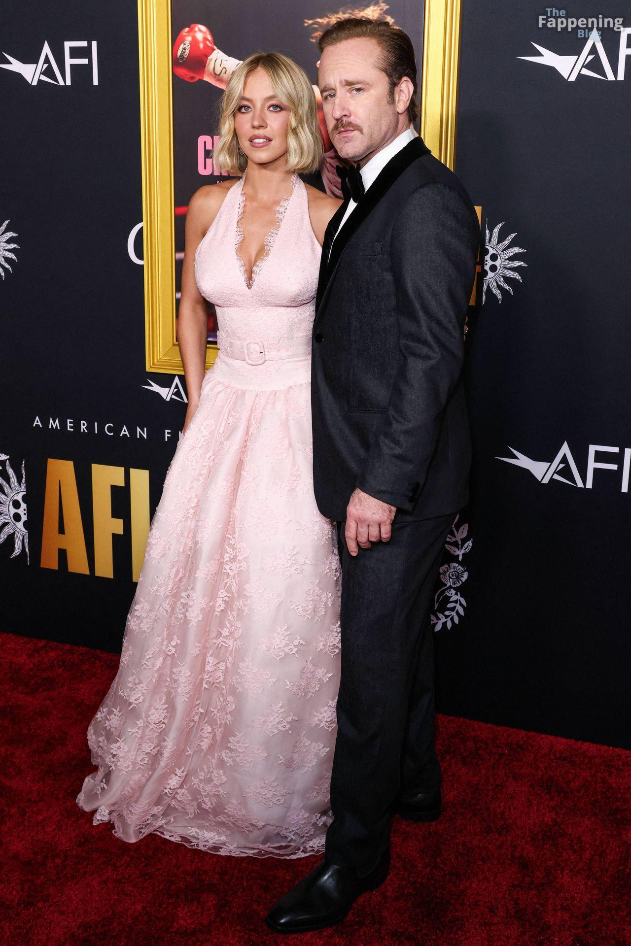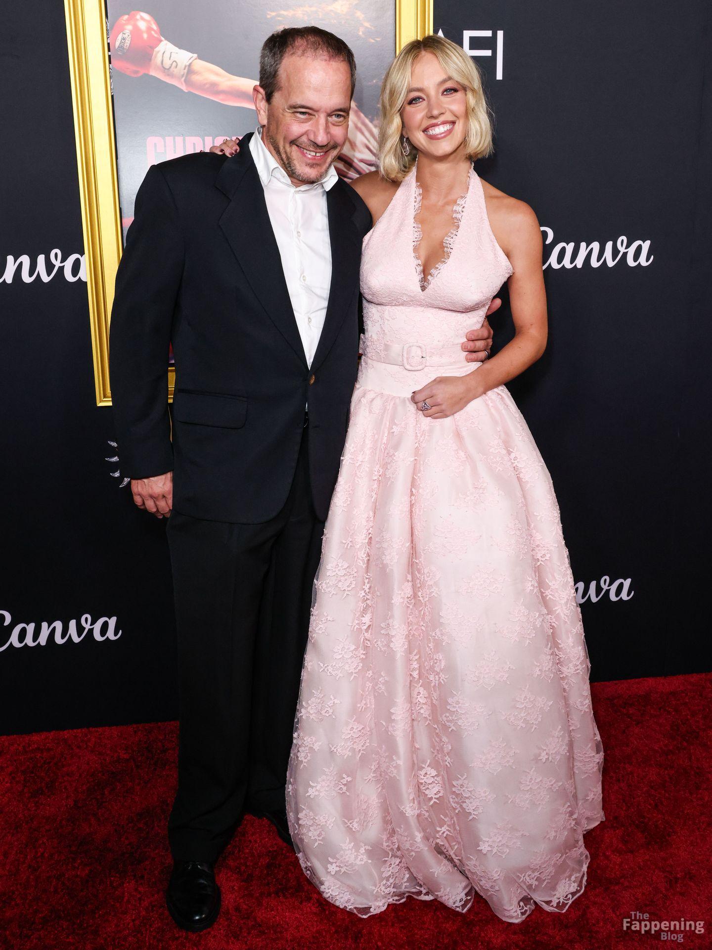 La actriz y productora estadounidense Sydney Sweeney estuvo en el estreno de “Christy” durante el AFI FEST. Lució un vestido de encaje rosa que mostraba sus grandes pechos.