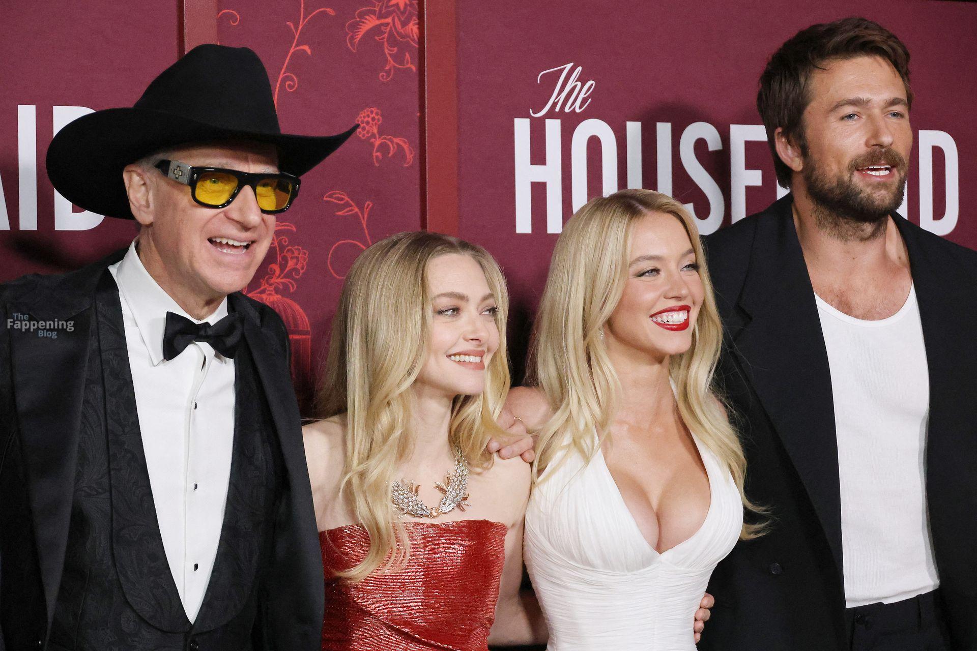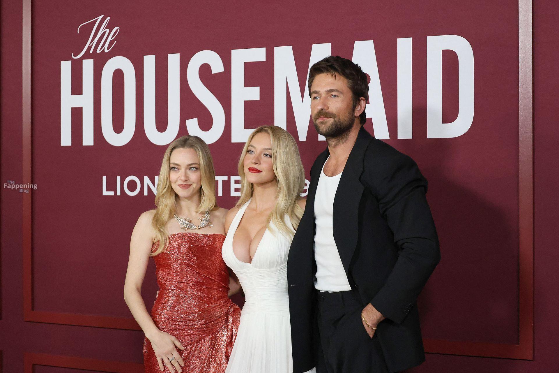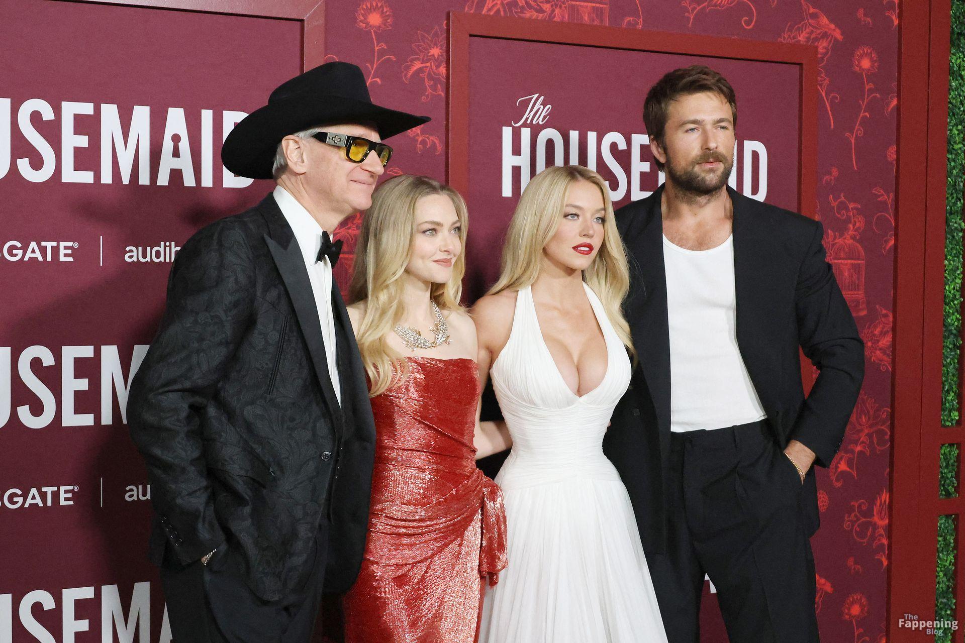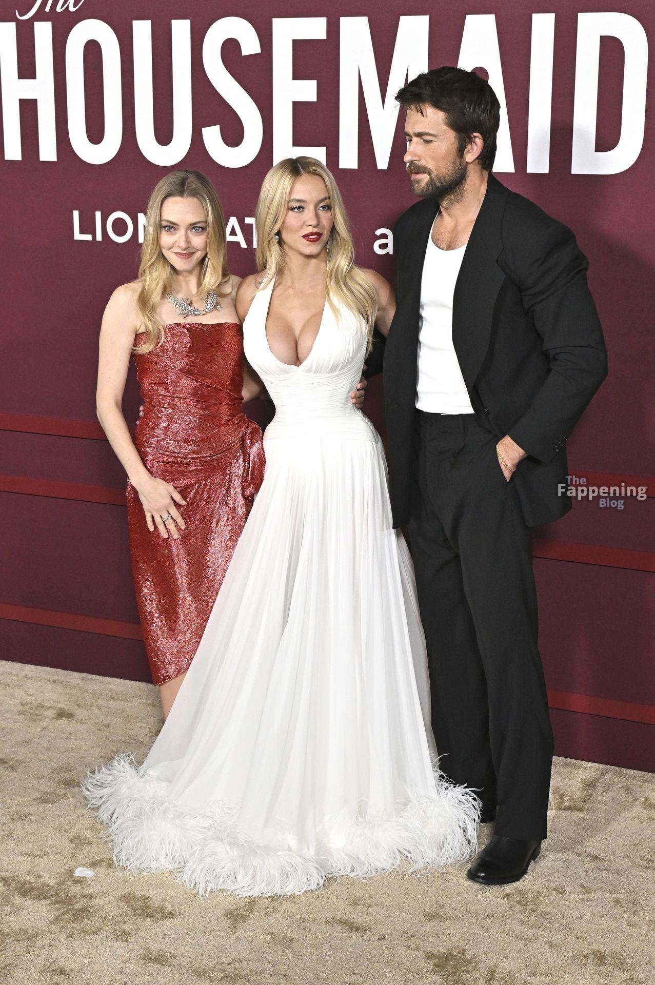 Mira los enormes pechos de Sydney Sweeney en el estreno de “The Housemaid”. Posó en la alfombra roja, vistiendo un vestido blanco.