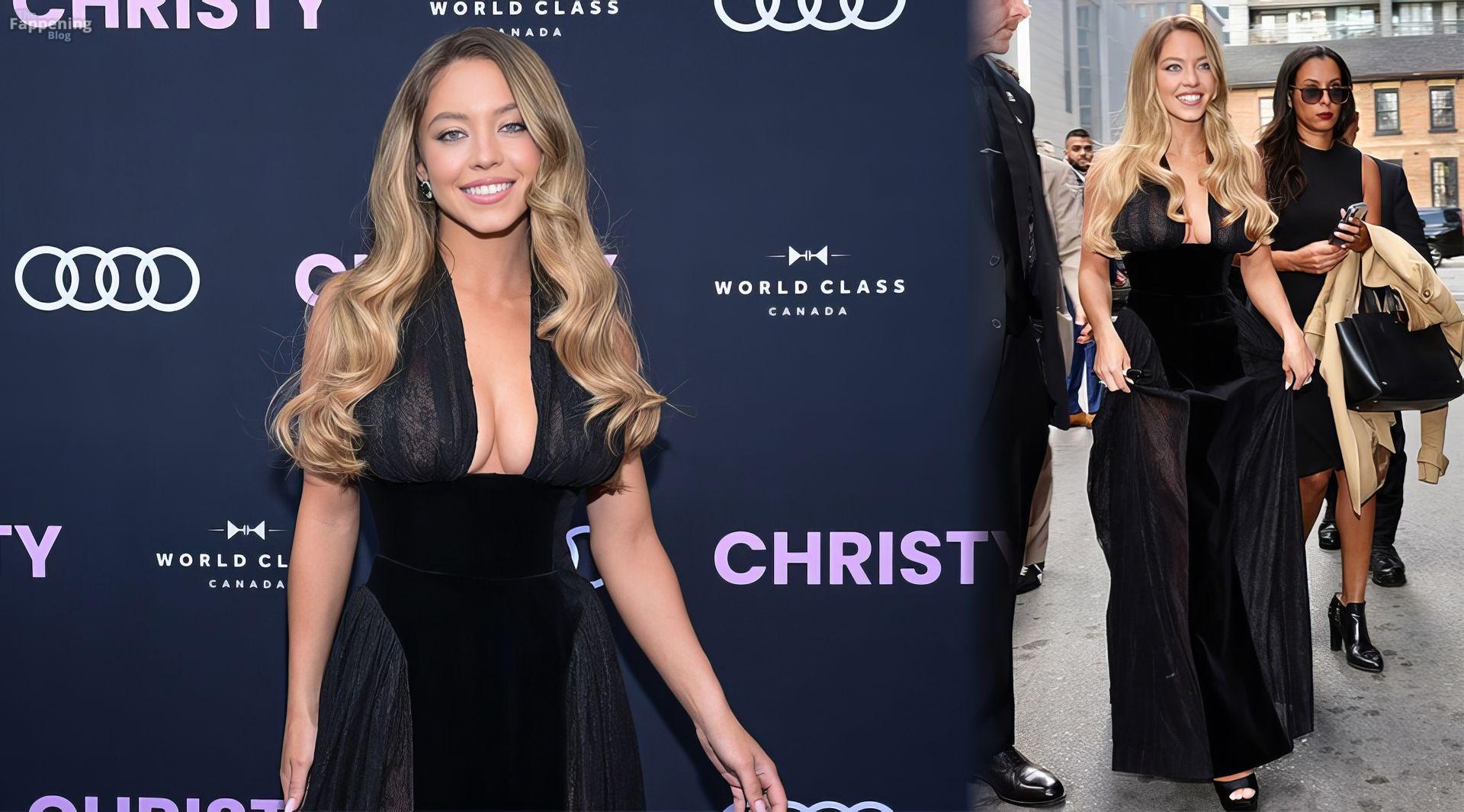 La actriz Sydney Sweeney estaba toda sonrisas llegando a la fiesta posterior de Christy en el Festival Internacional de Cine de Toronto 2025. La estrella voluptuosa de The Fappening casi se le sale el vestido negro de escote profundo en el evento de TIFF.