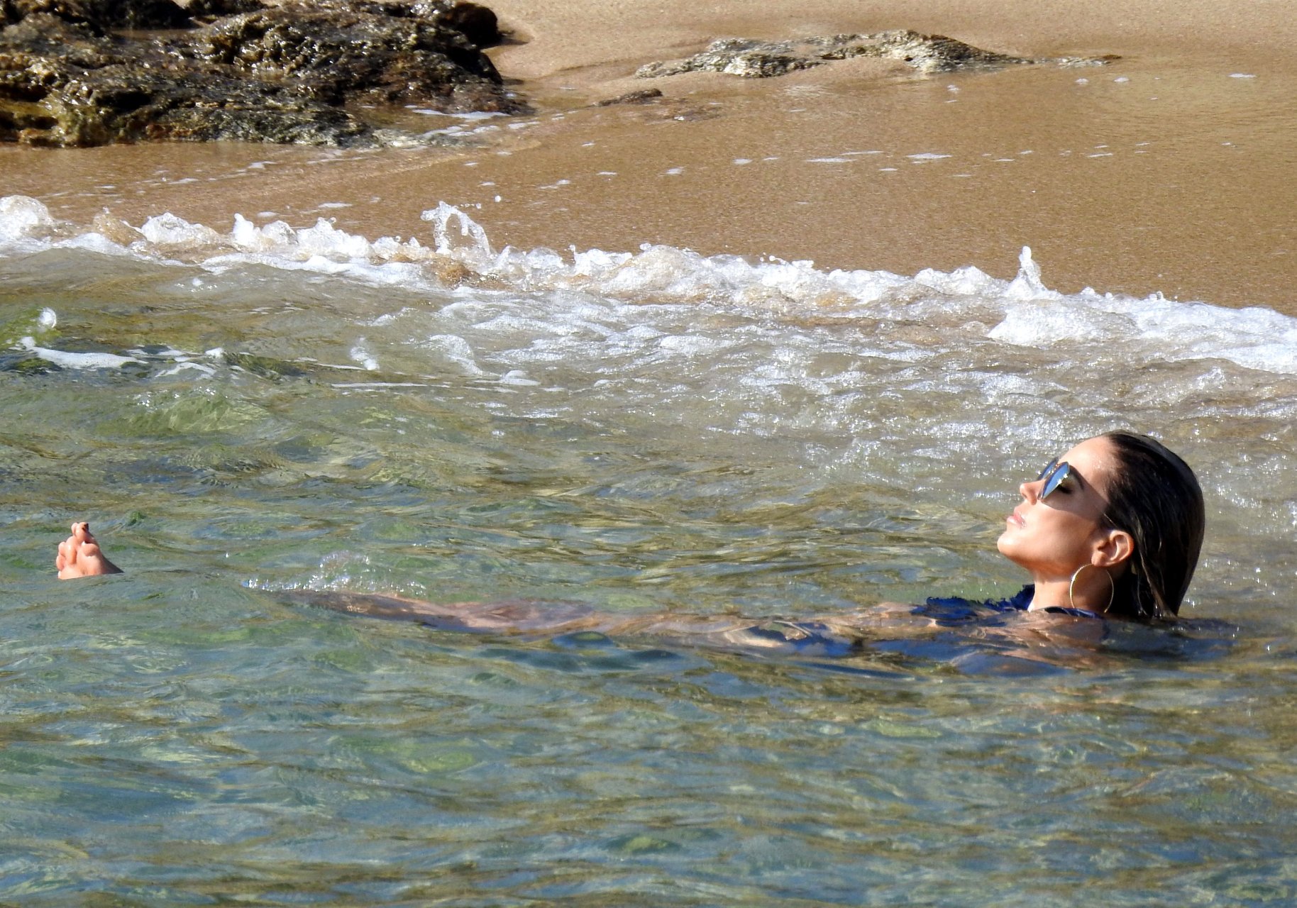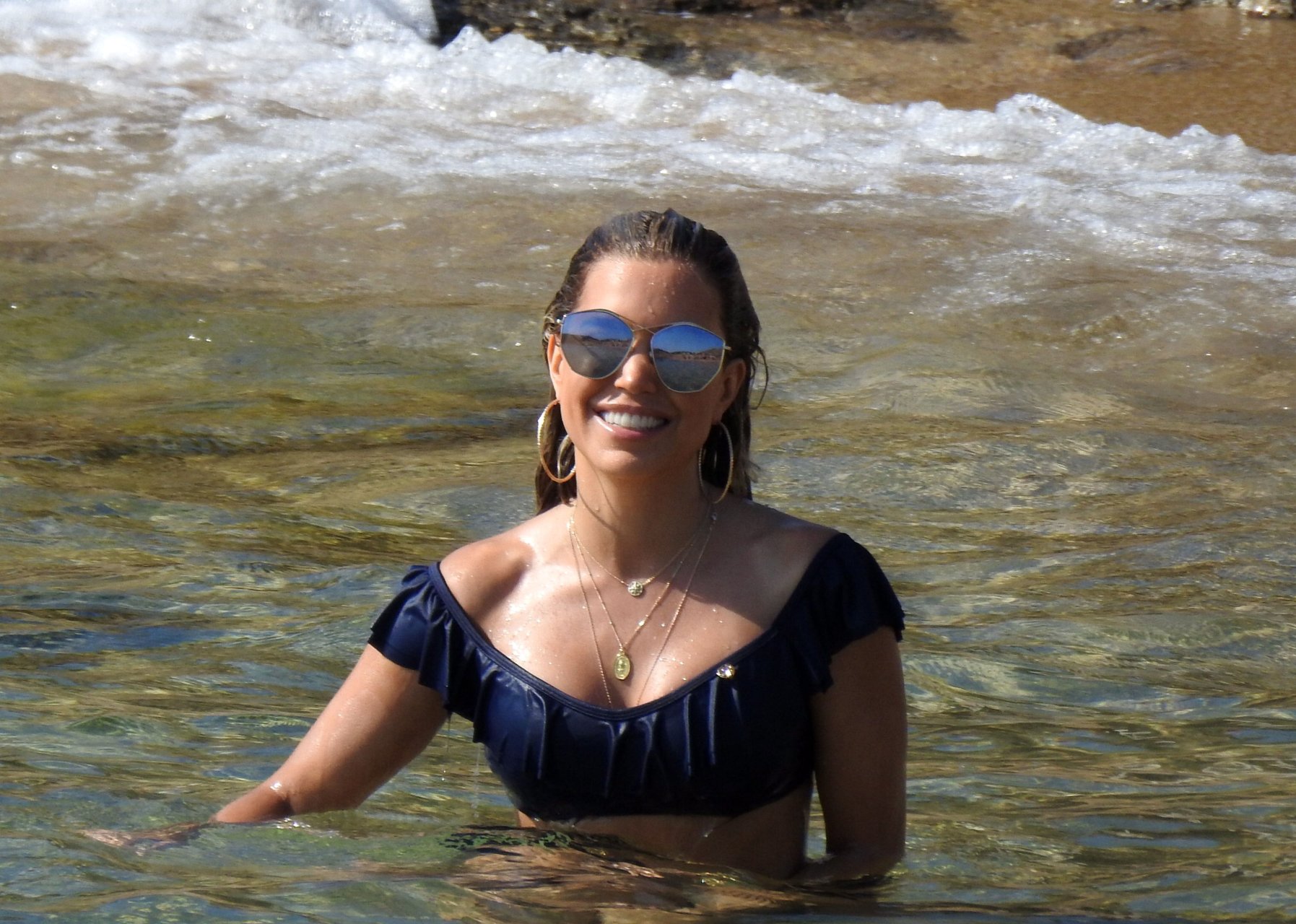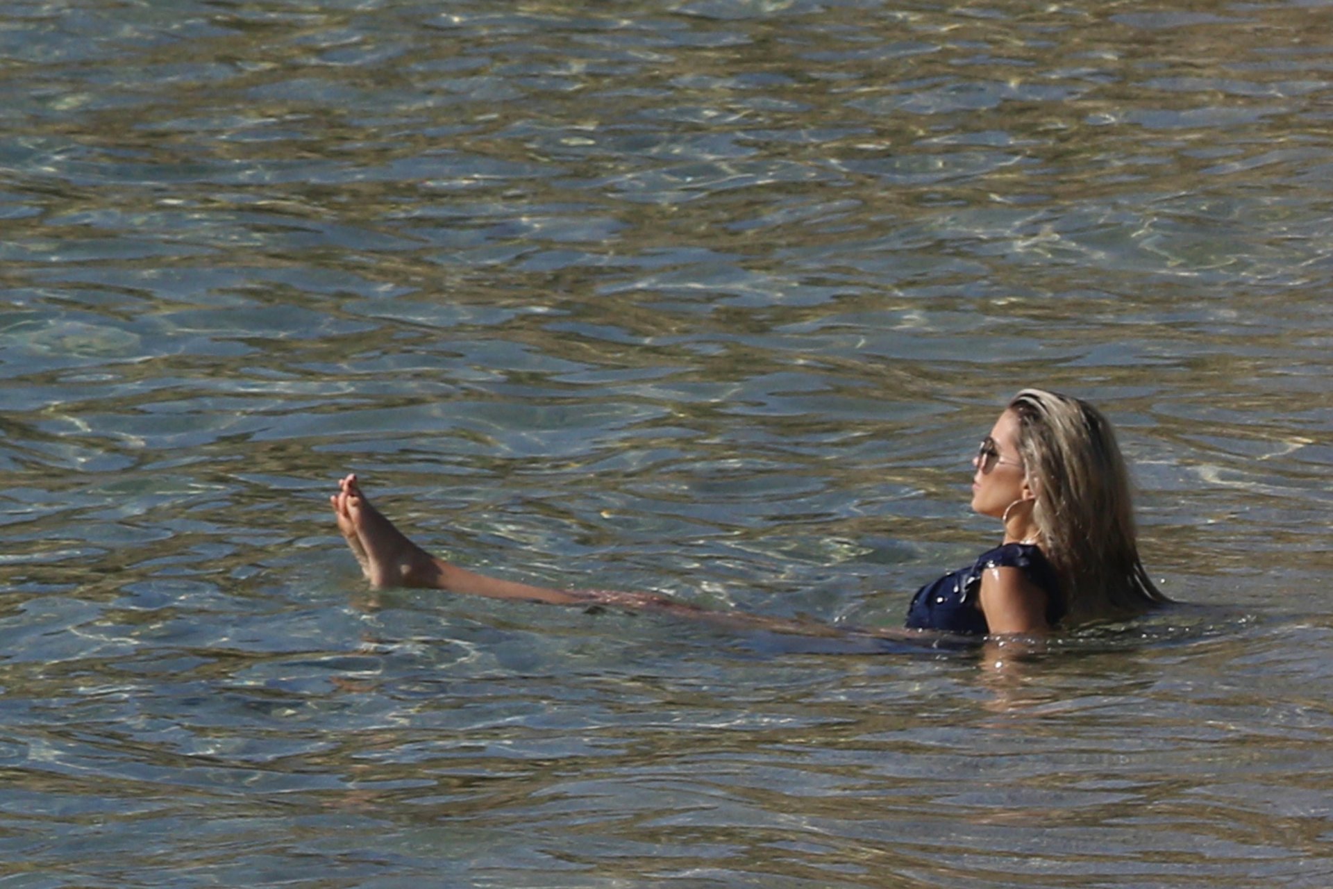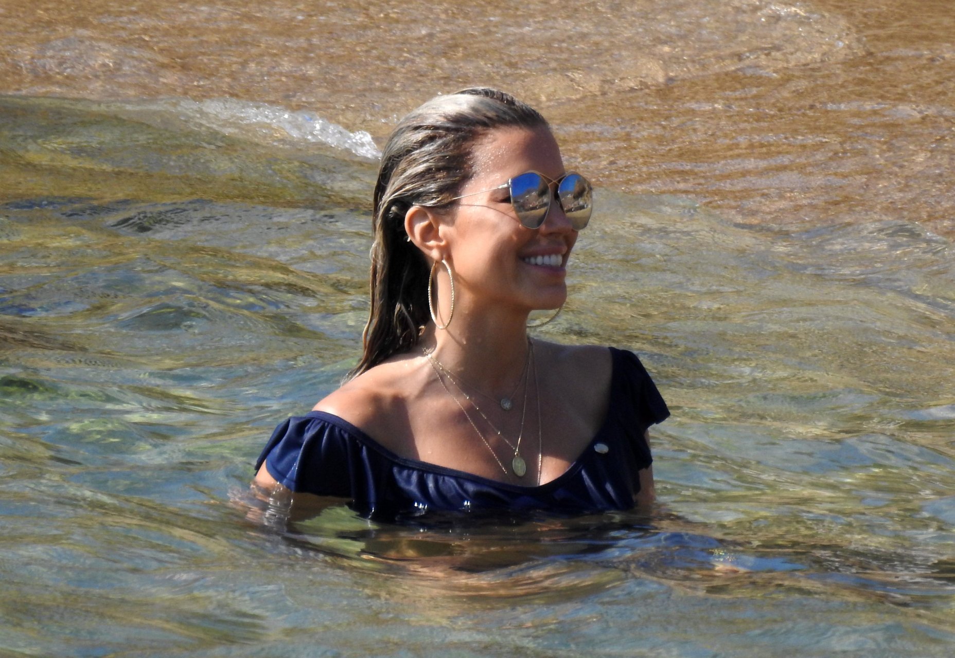 Sylvie Meis fue vista en bikini en la playa de la isla de Mykonos, Grecia, el 07/08/2018. La modelo, actriz, presentadora de televisión holandesa de 40 años y exesposa del futbolista Raphael van der Vaart, Sylvia Mace mostró su cuerpo espectacular para los paparazzi.