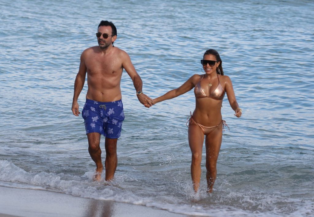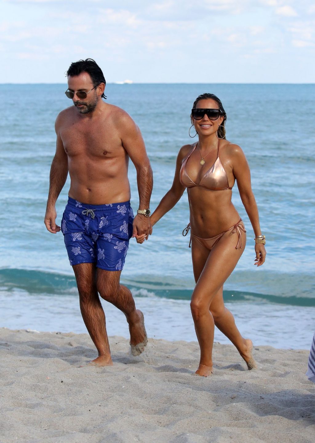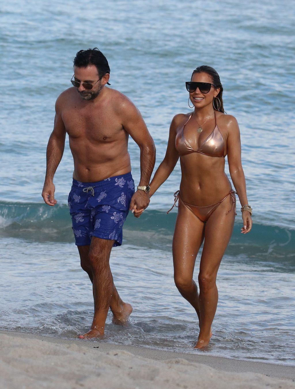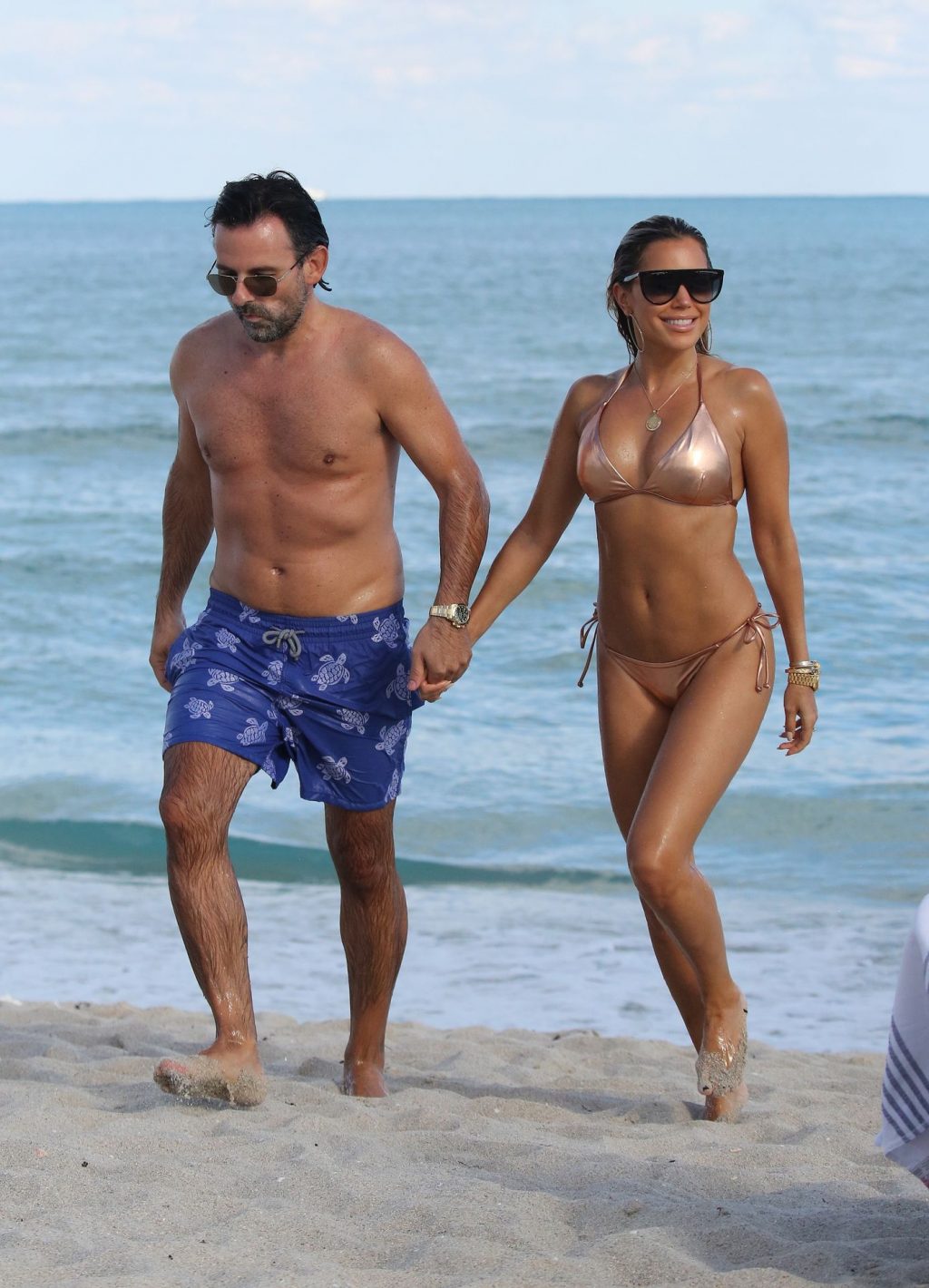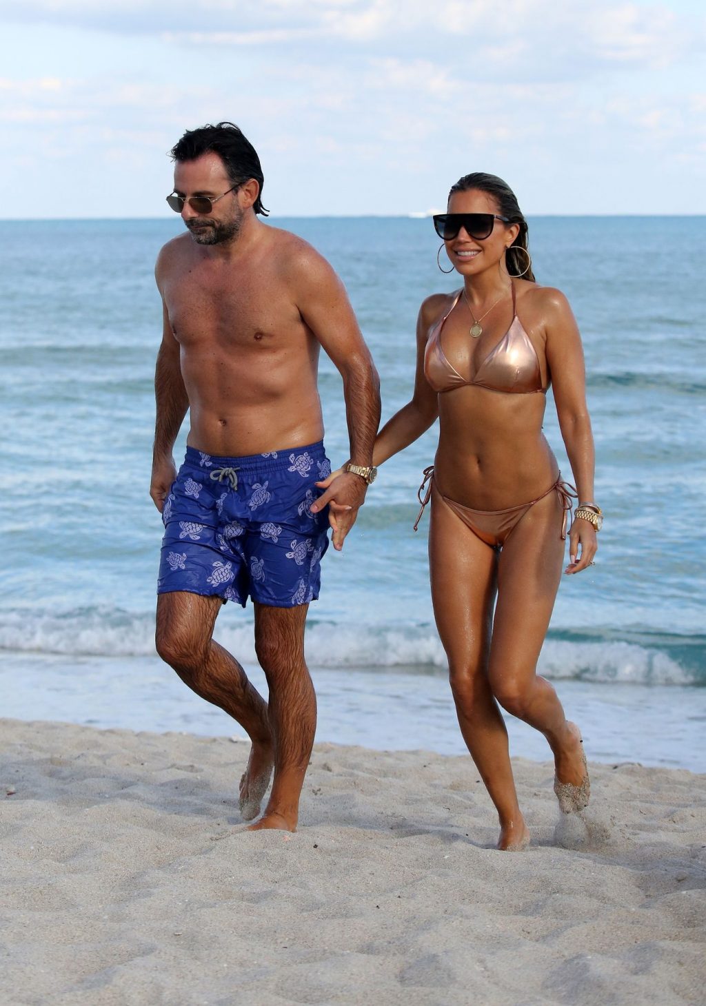 Van der Vaart, la exesposa supermodelo Sylvie Meis, muestra sus curvas con un bikini durazno durante un día en la playa con su prometido Niclas Castello en Miami Beach, 12/04/2019.
