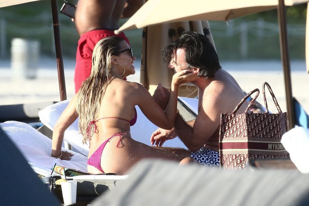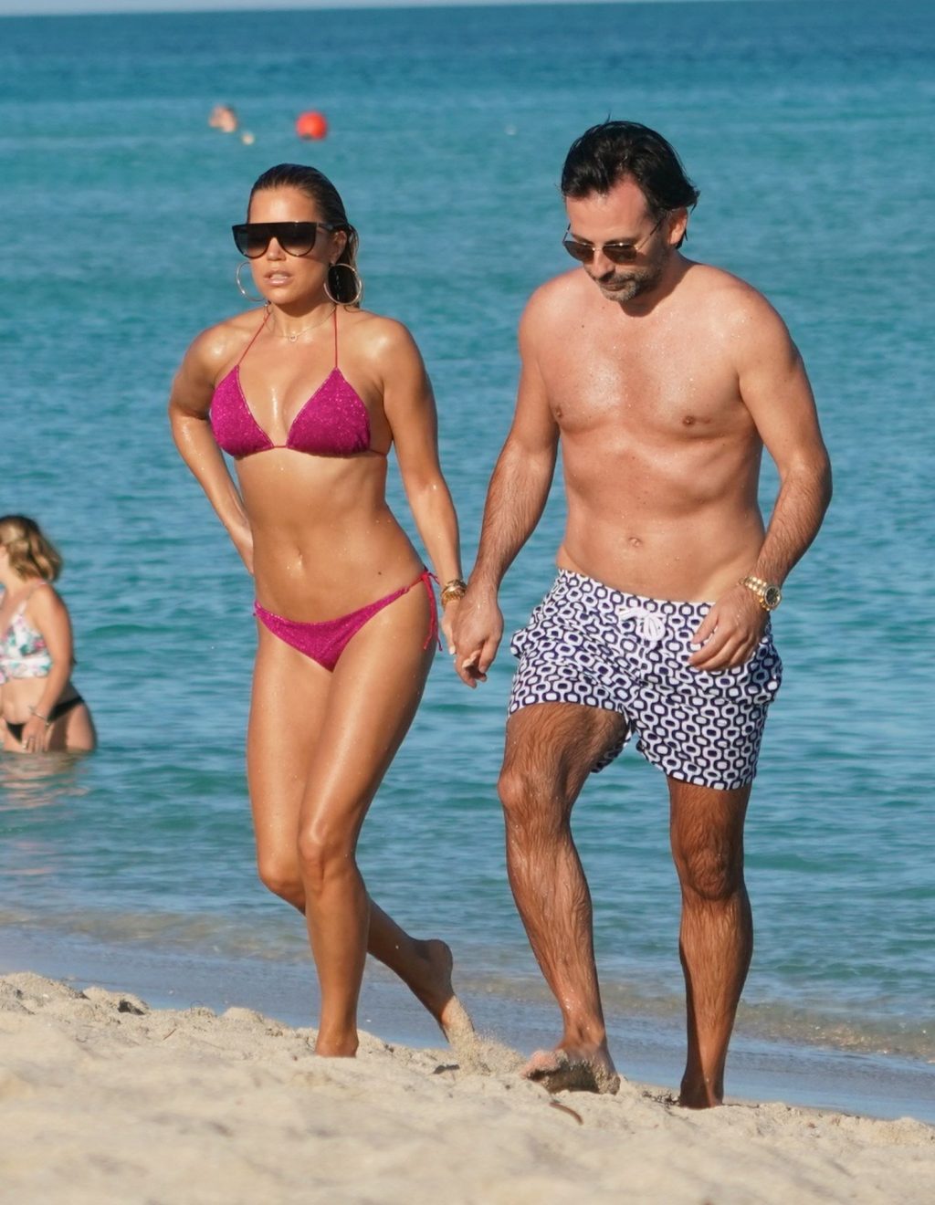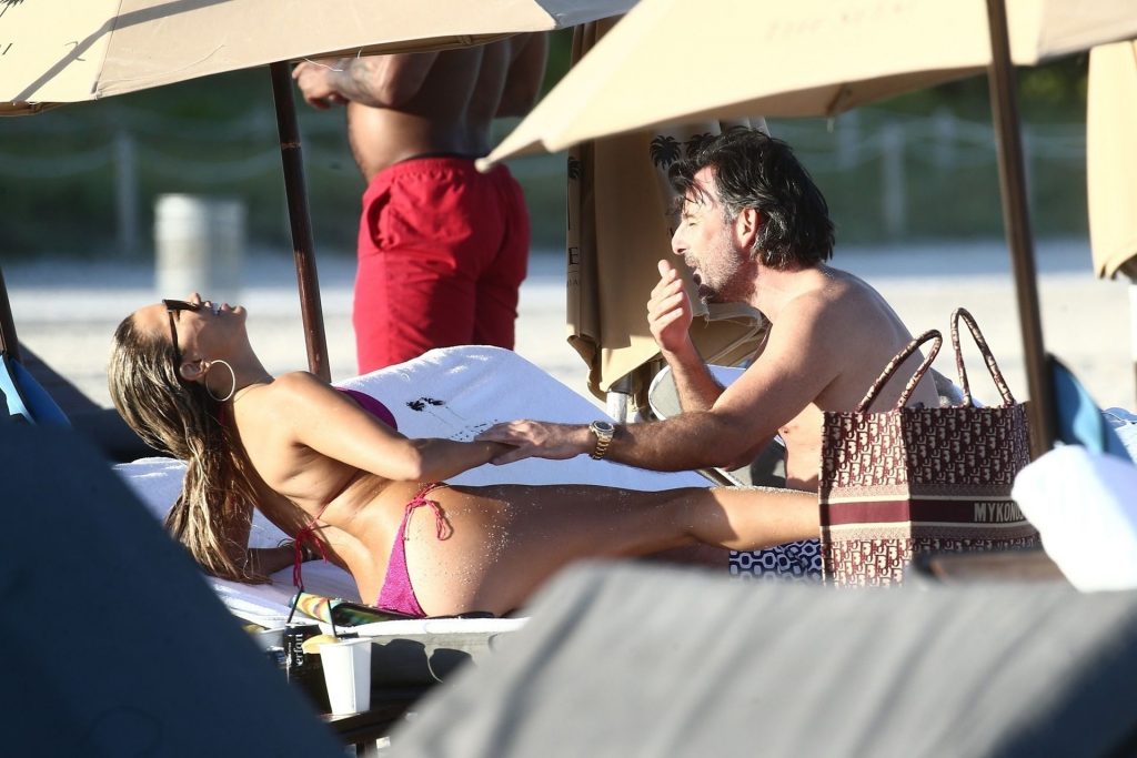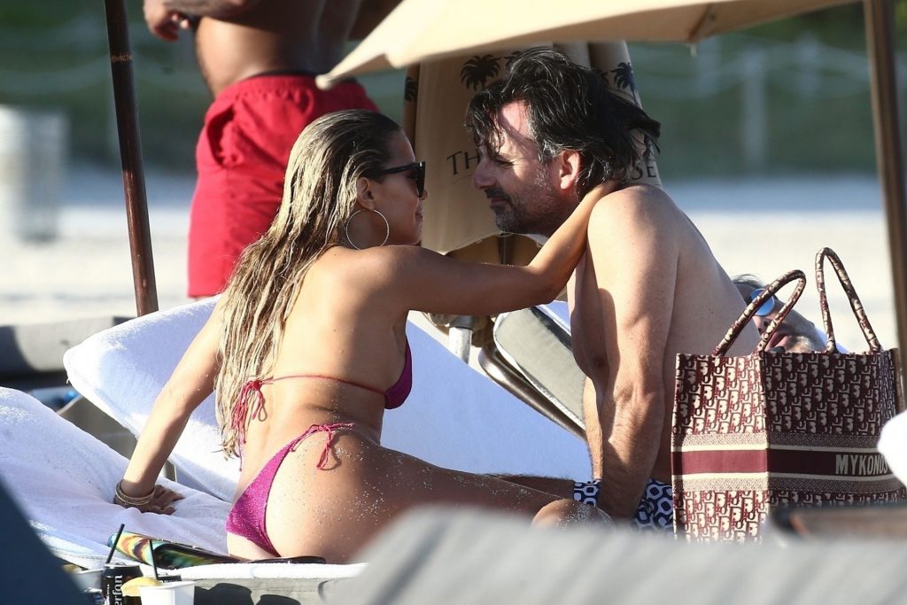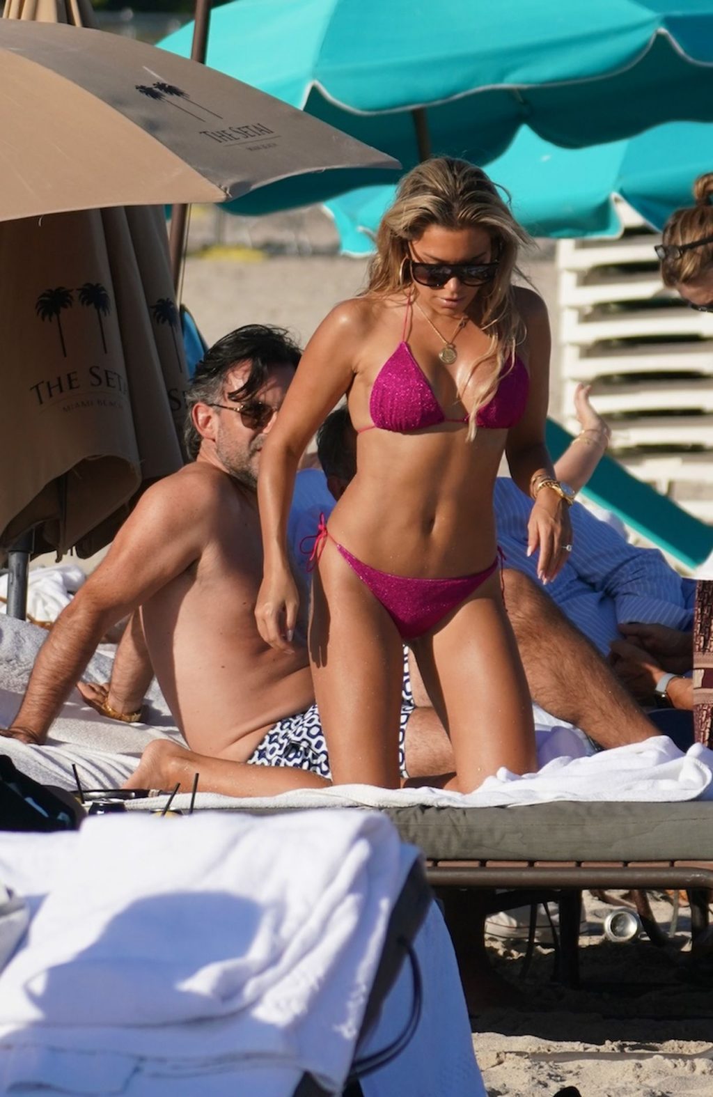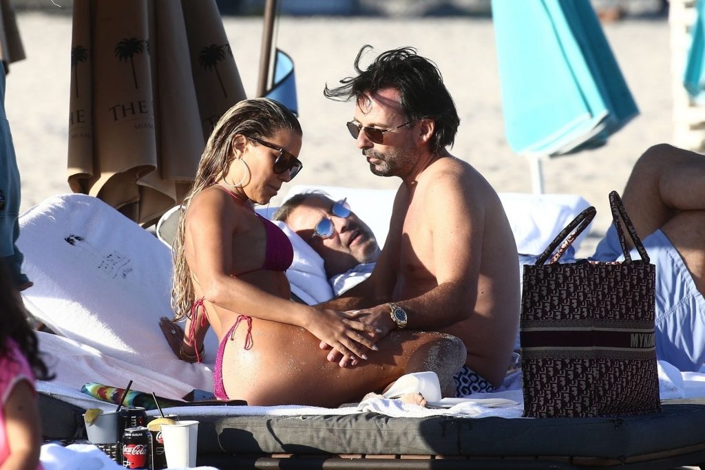 Sylvie Meis, 41, fue fotografiada con un bikini morado en la playa de Miami Beach, 12/02/2019. Sylvie se dio un baño en el océano con su prometido y disfrutó del sol en las playas de Miami.