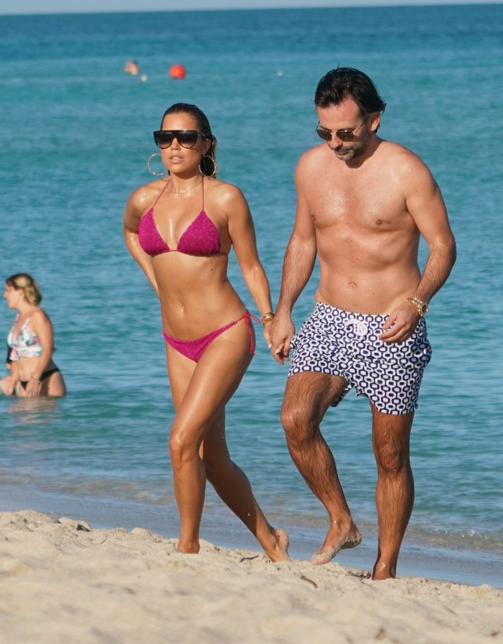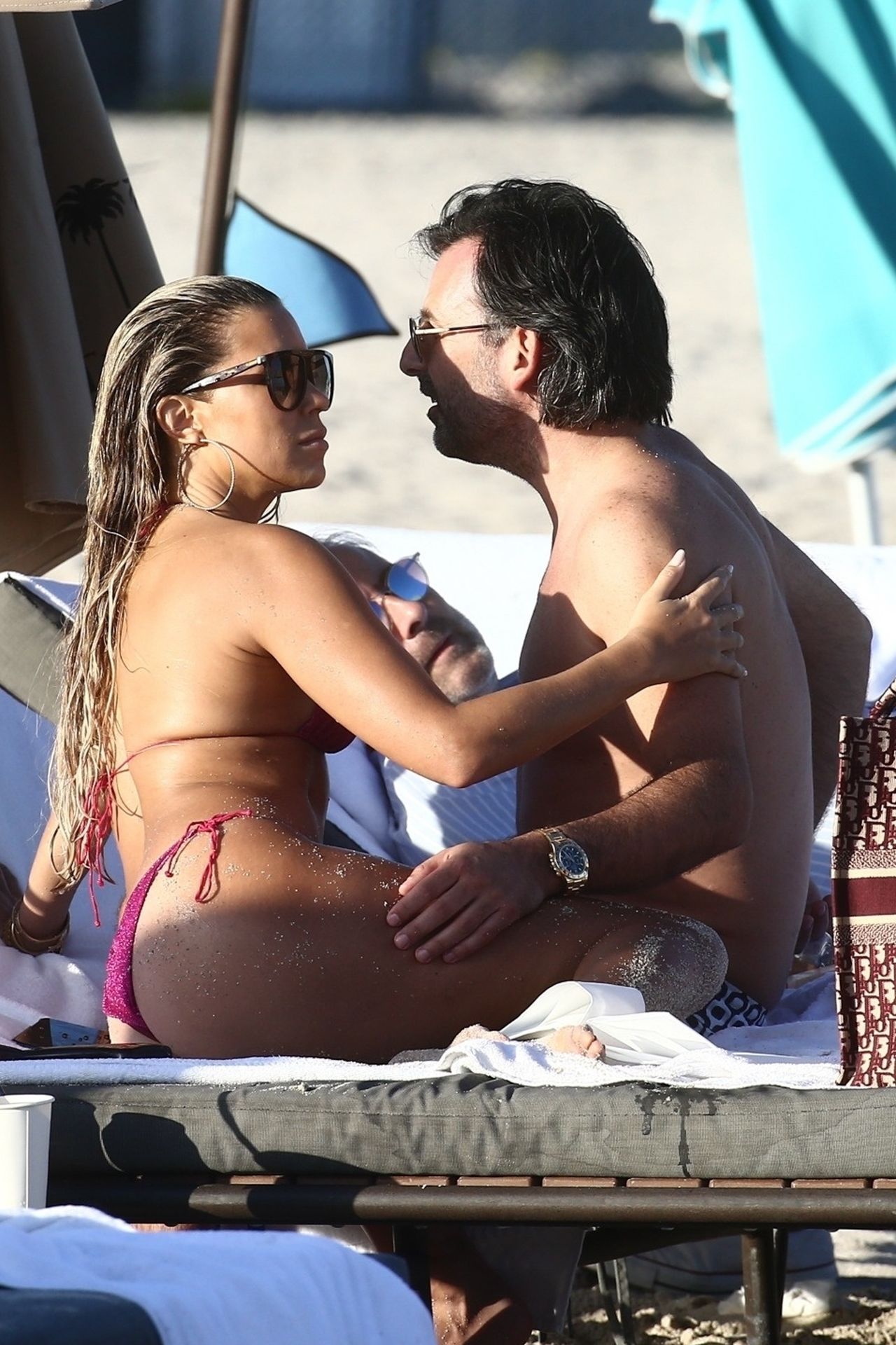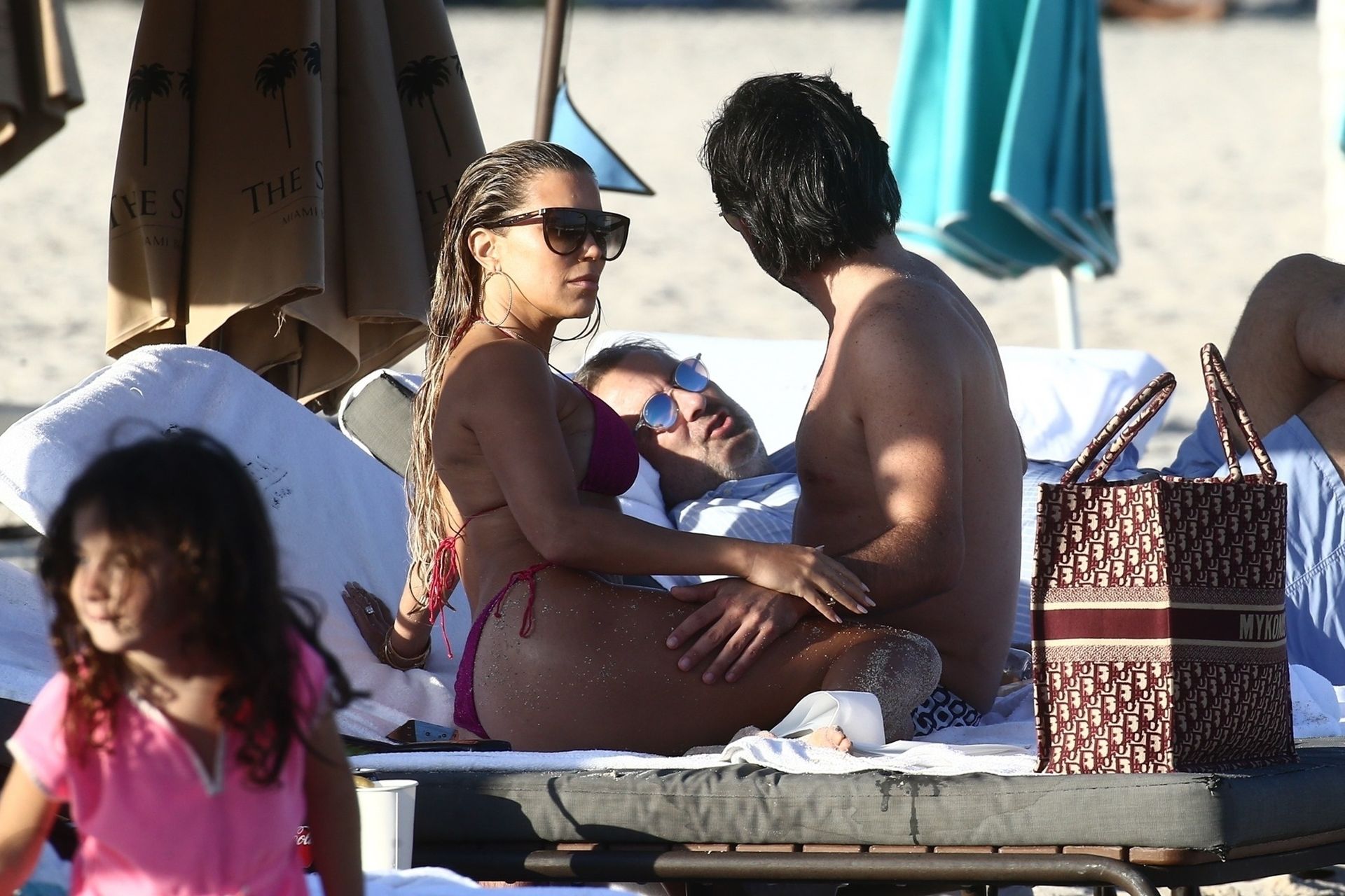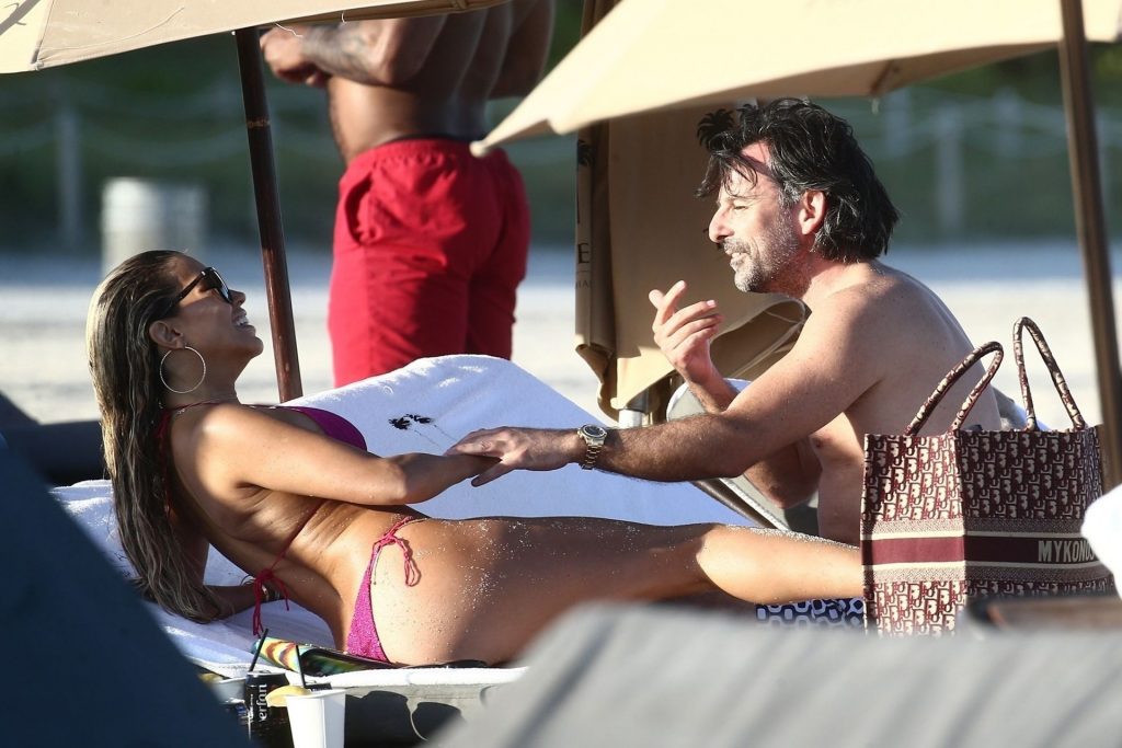 Sylvie Meis, 41, fue fotografiada con un bikini morado en la playa de Miami Beach, 12/02/2019. Sylvie se dio un baño en el océano con su prometido y disfrutó del sol en las playas de Miami.