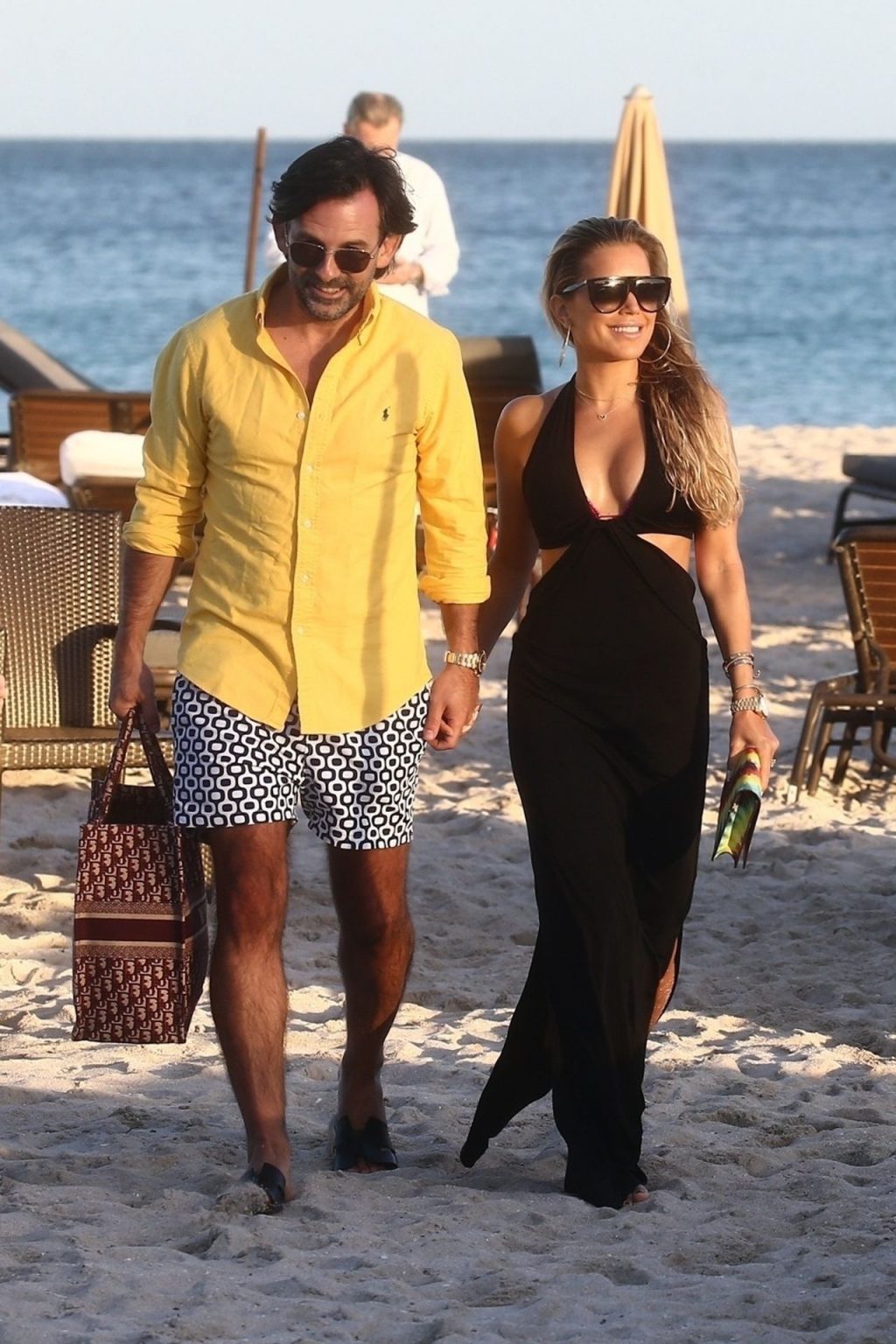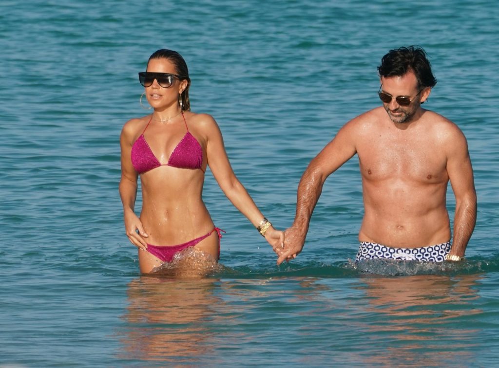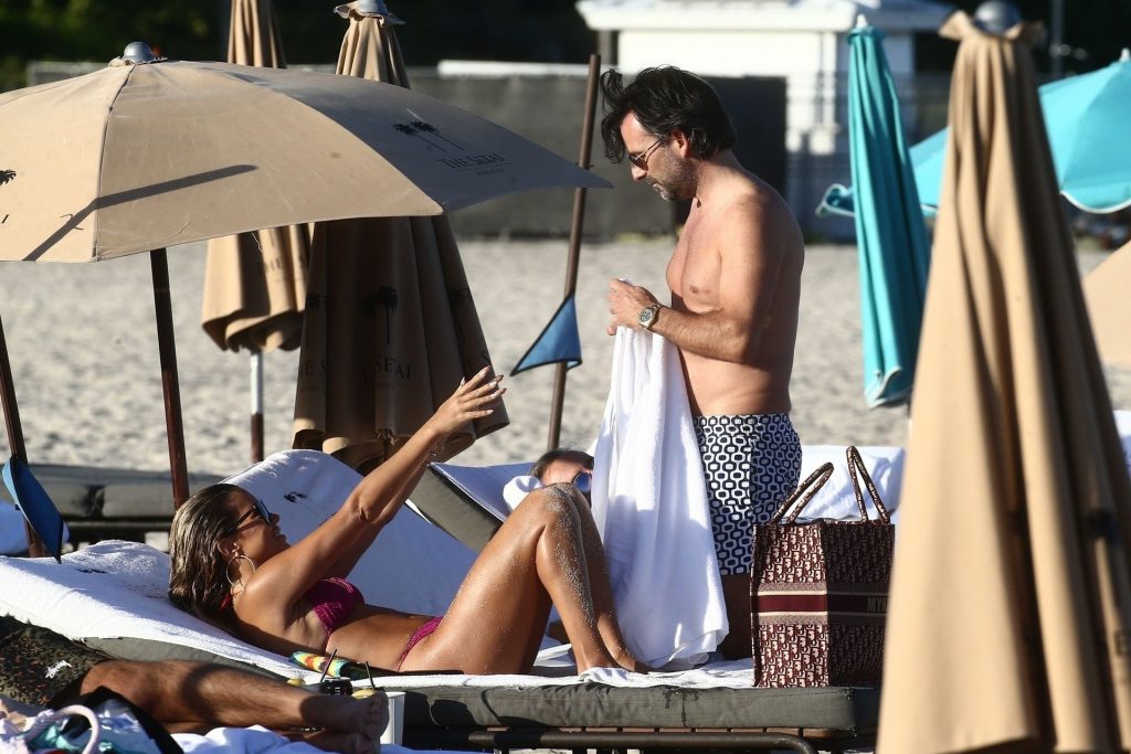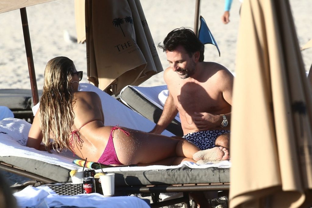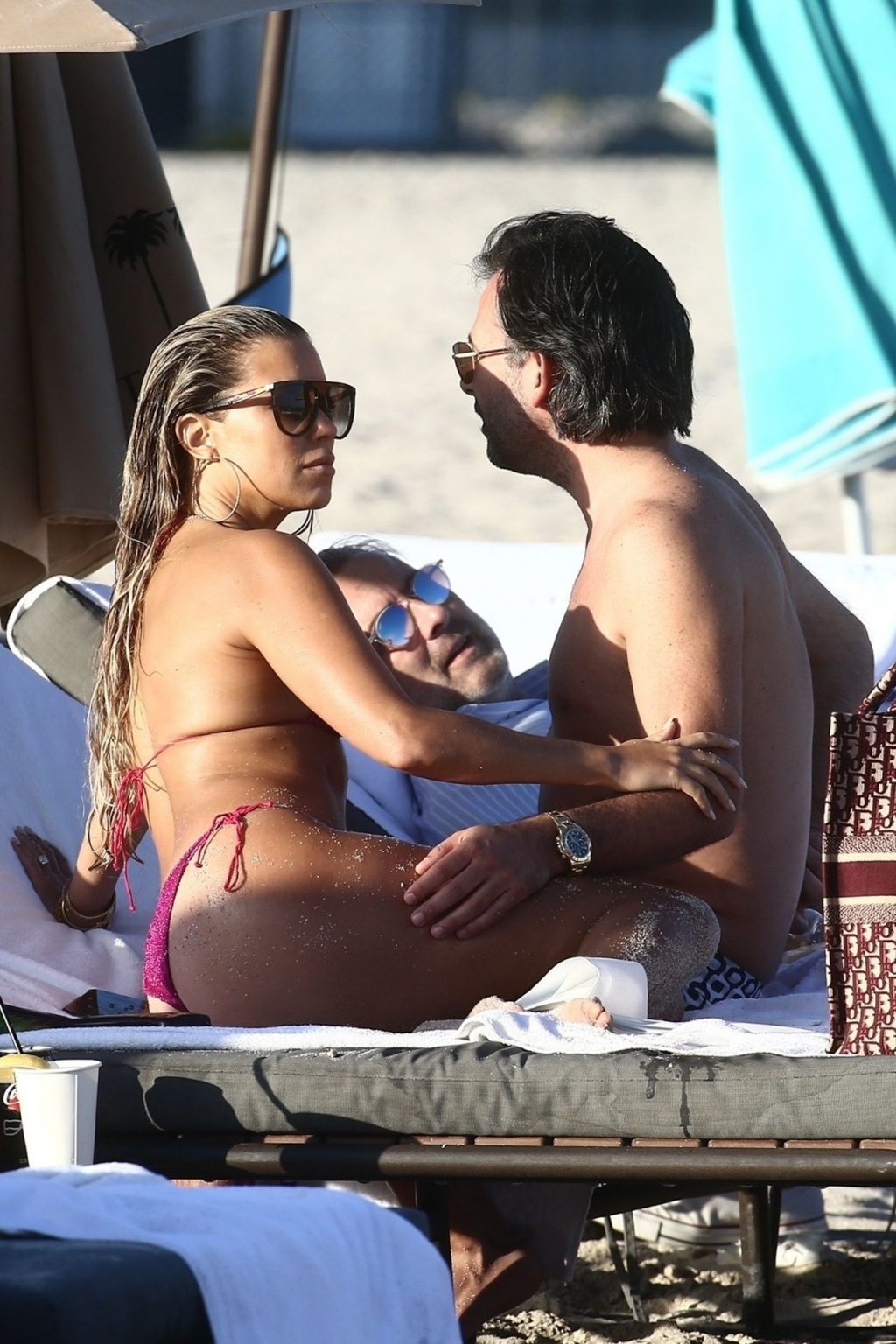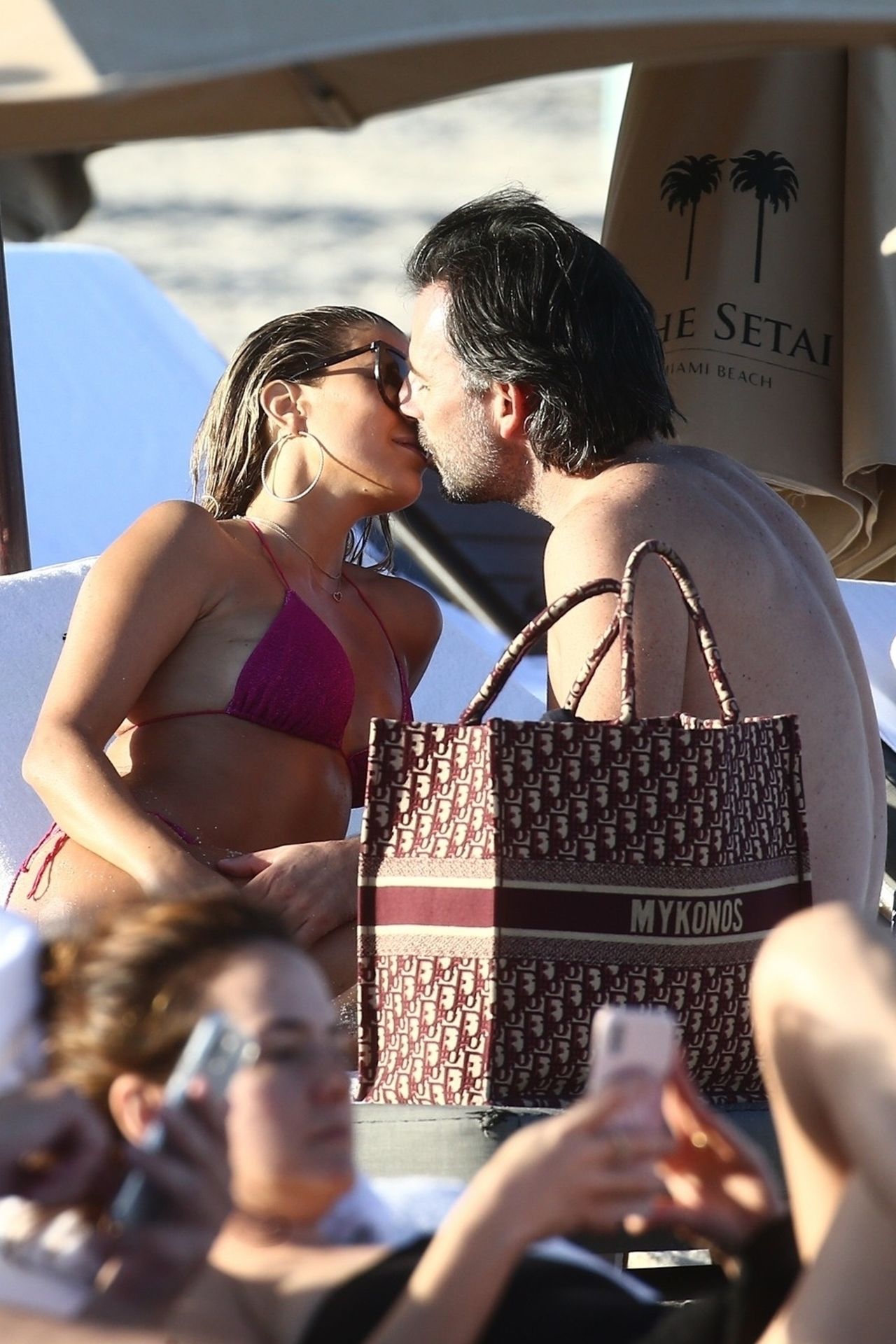 Sylvie Meis, 41, fue fotografiada con un bikini morado en la playa de Miami Beach, 12/02/2019. Sylvie se dio un baño en el océano con su prometido y disfrutó del sol en las playas de Miami.