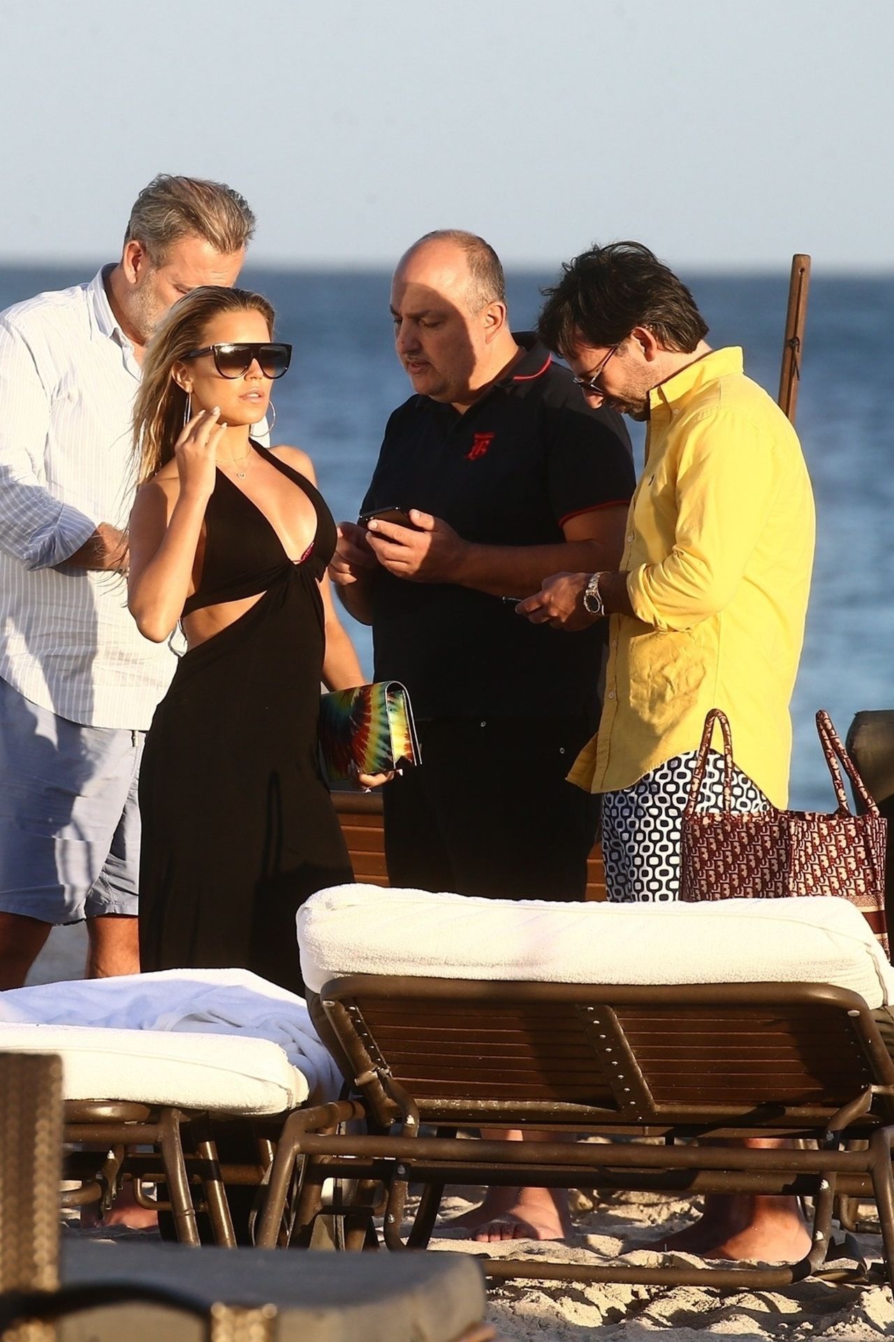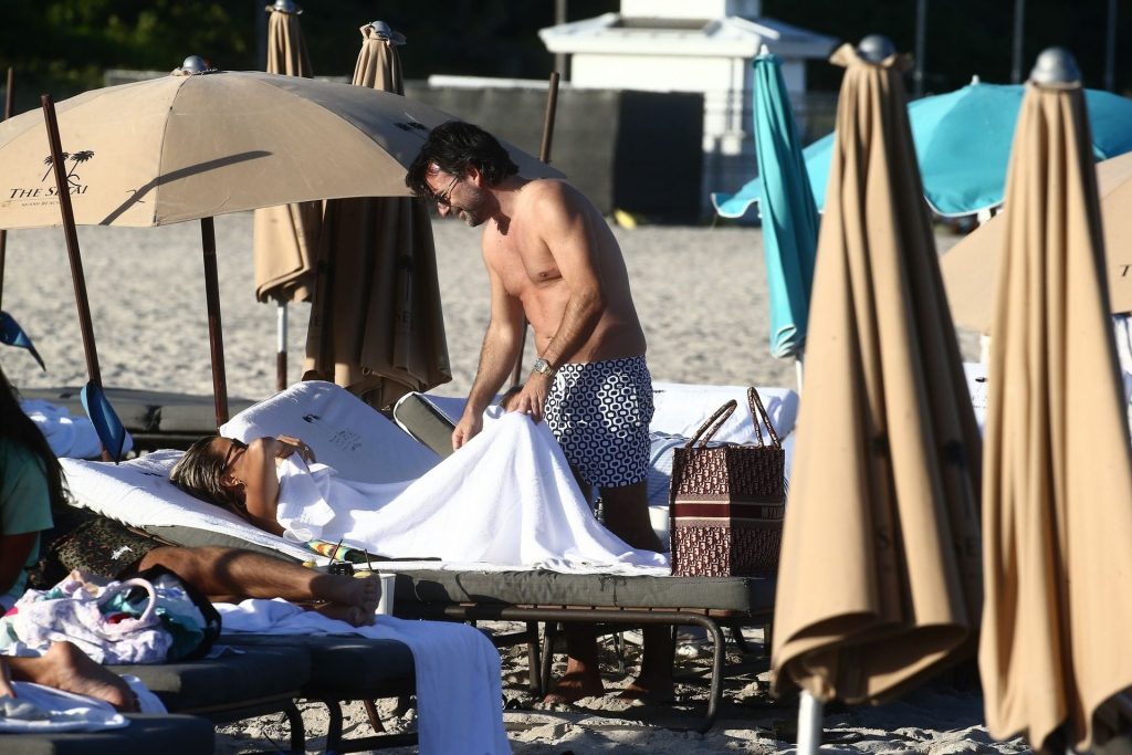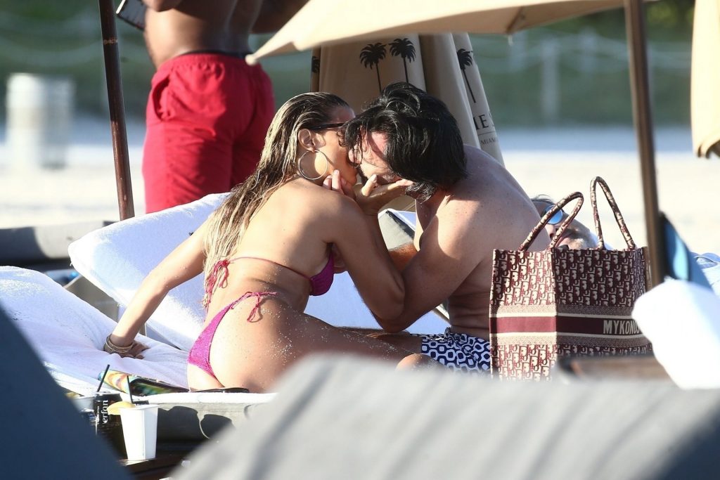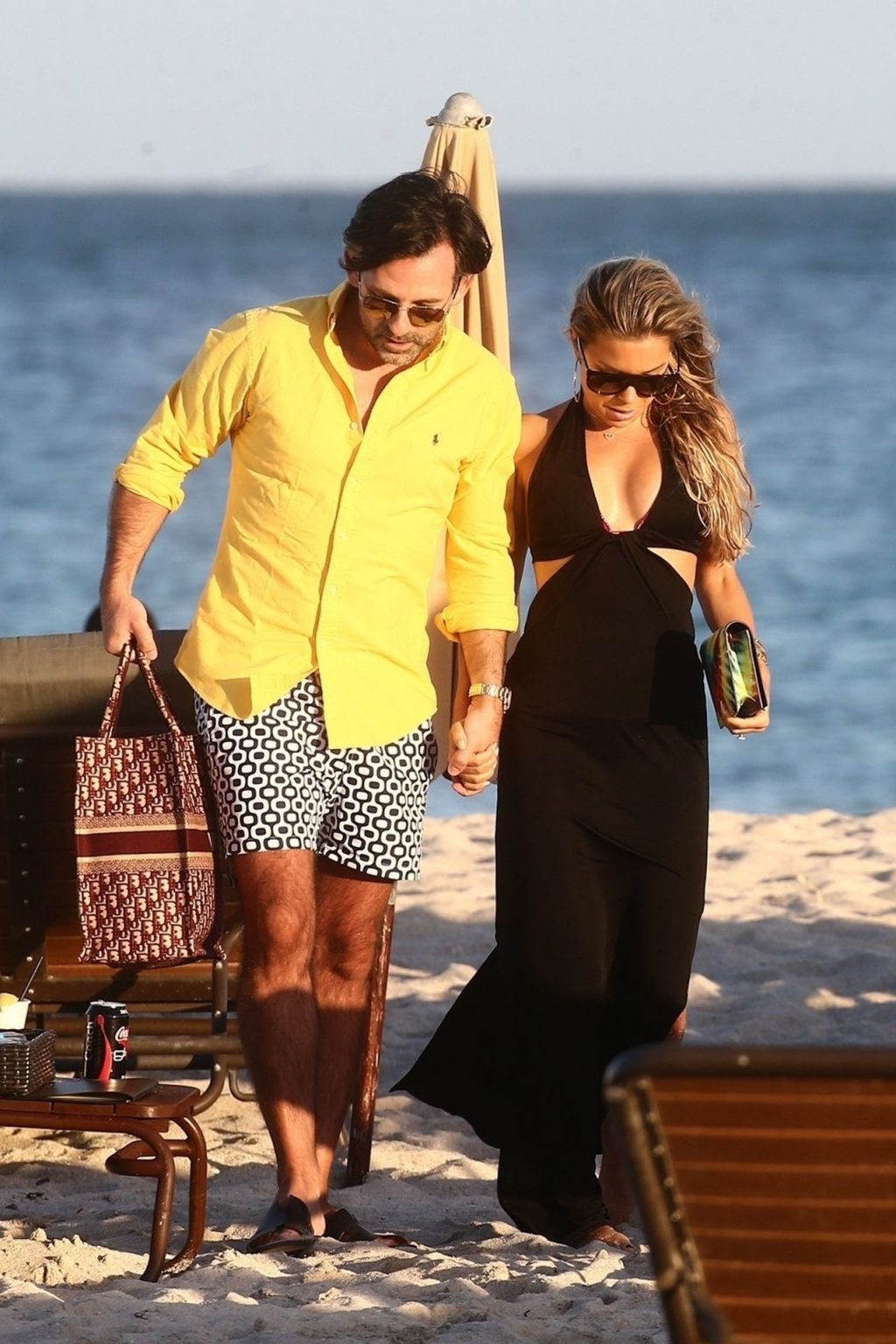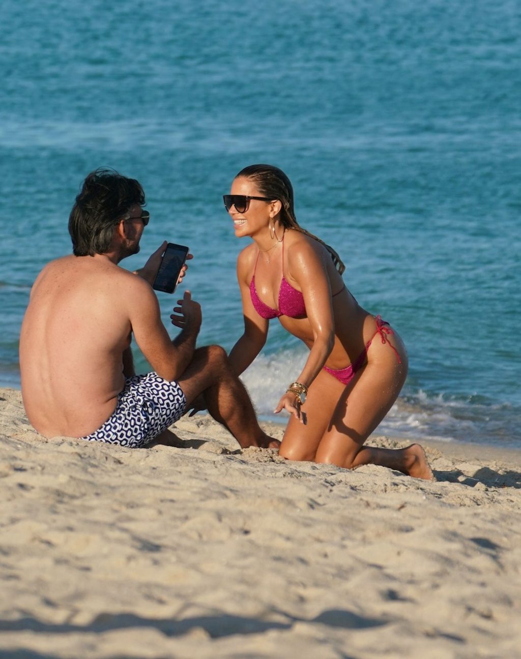 Sylvie Meis, 41, fue fotografiada con un bikini morado en la playa de Miami Beach, 12/02/2019. Sylvie se dio un baño en el océano con su prometido y disfrutó del sol en las playas de Miami.