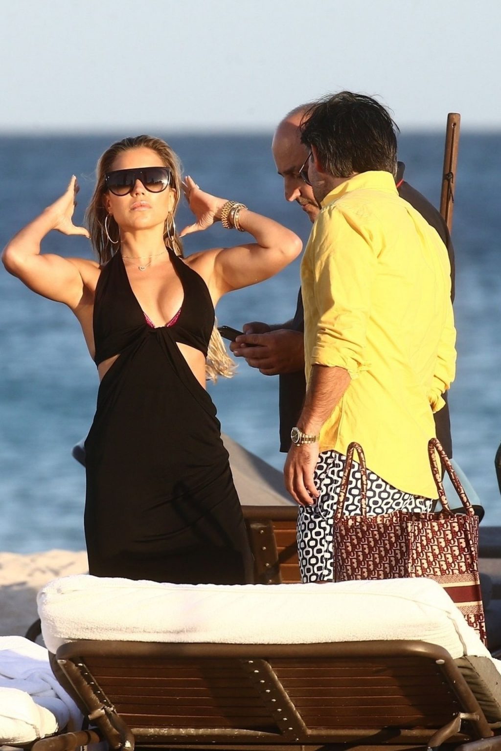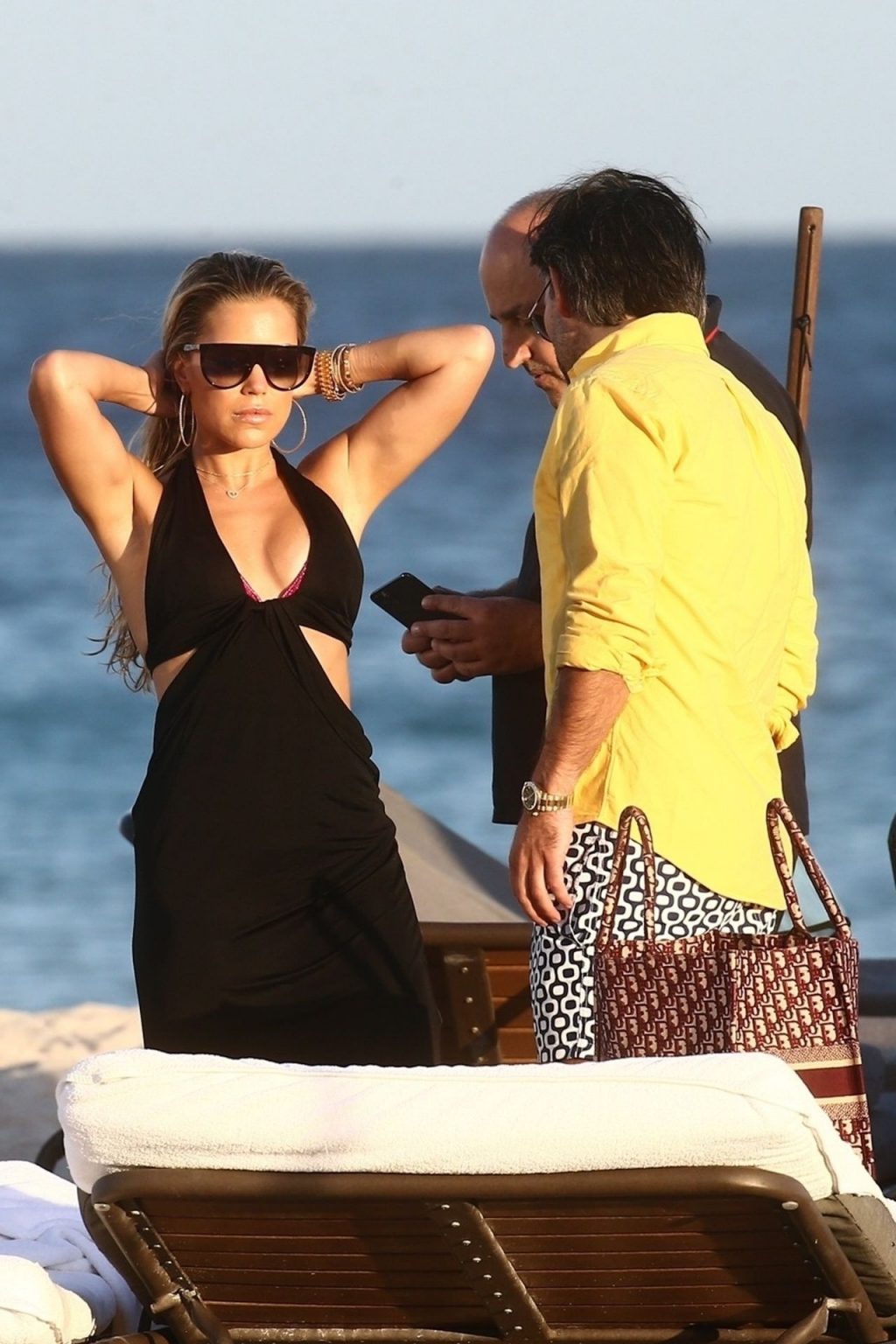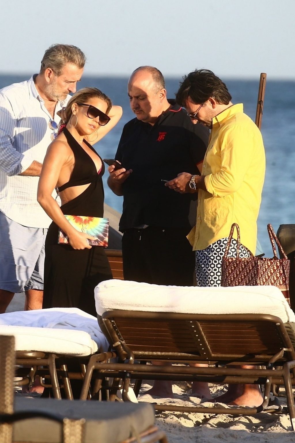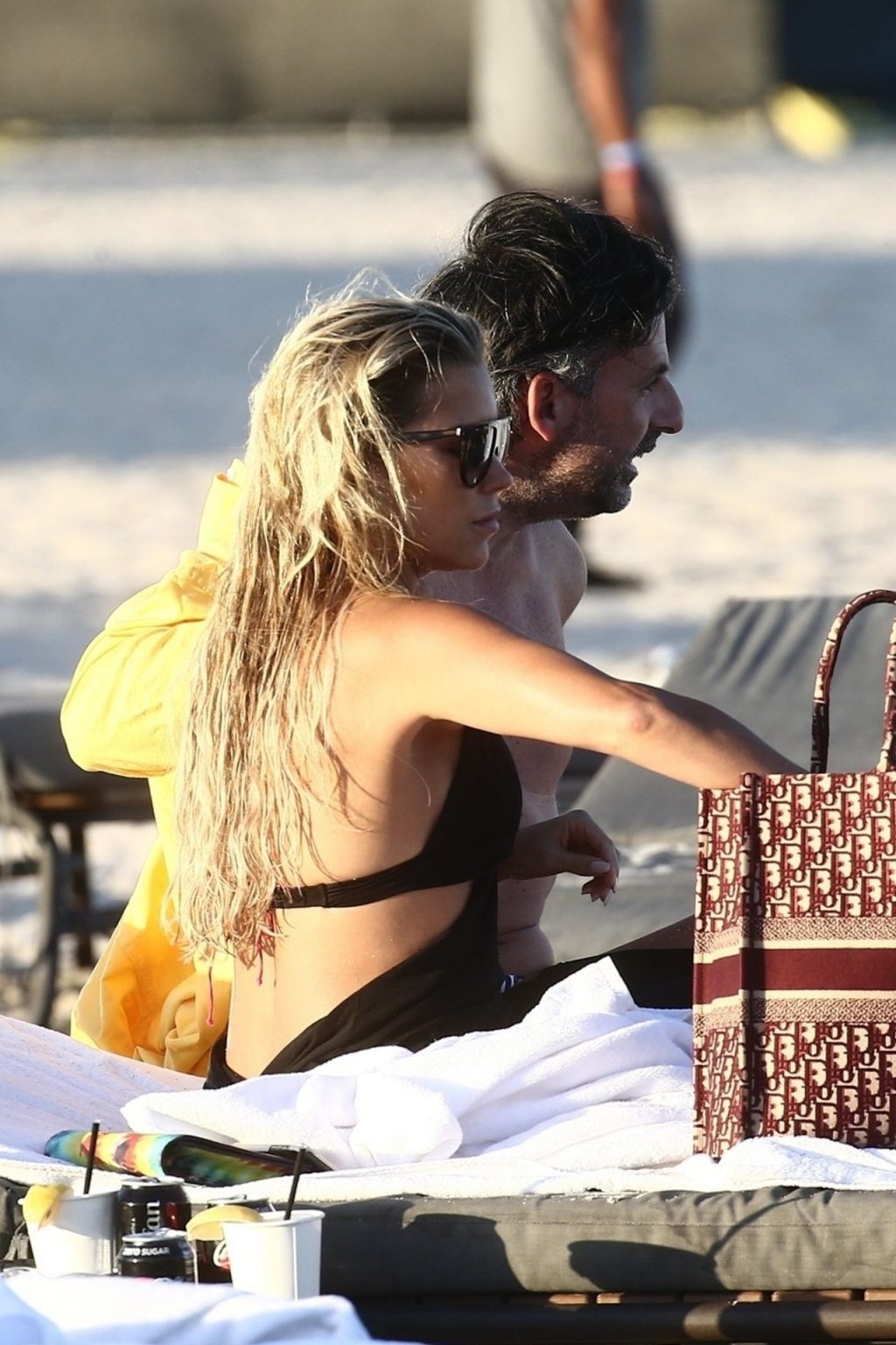 Sylvie Meis, 41, fue fotografiada con un bikini morado en la playa de Miami Beach, 12/02/2019. Sylvie se dio un baño en el océano con su prometido y disfrutó del sol en las playas de Miami.