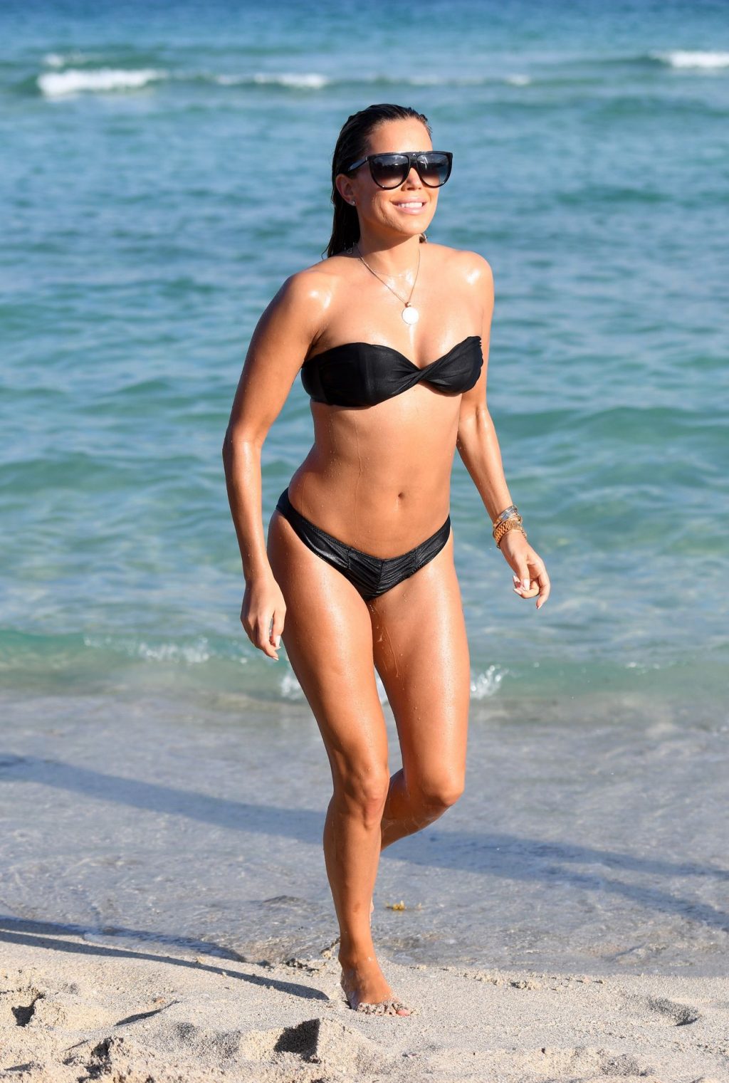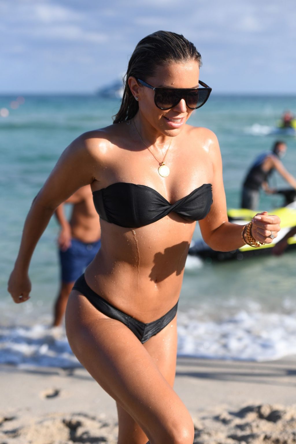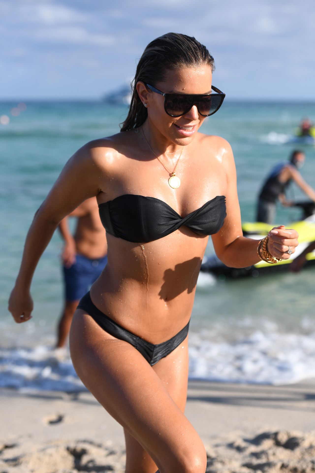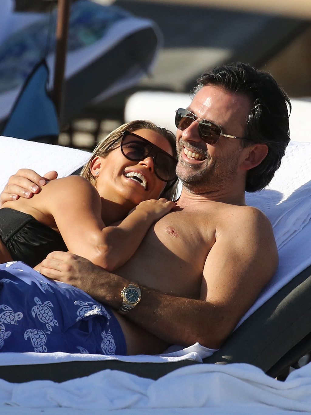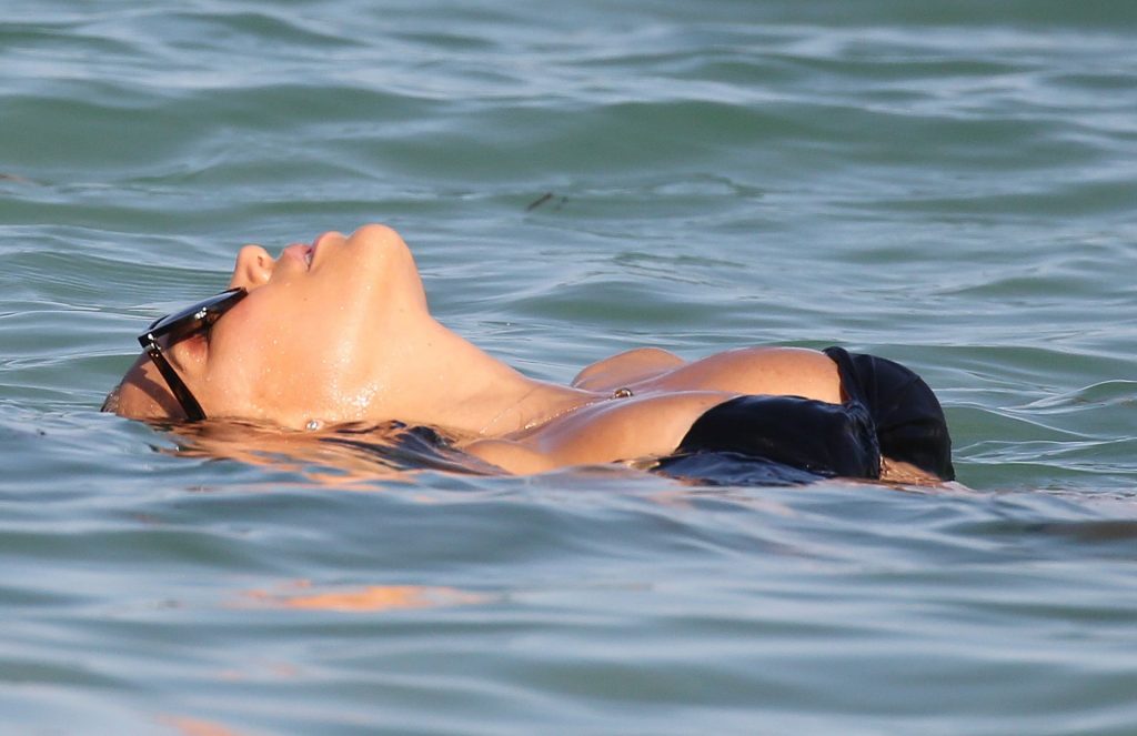 La celebridad holandesa Sylvie Meis (41) lleva un bikini negro y muestra un anillo de compromiso mientras besa a Niclas Castello en la playa de Miami, 30/11/2019.