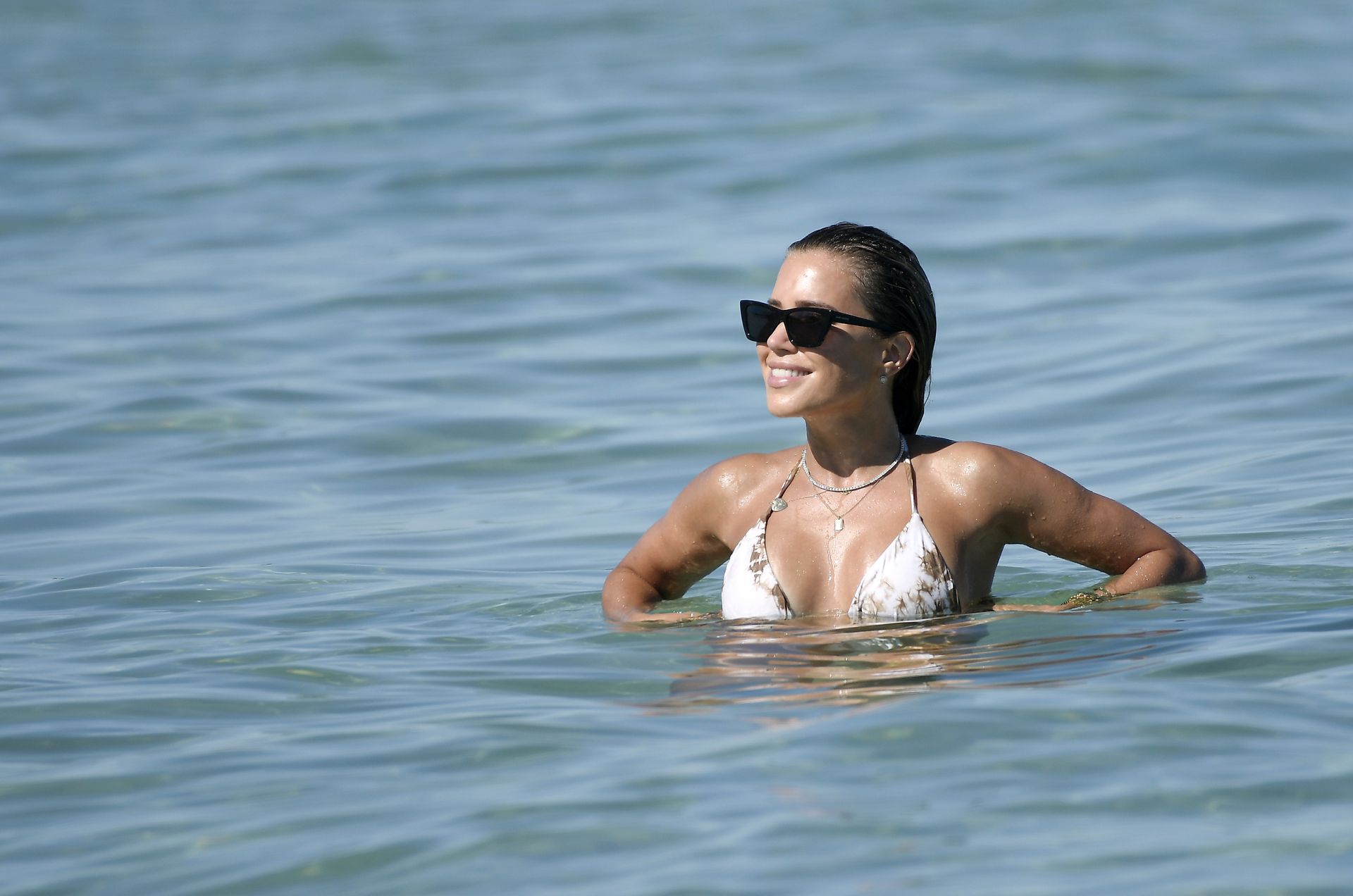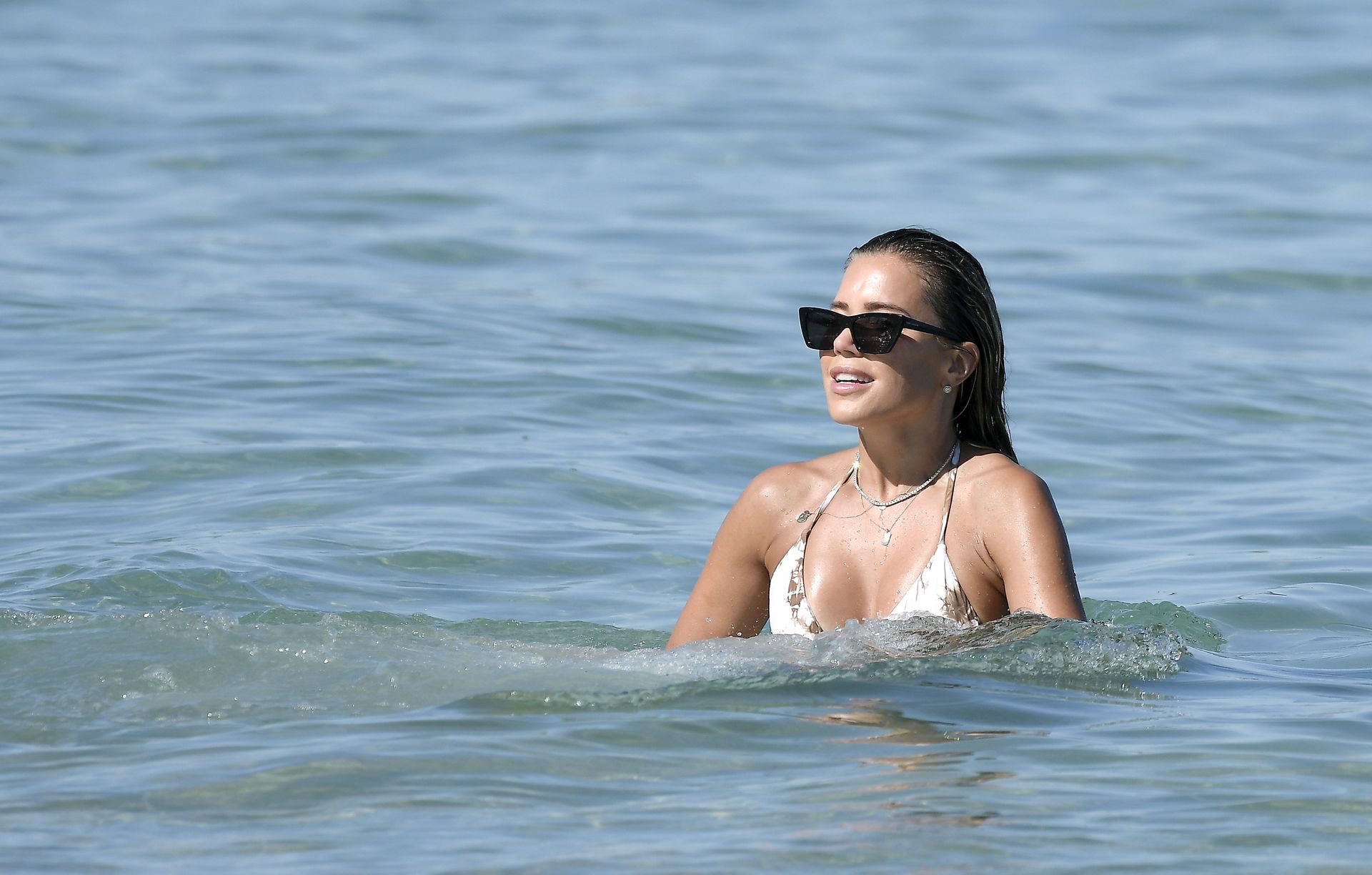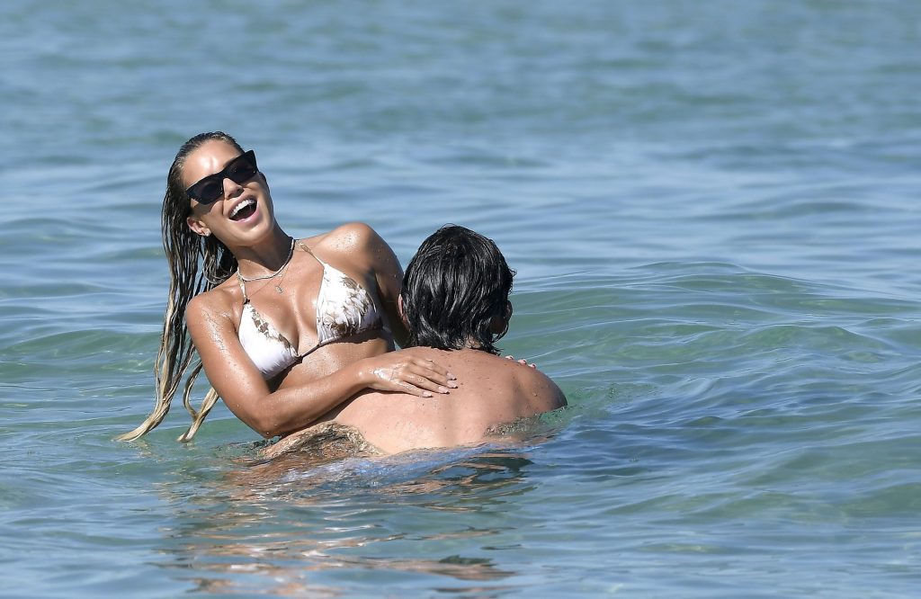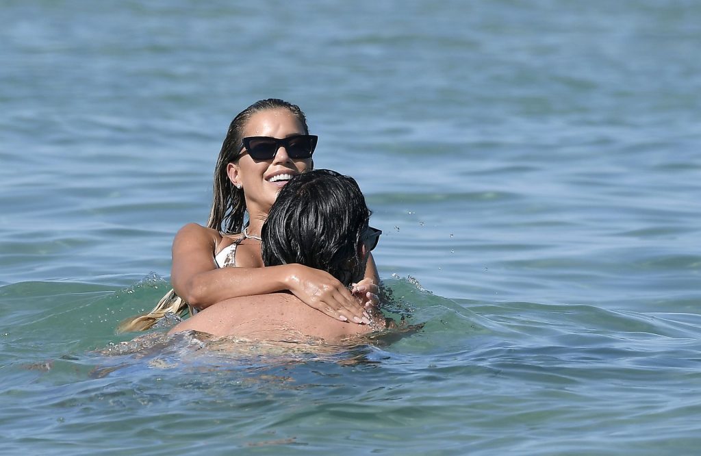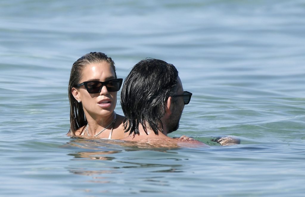 Recién comprometida, Sylvie Meis muestra su increíble cuerpo sexy en bikini mientras disfruta del sol con su nuevo amor, el artista Niclas Castello, en la playa La Reserve en Saint Tropez, 08/07/2020.