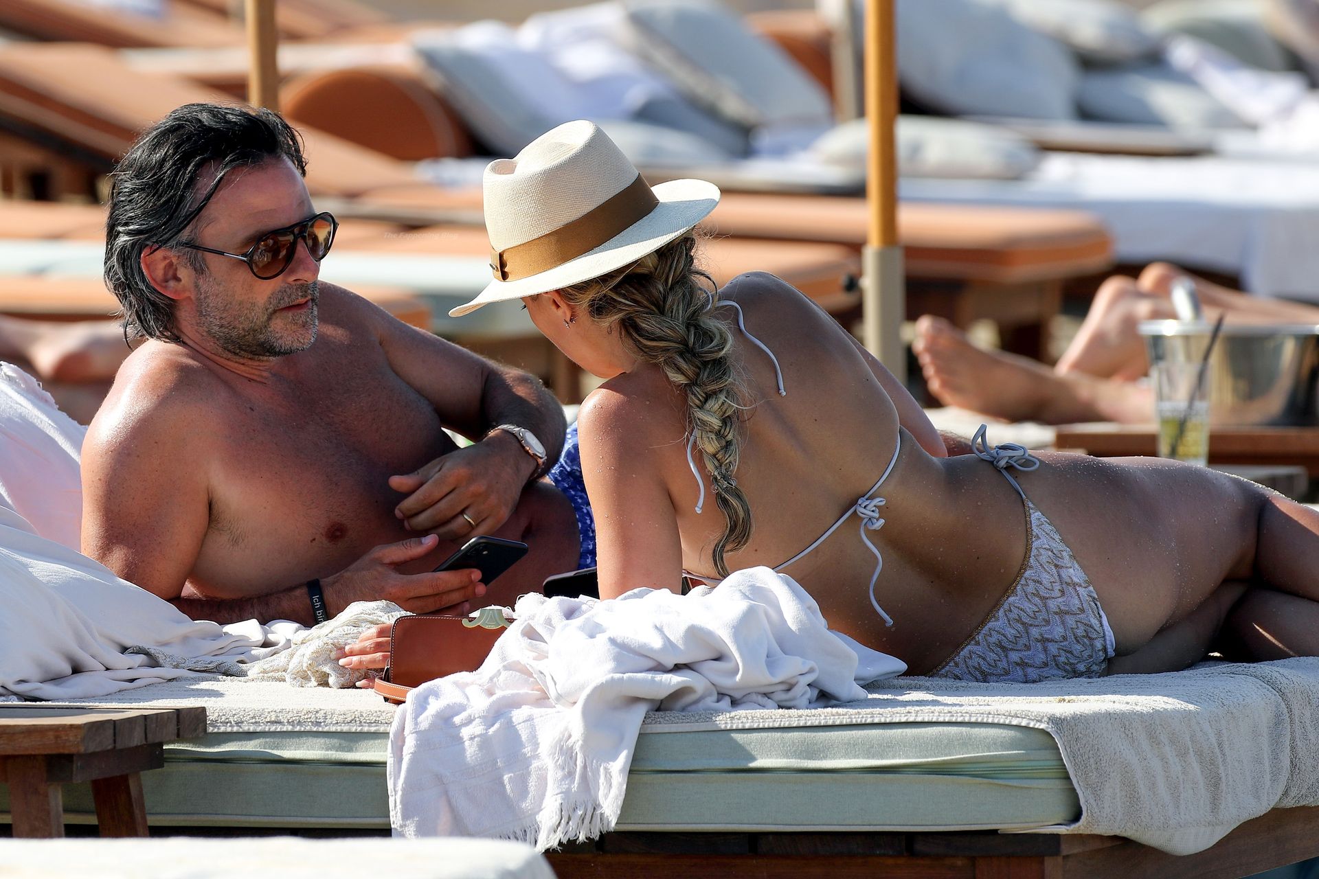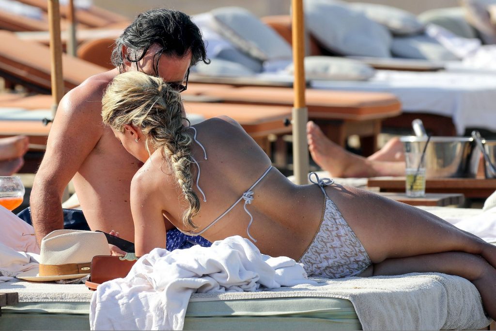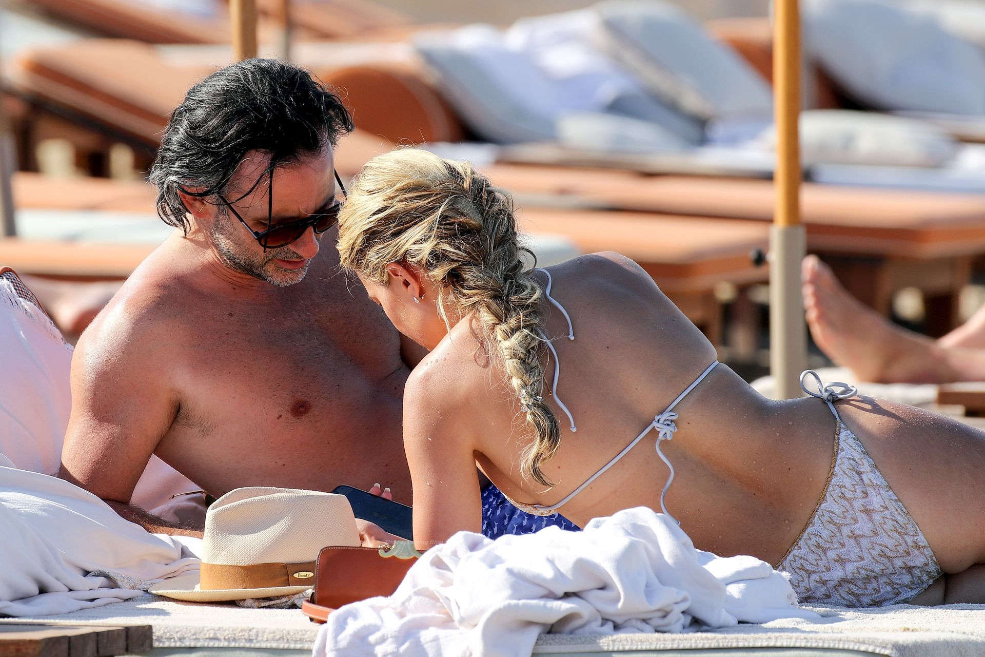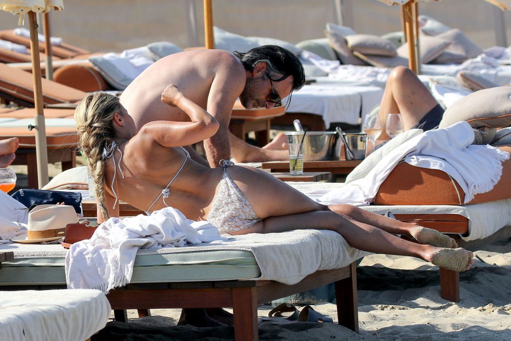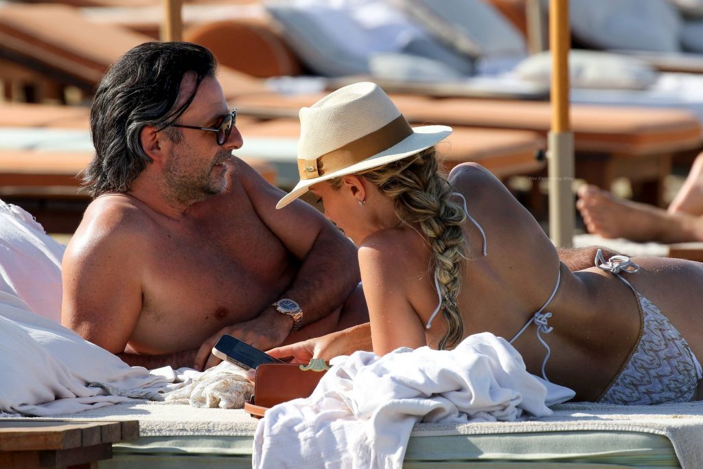 Sylvie Meis y su esposo Niclas Castello son vistos durante un día de playa en Saint Tropez, 10/06/2021. Sylvie Meis muestra su increíble cuerpo en bikini.