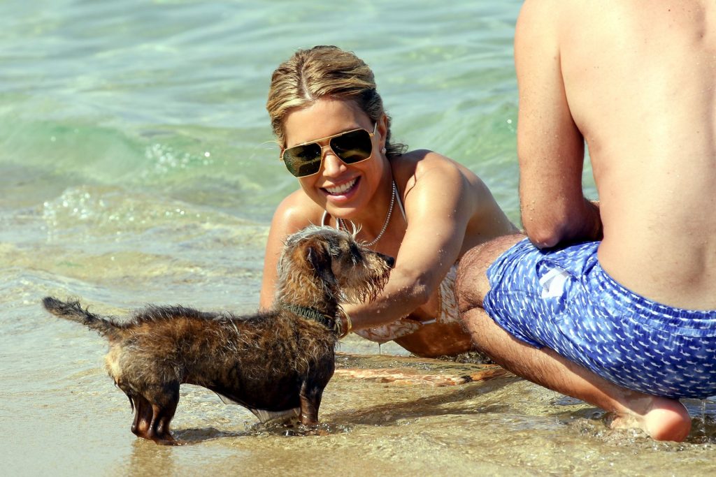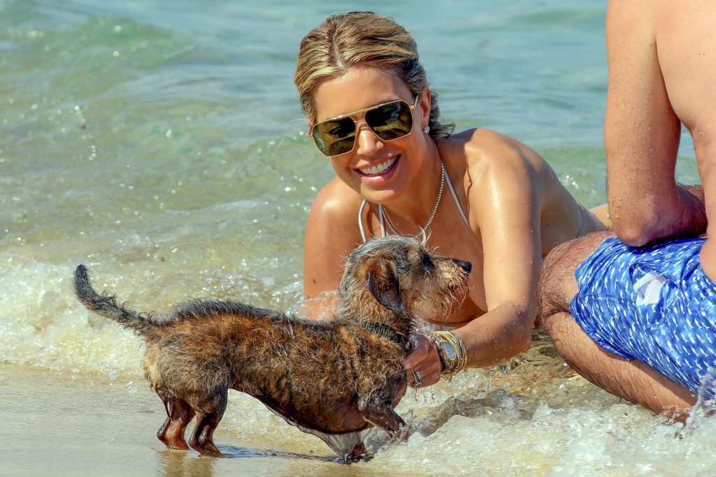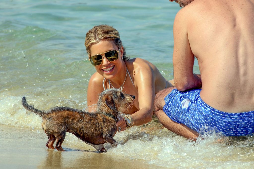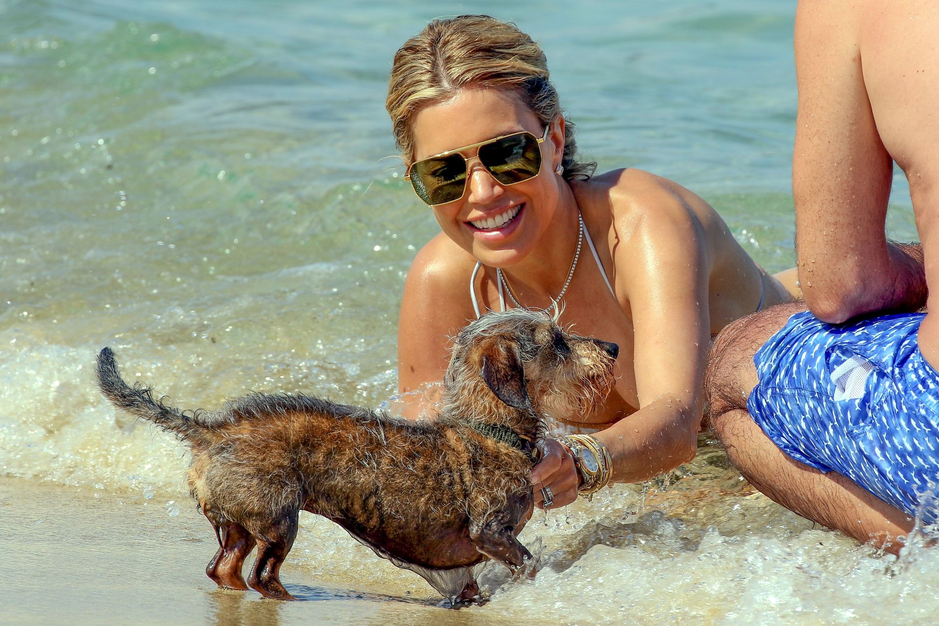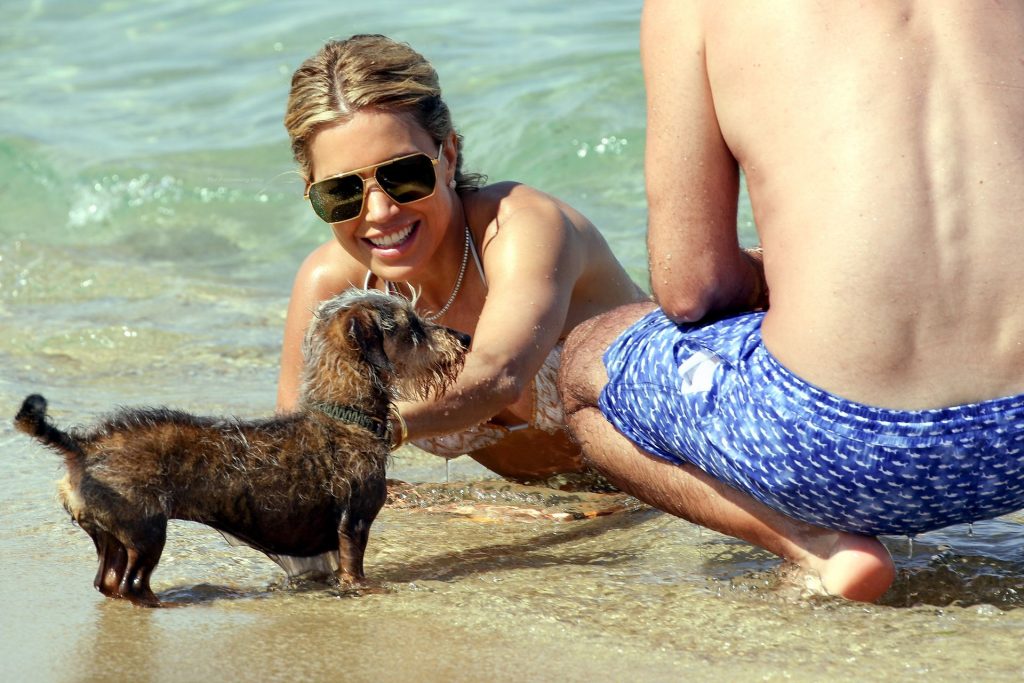 Sylvie Meis y su esposo Niclas Castello son vistos durante un día de playa en Saint Tropez, 10/06/2021. Sylvie Meis muestra su increíble cuerpo en bikini.
