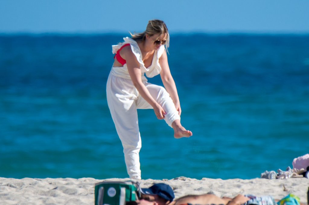 Recién comprometida estrella de Made In Chelsea Tabitha Willett y su prometido Fraser Carruthers son vistos con su bebé durante un paseo por Miami Beach días después del compromiso, 22/11/2019.