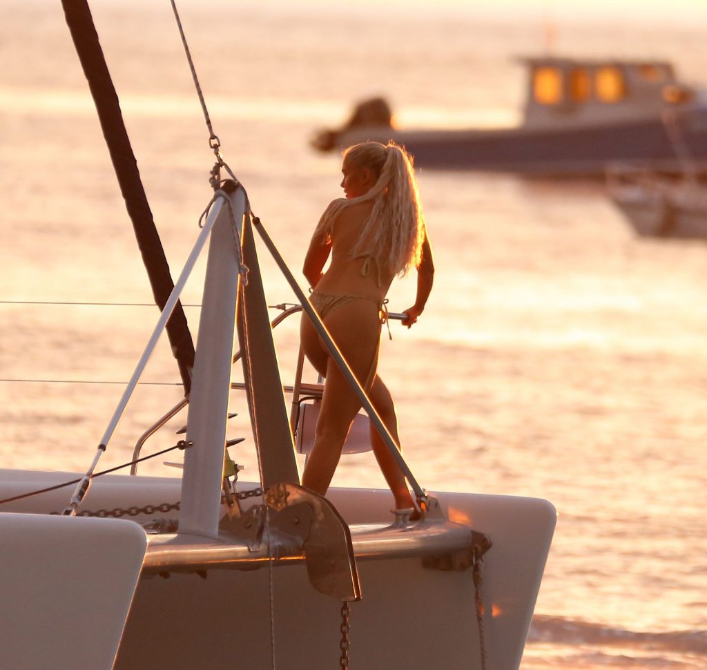 Popular YouTuber Erika Costell celebra su 27º cumpleaños a bordo de un yate en Miami Beach con la bloguera Amanda Steele y amigos, 12/11/2019. Amanda posa para fotos con su bikini negro mientras la cumpleañera Erika bebe una bebida y toma el sol con sus amigos.