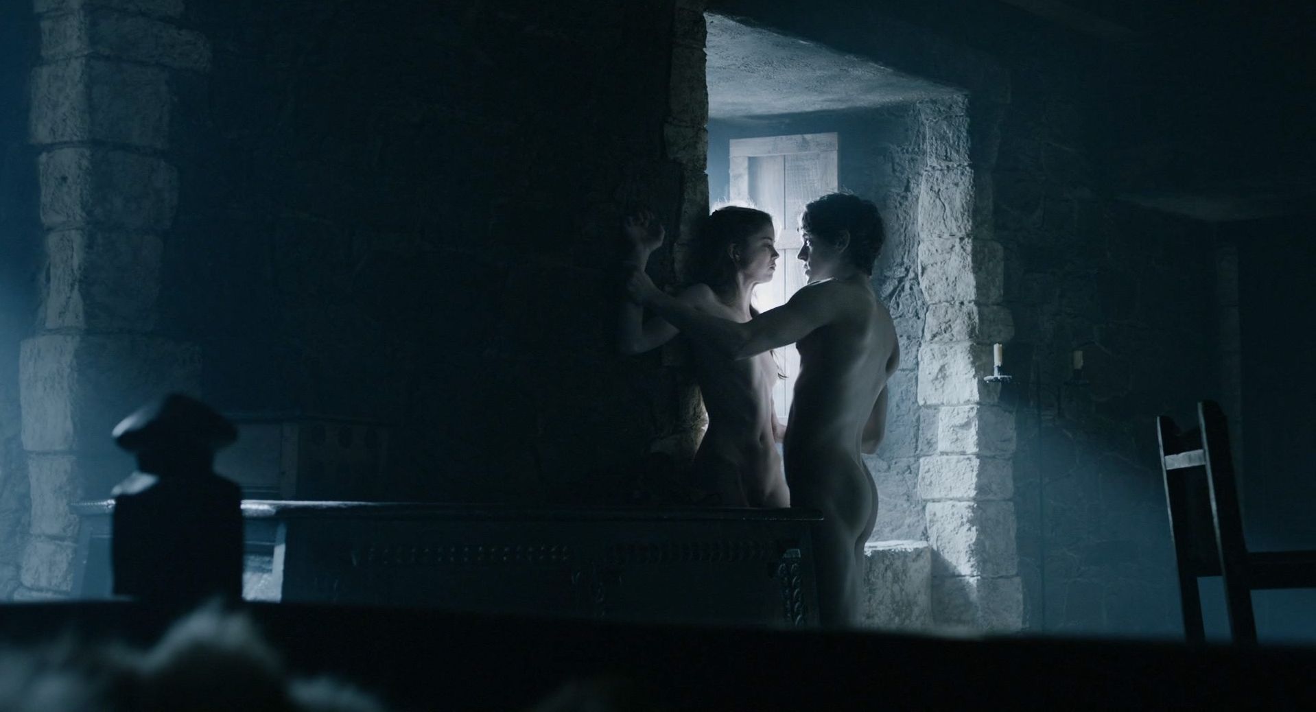 En la tercera escena, Charlotte Hope y su amiga Stephanie Blacker muestran sus hermosas vaginas y tetas desnudas en una escena sexual intensa. Steph tira de Charlotte por el vestido, y ella muestra sus pechos y trasero. Luego Charlotte comienza a montar a su prisionero, y Stephanie se queda de pie y también se desnuda. Tienes una buena vista de sus tetas desnudas, vellos púbicos y grandes traseros.