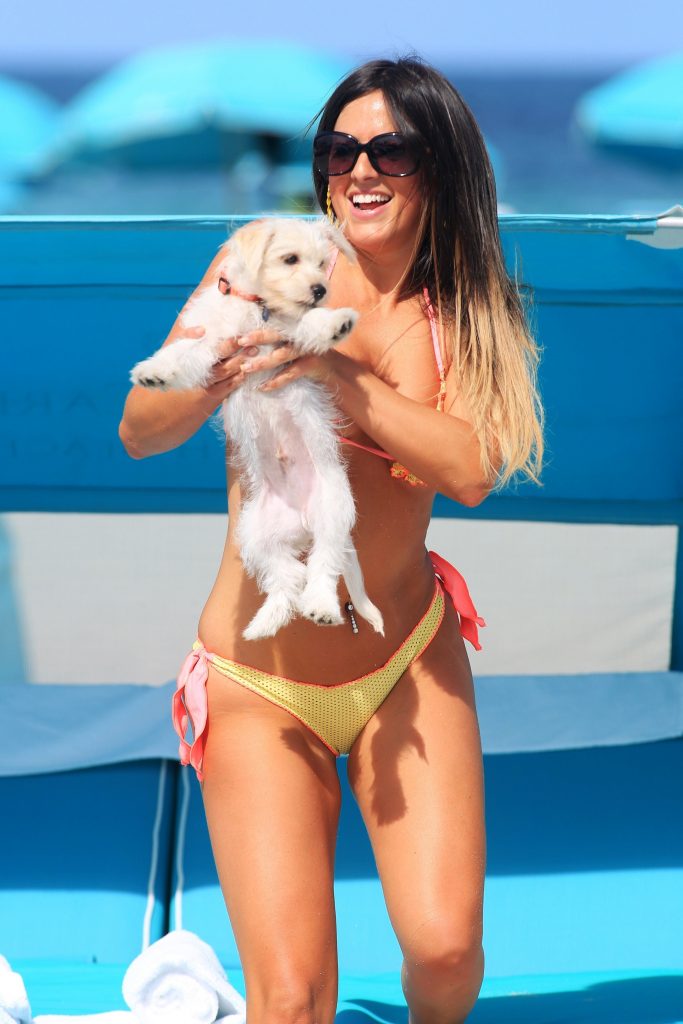 Modelo, estrella del reality show francés ‘Secret story 9’ y ganadora de la chica morena del año 2016 para Playboy Italia, Claudia Romani se muestra increíblemente sexy luciendo un diminuto bikini rosa y verde en Hollywood, Florida, 02/10/2017.