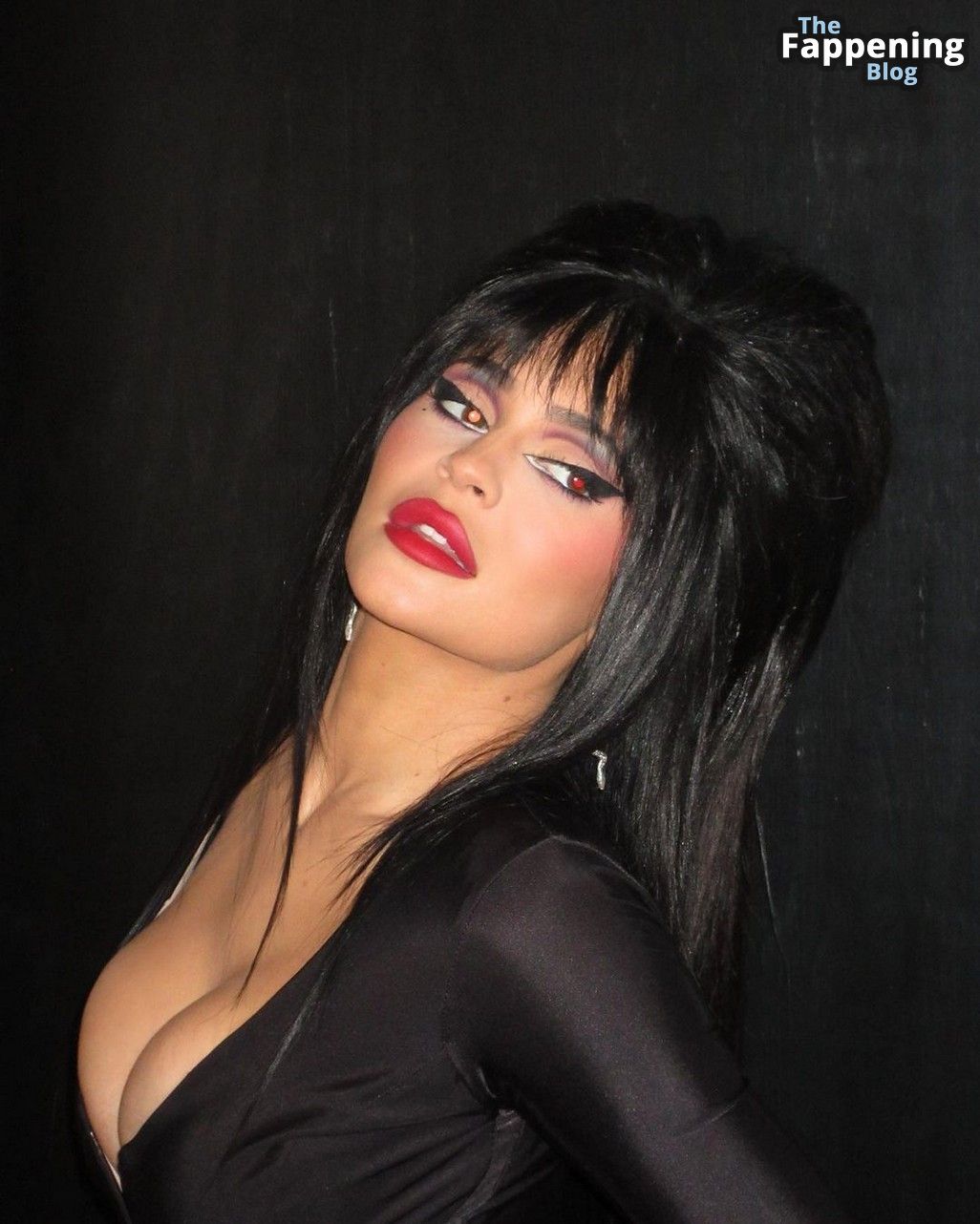 La familia Kardashian sabe cómo elegir imágenes interesantes para sus atuendos. Este año Kylie Jenner se disfrazó de vampira femenina Elvira: Mistress of the Dark. De hecho, hay similitudes entre Kylie y Cassandra Peterson, quien interpretó el papel de Elvira en esa misma película en 1988. Aunque definitivamente los pechos falsos de Kylie Jenner son significativamente más grandes.