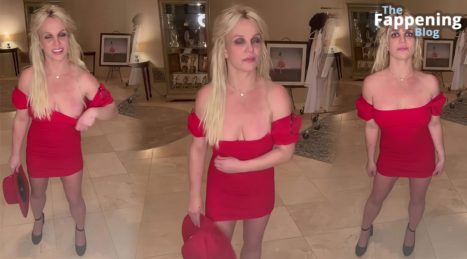 Britney Spears muestra su sexy pecho y pezones usando un vestido rojo para su video de IG.