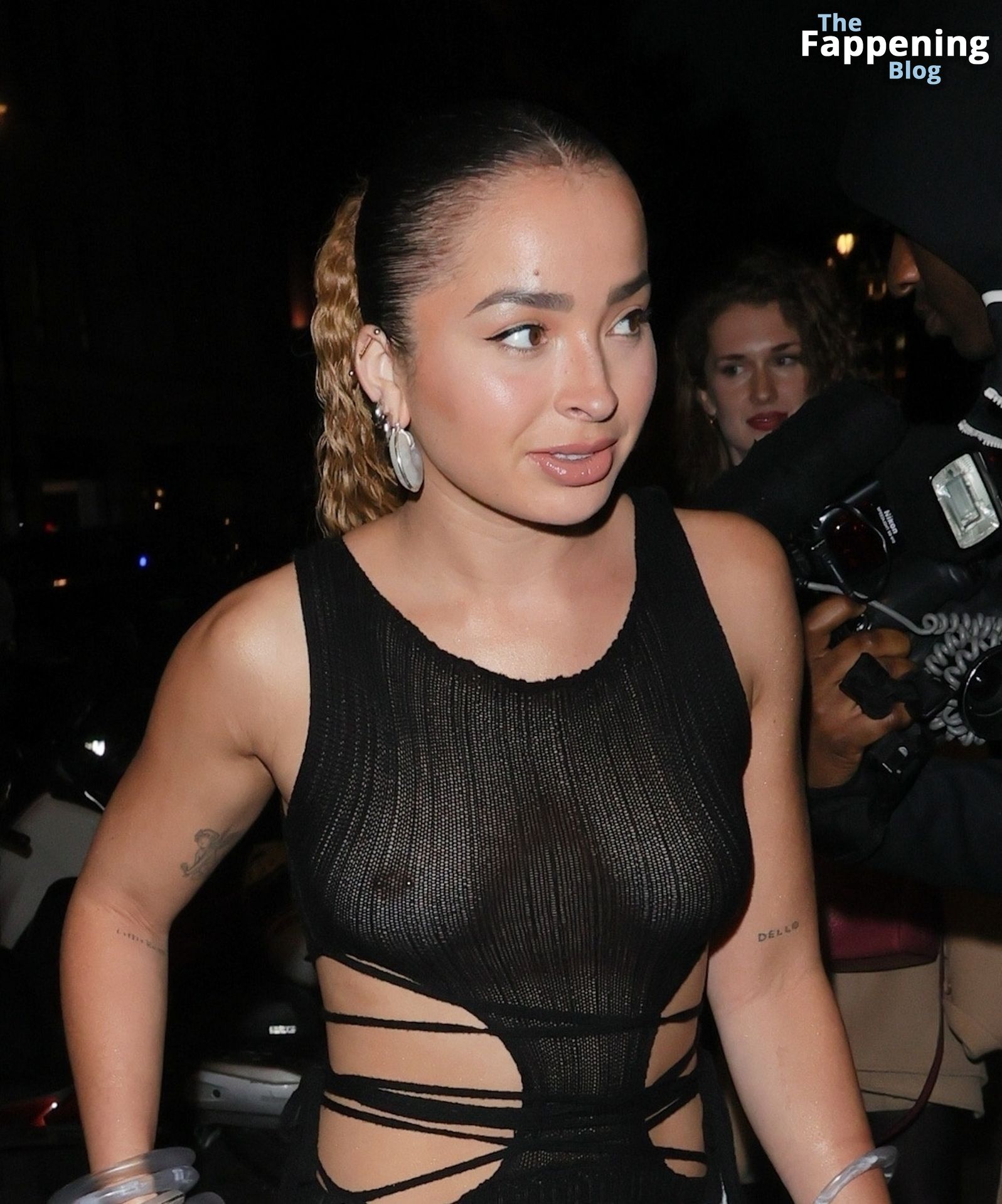 La cantante británica Ella Eyre deja poco a la imaginación luciendo un top transparente en la celebración de los Premios de Televisión BAFTA de Vogue x Netflix.